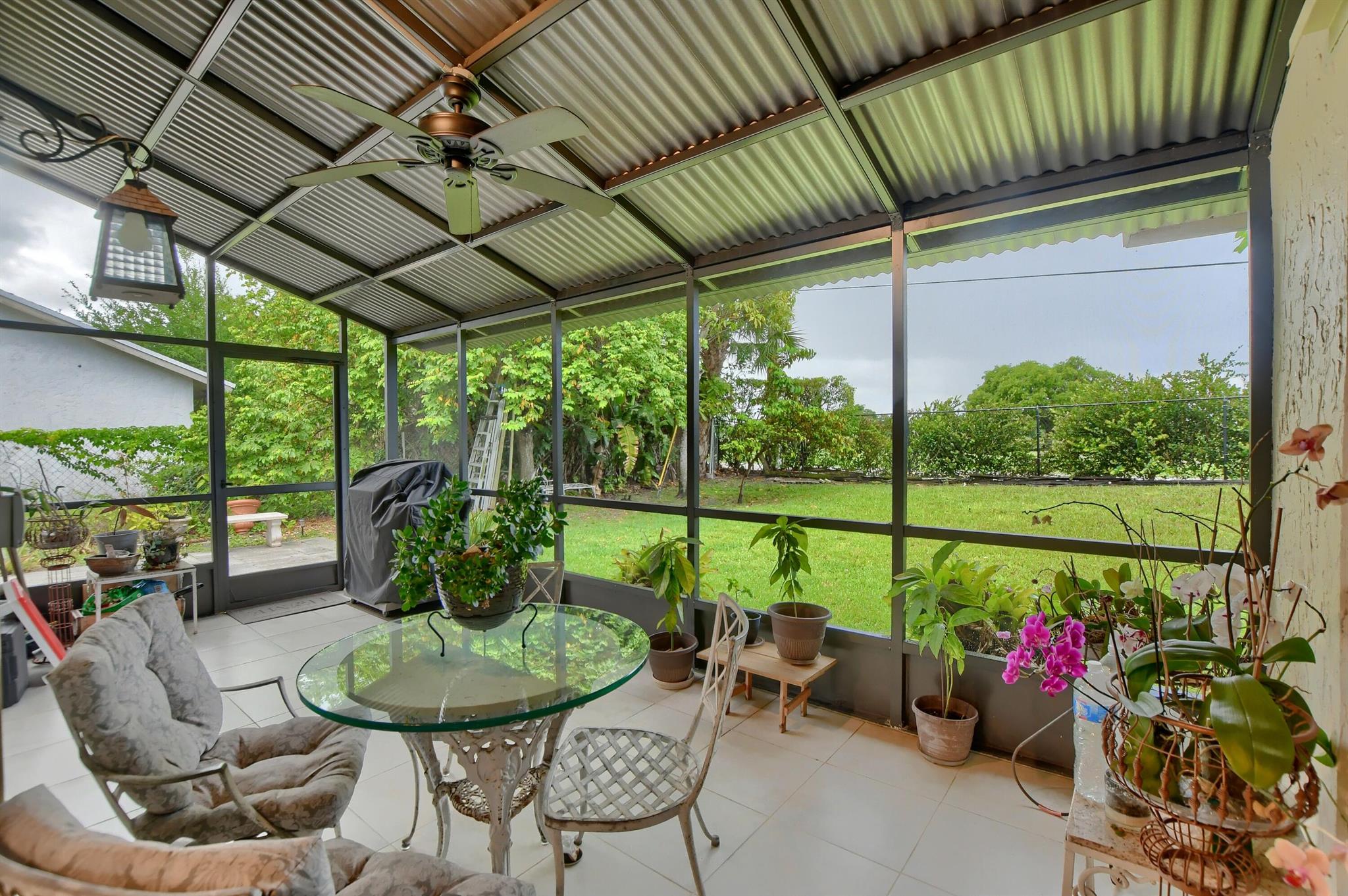 This well maintained home offers 3 bedrooms, 2 baths, and a converted 2-car garage bonus room! The bonus room is versatile, serving as a home office, den, or playroom, complete with a fireplace and plenty of storage. With ceramic tile throughout, vaulted ceilings, and a granite kitchen with a pass-through window, this home exudes style and functionality. The enclosed screened lanai and large private fenced yard with fruit trees provide an ideal outdoor space. There's even room to add a pool! The property is well-maintained and offers freedoms rarely found in Boca Raton, as Southwind Lakes Community has no rental restrictions and allows boats, RVs, and commercial vehicles. Plus, you can bring your pets! The location is fantastic, with nearby retail, restaurants, & Schools!