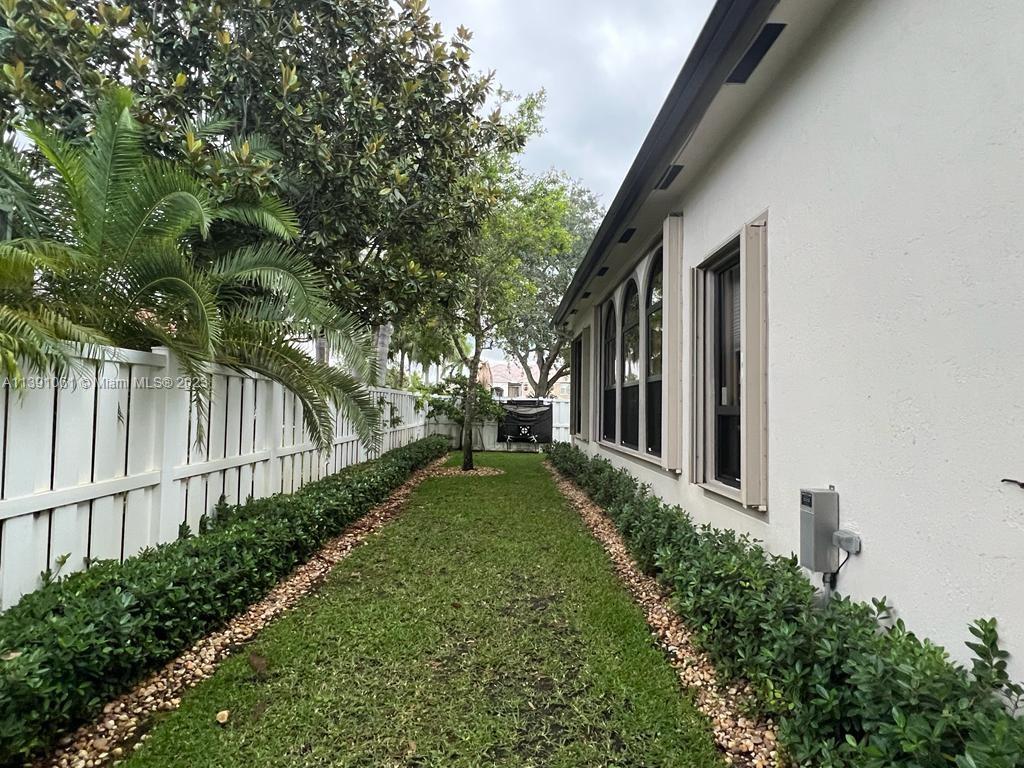 Stunning & highly desirable customized courtyard home (Lalique model) in sought after Crystal Harbour, Pembroke Falls. Enter an elegant iron gate onto the travertine tiled courtyard with designer salt water pool, jacuzzi & gazebo, which can be viewed from most living areas. The property boasts 5 bedrooms & 5 1/2 bathrooms, plus a separate guesthouse. The kitchen is equipped with custom wood cabinets, top of the line Miele appliances, including a subzero refrigerator, deep fryer, cappuccino maker with steamer & a wine cooler. Features include Crema Marfil marble & hardwood flooring, his & hers built-in closets, custom front door with iron work & impact glass, custom built barbecue, Genex generator, new impact windows, Galene water softener, Nest smart thermostat & Swat Mosquito system.