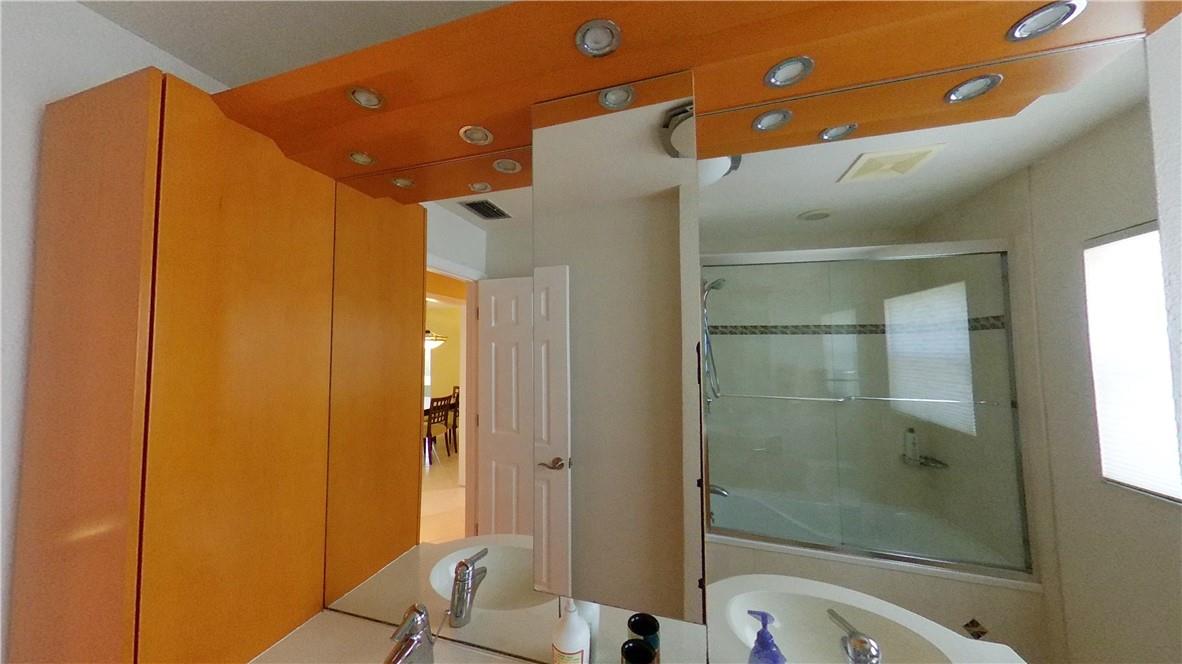 The home sits on one of the largest pie shaped lots and is in a cul-de-sac. The interior of the home has a large living area great room concept with volume ceilings and features a split bedroom plan with the master bedroom on the east side of the home and the other three bedrooms are located on the other side of the living area. The interior has knockdown ceilings and fresh paint. The kitchen features all stainless-steel KitchenAid appliances. Granite countertops with and custom design dimensional backsplash tiles with under-cabinet lighting. The large breakfast bar can accommodate four bar stools. Bathrooms were designed with custom cabinets designs by Vanico Maranyx cabinets. The master bedroom has 24-inch Porcelain tile throughout and flows into the bath and oversize shower.