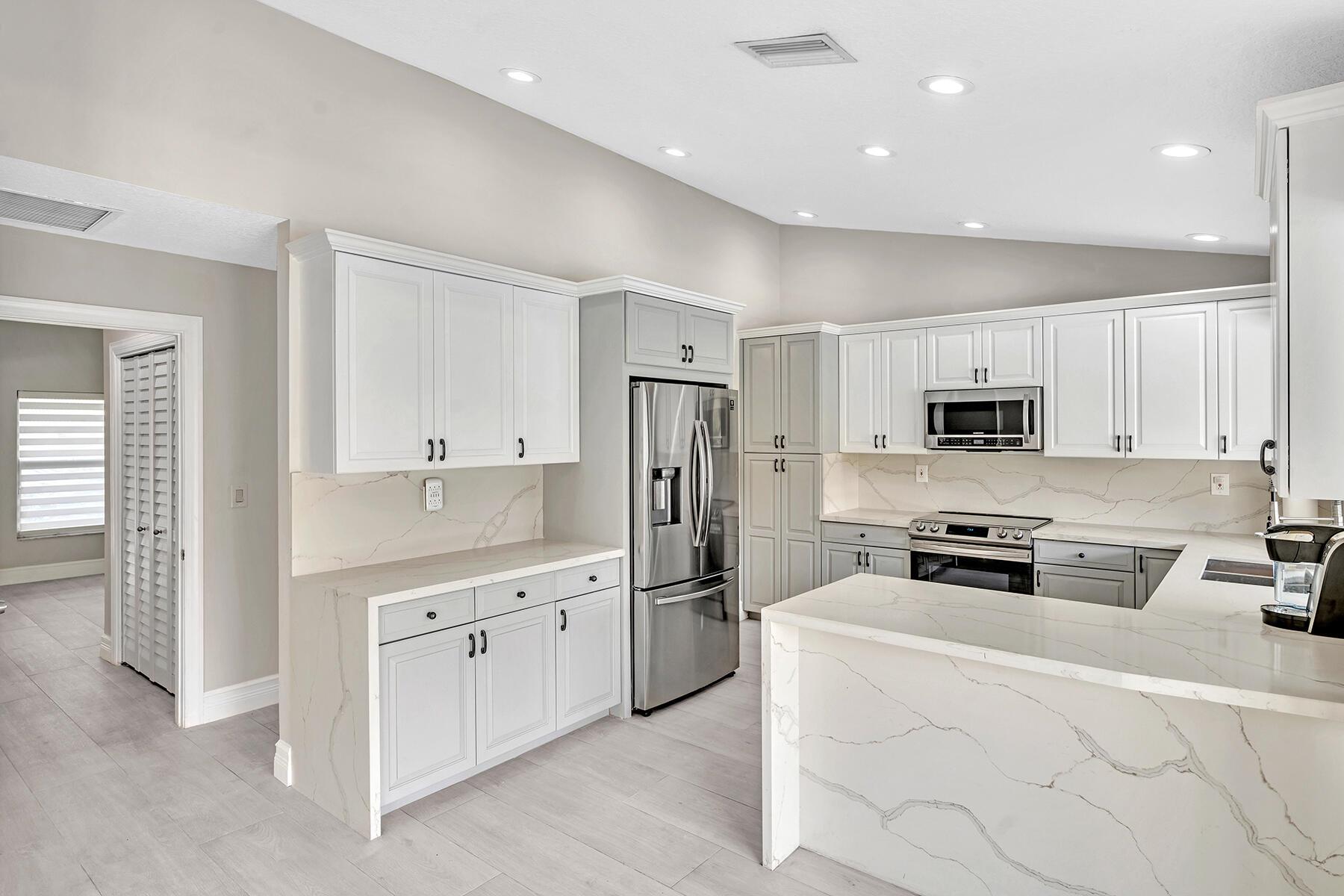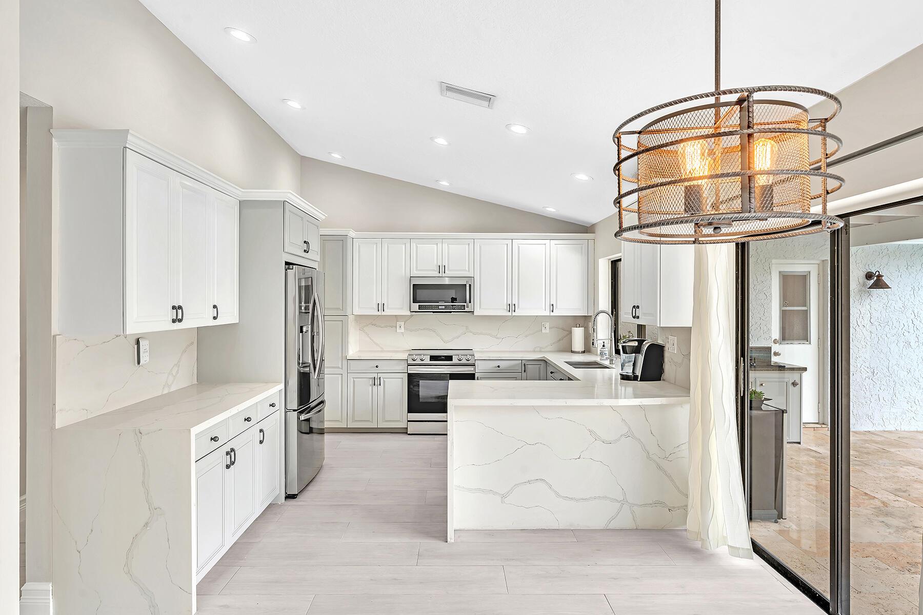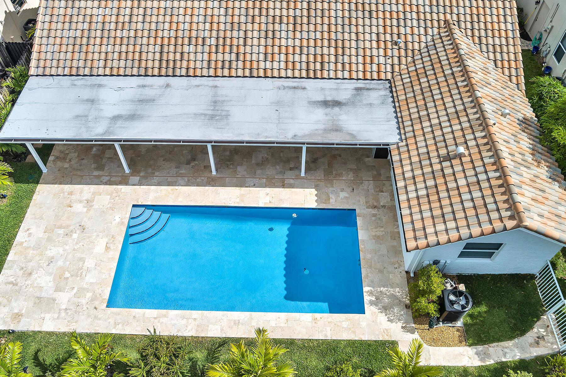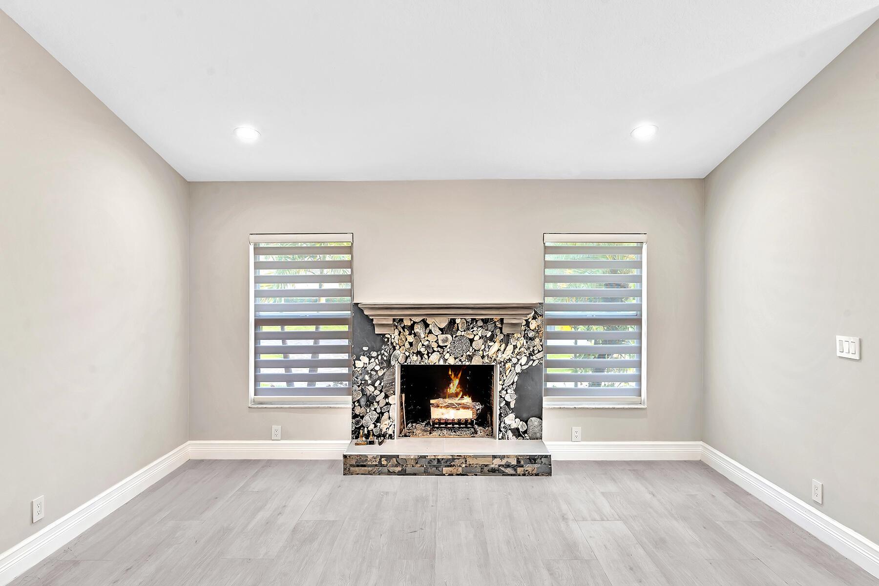 A newly remodeled home with 4 bedrooms and 2.5 baths split plan, on a quiet street. New roof, new 12''x60'' wood style porcelain floor, all 3 baths & kitchen renovated. Heated pool resurfaced with Blue Quartz, travertine patio & deck, outside kitchen, large 49'x14' covered patio. Fenced yard. Formal dining, LR w/remodeled fireplace, family room & open kitchen facing patio & pool. New front door & remodeled entrance. Volume ceilings in all living areas & principal bedroom. Newer hurricane rated & insulated 2-car garage door, new side door. Impact windows in all bedrooms & living areas. Circular driveway.HOA managed perimeter hedges for value enhancing uniformity. A stable neighborhood with A rated schools like Verde K-8 & Boca Raton HS. Access to all the city's Beaches, Parks & Librari