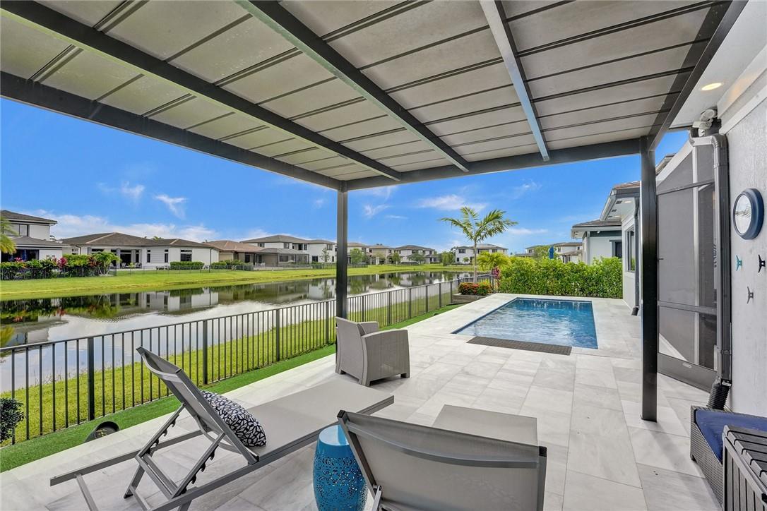 Shows like a model home, Barron model one story in the Presidential collection in sought after contemporary community of Cascata @ MiraLago. 4 Bedrooms, 3 Bathrooms and a 3 Car Garages. Home is meticulously kept and tastefully upgraded with sleek timeless features, beautiful flooring throughout, and window treatments. Tranquil lake view, fenced yard with a perfect pool for cooling off and relaxing covered areas. Home is 4 years old, smart home, with impact windows and doors, gas cooking/dryer and tankless water heater. Two separate walk in built in closets in primary bedroom. Amenities include a Clubhouse and Sportsplex with gyms, pools, kid splash and play parks, outdoor/indoor basketball, ballroom, billiards room, tennis, saunas and guard gated. See exclusions and upgrades. Showings 6-2.