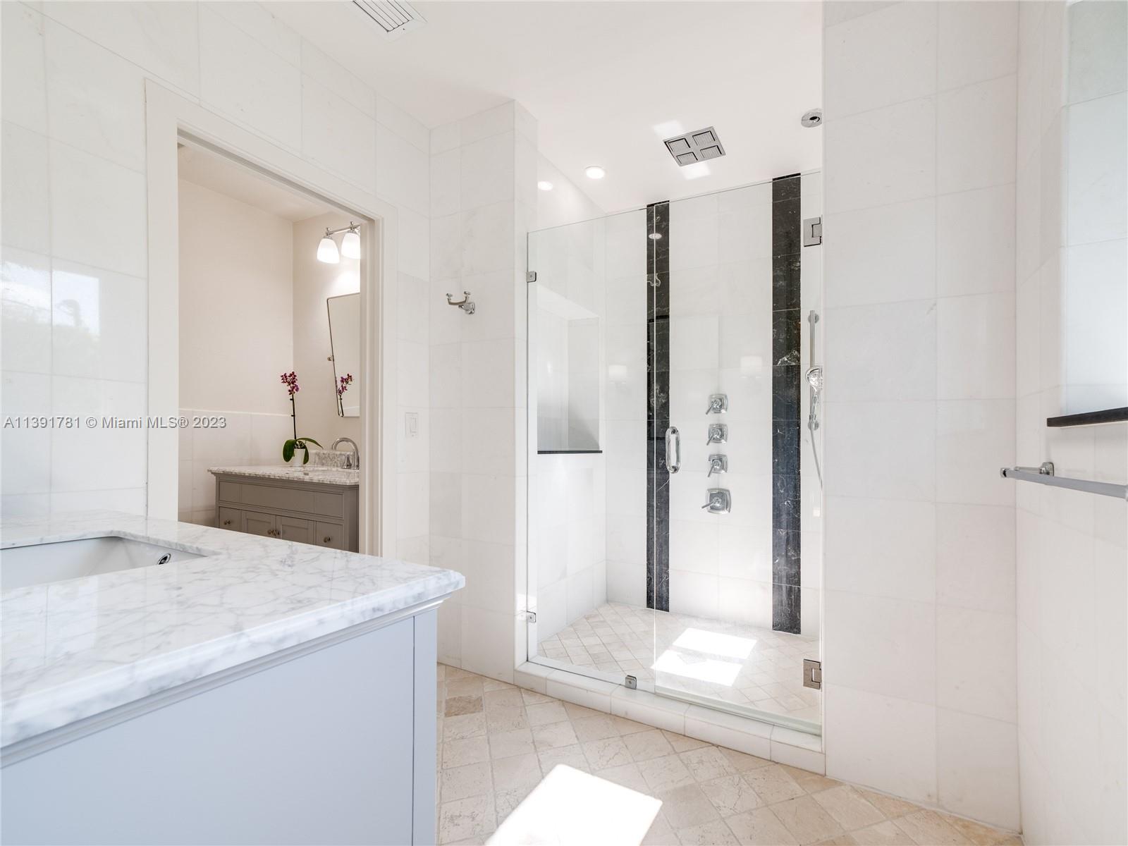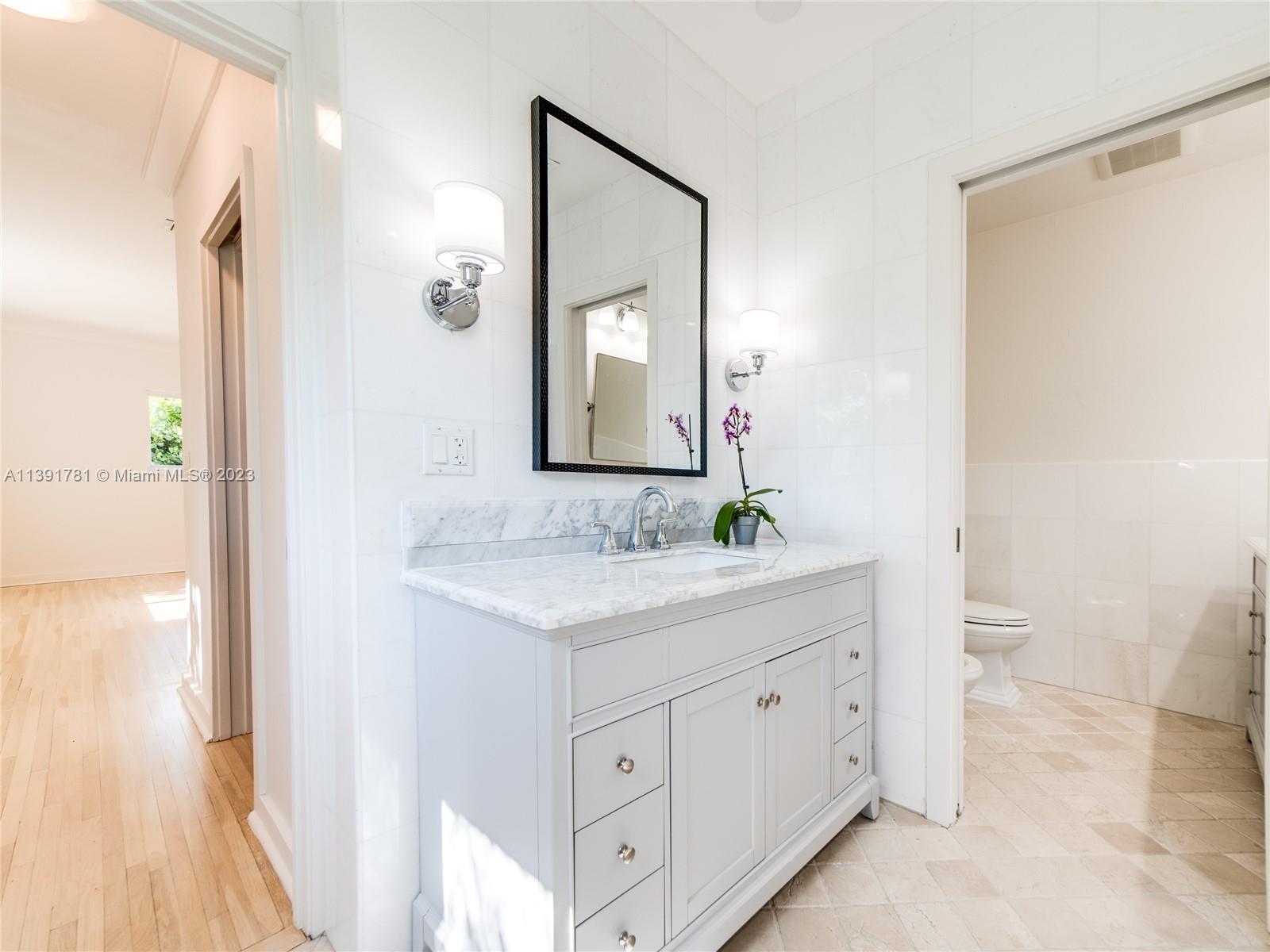 Welcome to Casa Bianca! Bright, spacious, move-in ready 3 bedroom, 3 bathroom home in ideal Gables location just off Riviera Drive. Classic 1950s home with bleached oak floors has been completely updated while maintaining vintage charm. French-style kitchen with pop of red includes gas stove with antique backsplash dated 1735 and stainless steel Bosch appliances. Sliding glass doors open to large screened in porch ready for summer entertaining. Private backyard includes rare flowering and fragrant specimens such as ylang-ylang, gardenias, champaca, jasmine. Sun-filled primary bedroom has a marble bathroom with separate vanities and custom walk-in closet. Two additional bedrooms with bathrooms complete this comfortable family home. New roof, impact windows, will not last!
