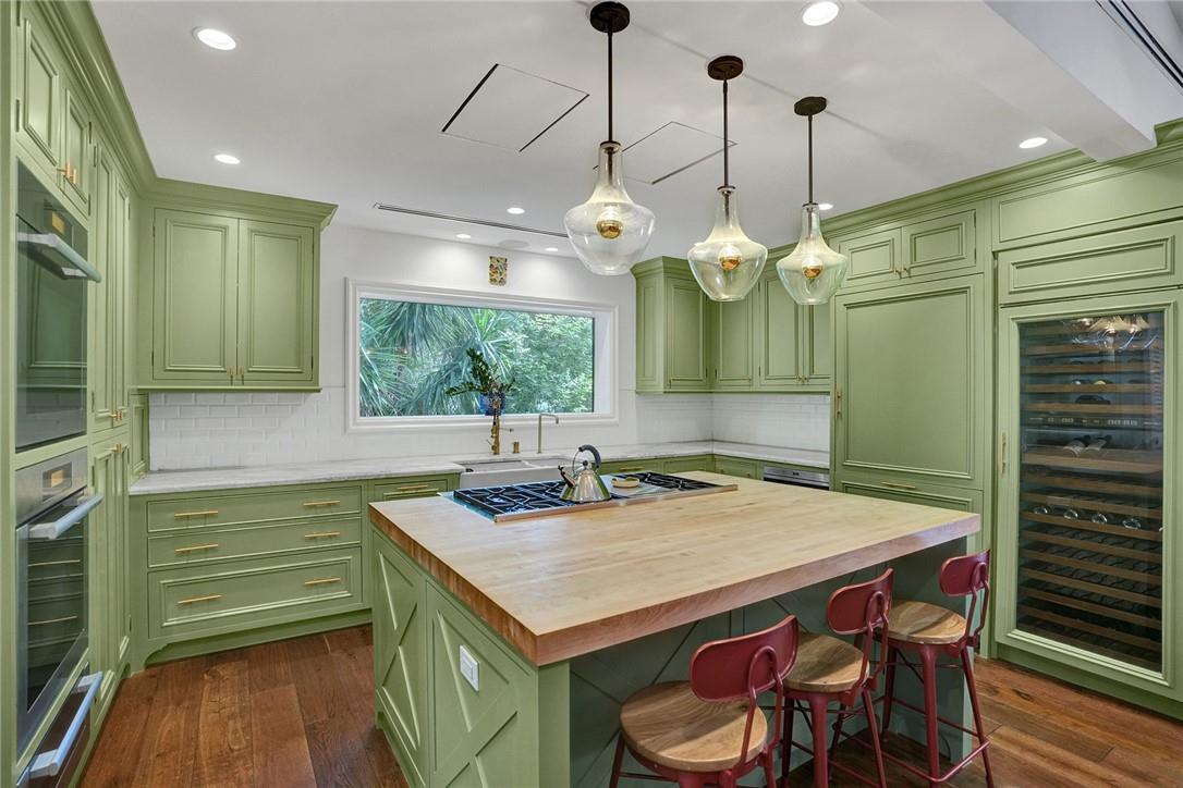Mid century modern with a Miami flare. East of Biscayne Blvd & blocks away from the water in the family-oriented neighborhood of Miami Shores! Completely remodeled in 2015 w/ all new plumbing & electrical. Metal roof (2017), hurricane impact windows & doors. Solid oak wood flooring throughout the house. Custom chef’s kitchen features 2 Miele wall ovens, SubZero fridge, 146-bottle SubZero wine fridge, & 6 burner Wolf gas stove w/ griddle. Triple split floor plan for privacy. Master suite features a walk-in closet & marble bathroom with separate shower & clawfoot soaker tub. 4th bedroom currently used as an office. Fenced in private back yard has room for a pool & features a built-in pergola and pizza oven.