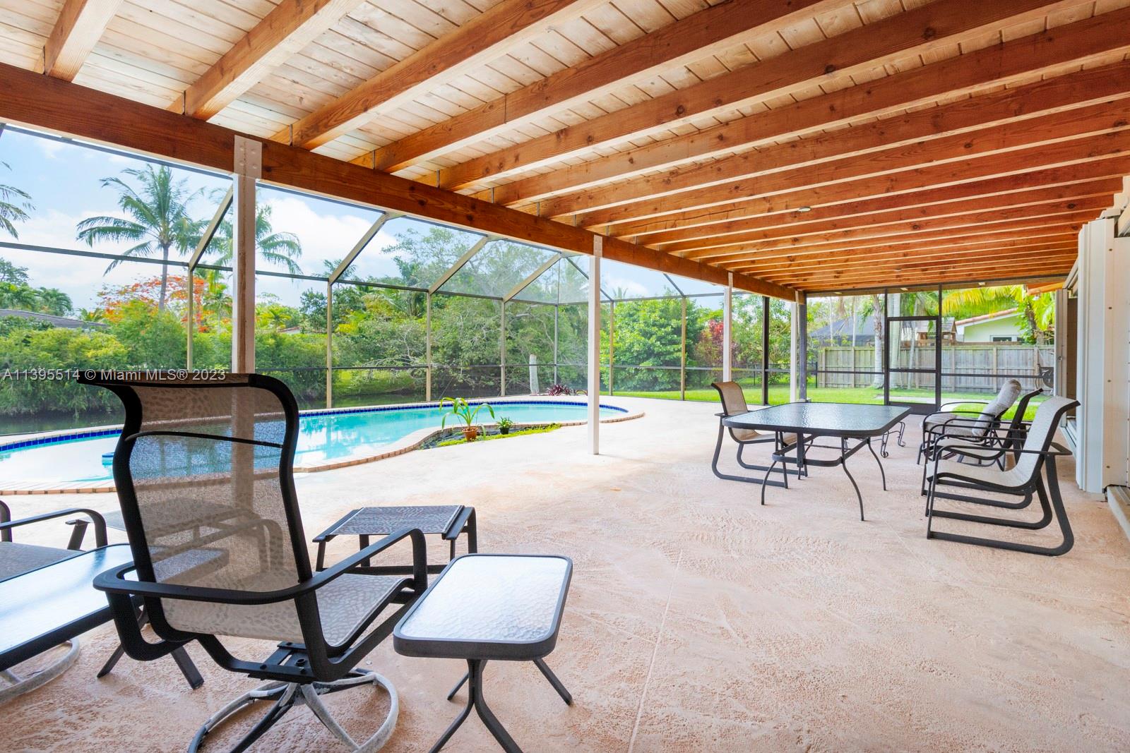 Ideal family home on a great child-friendly and quiet north Pinecrest street on a wide canal. 3 huge bedrooms plus an office off the master. New 2021 metal roof, full accordion shutters, 2020 5-ton AC and more! Nicely updated in some parts including newer bathrooms and somewhat newer kitchen and in great condition and spacious otherwise. Original builder's "model" with oversized rooms (so layout could be adjusted to add a 4th bedroom if needed), big covered pool-patio area, very private lot, small boat ramp, and loads of closet space. Pinecrest elementary.