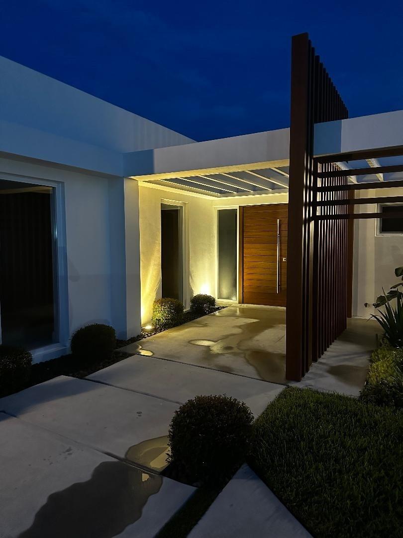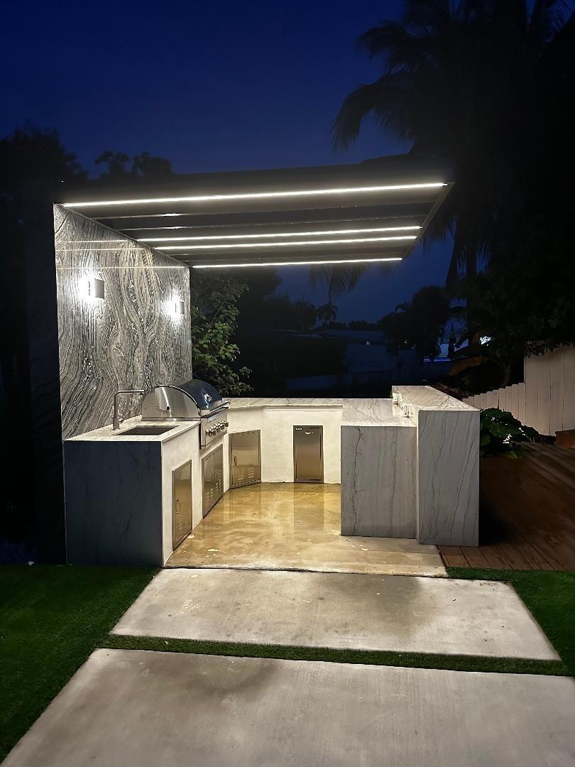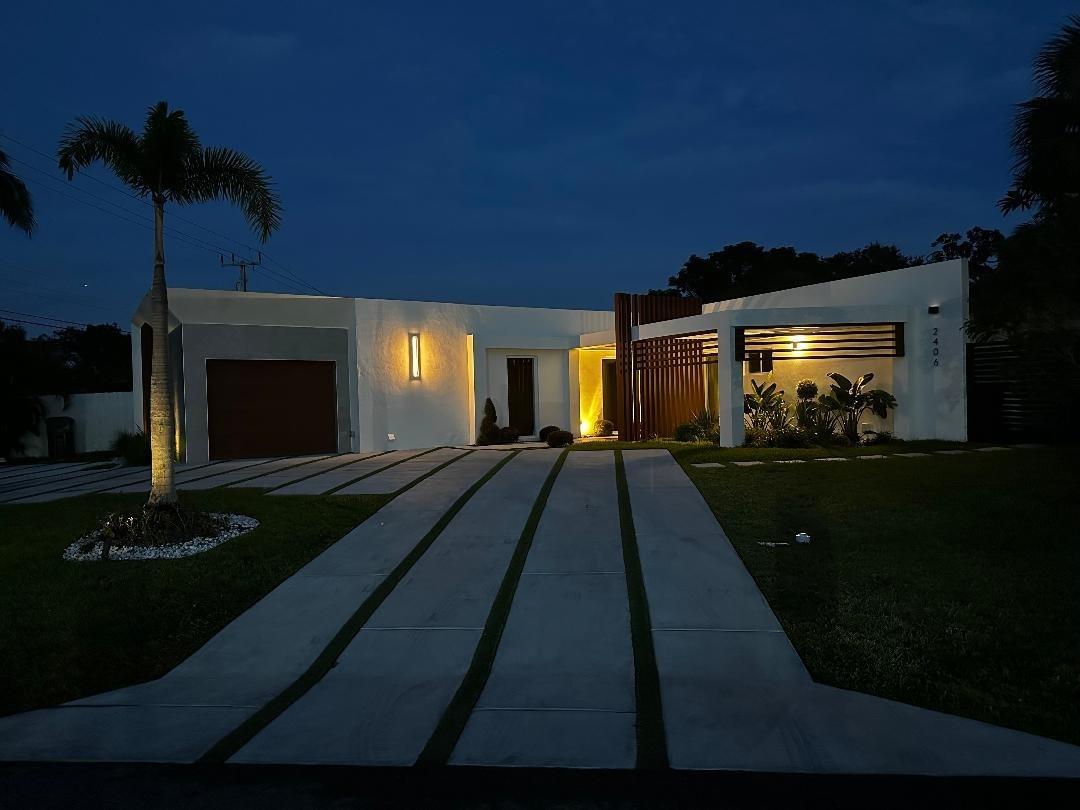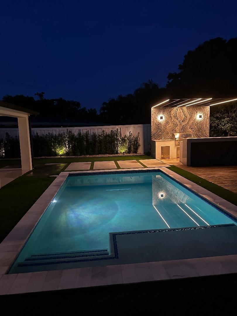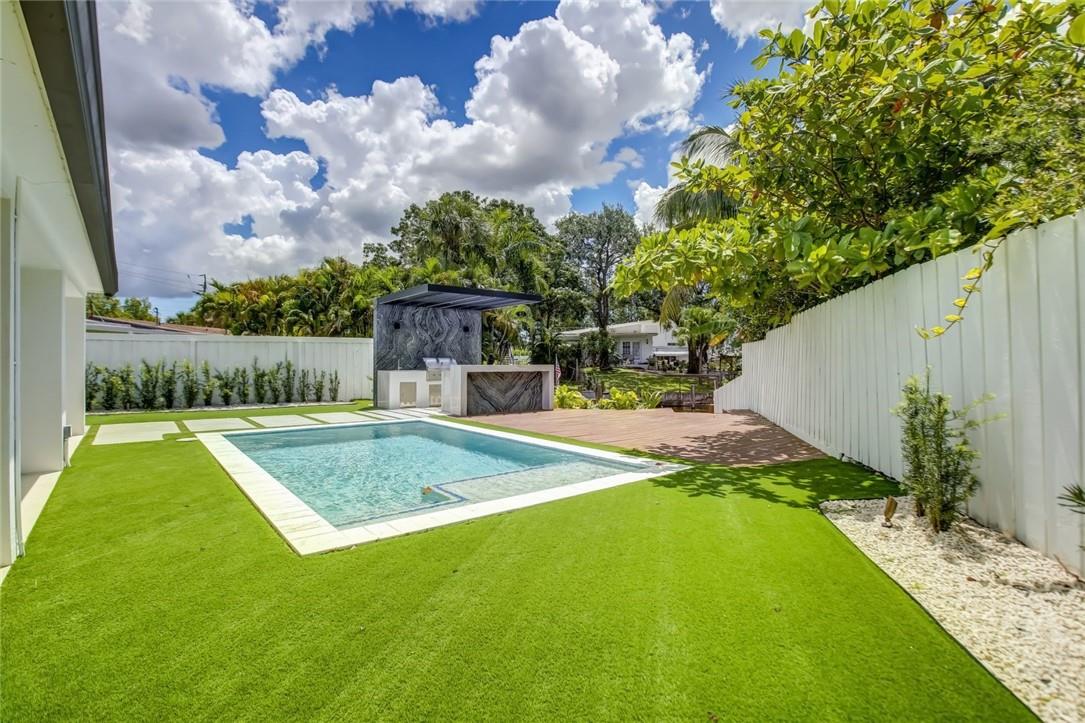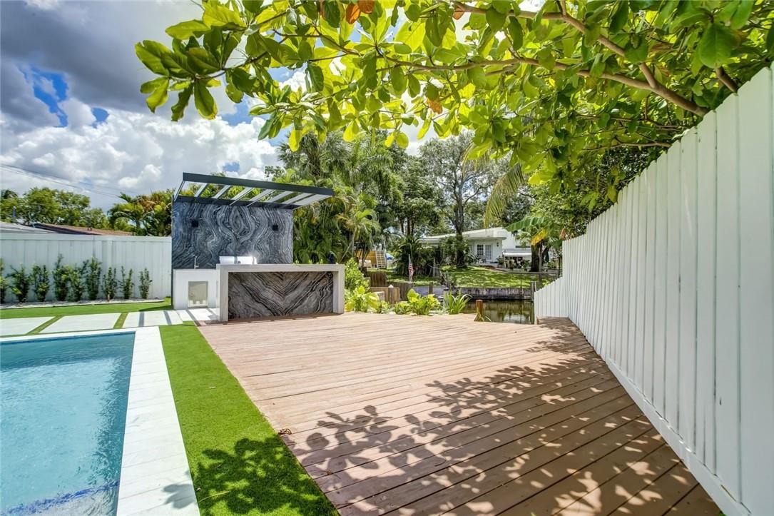 Step into this outstanding 3 bed 2 1/2 bath new construction contemporary design and you will find the highest level of interior finishes with exceptional appointments throughout this masterpiece. The open spacious floor plan boasts a stunning kitchen with high end appliances, one-of-a-kind stone countertops and hand-crafted custom cabinetry. Gather your friends and family and step out to the perfectly designed entertainment center with extraordinary details including a fully equipped lighted summer kitchen, tranquil swimming pool, landscape lighting. Step further down to your own dock with a sitting area suitable for a firepit. No fixed bridges. dock is 20ft, a boat much smaller to fit in the space. This oasis of unique style can be your next home. Feel like you are on vacation forever!