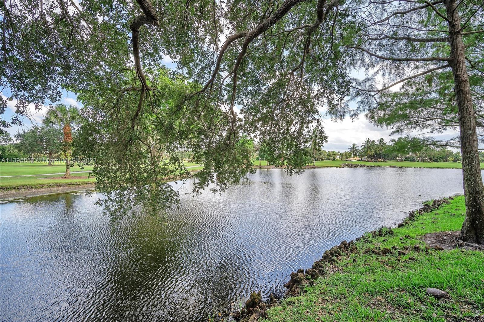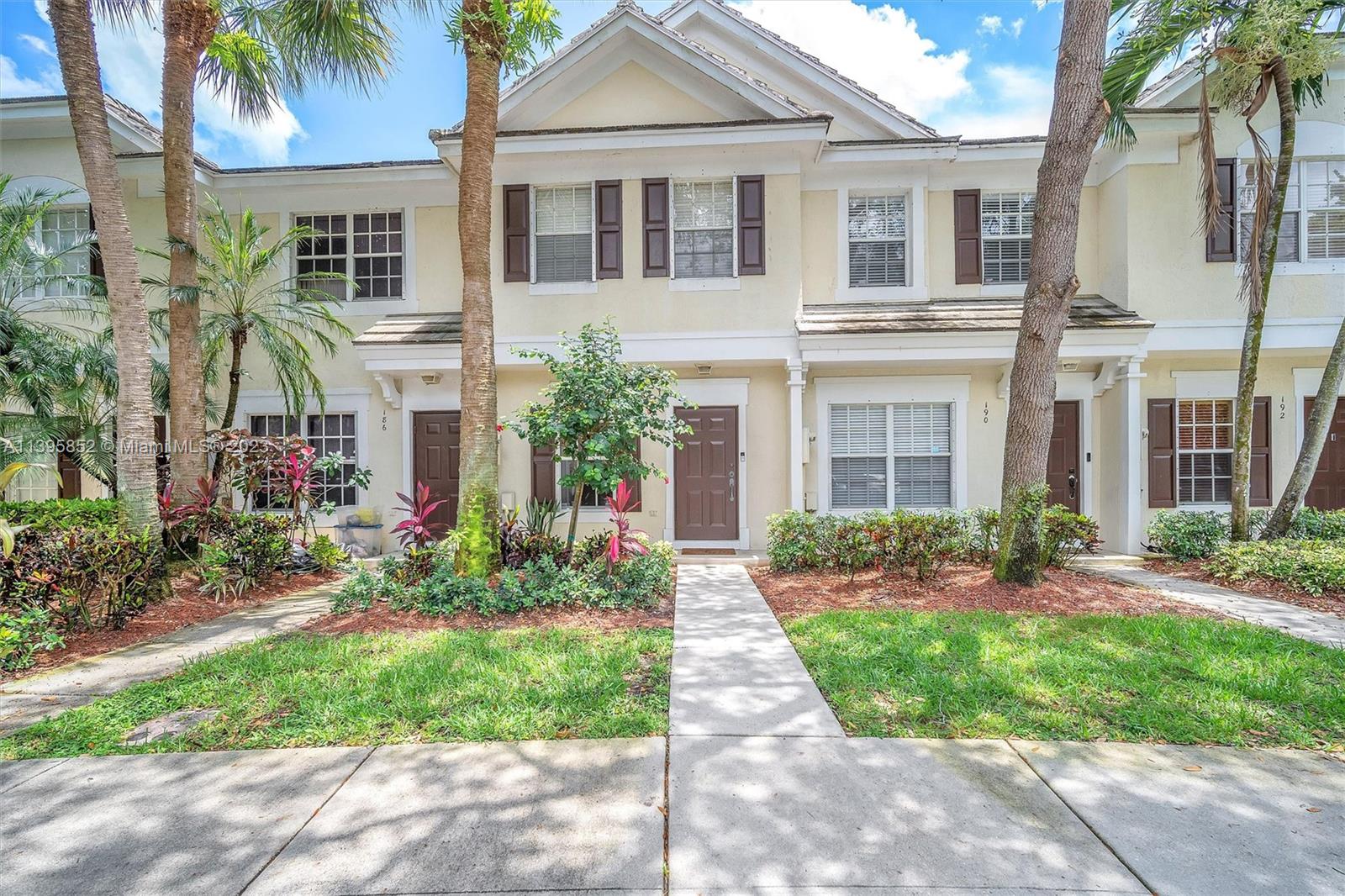 Welcome home to this adorable townhome in Somerset of Jacaranda! Enjoy the large screened in back patio with serene lake and golf course views while sipping your morning tea! This spacious 2/1.5 townhouse features newer kitchen cabinetry with extra storage/coffee bar, granite countertops, Samsung washer/dryer, tile and laminate flooring, oversized tub/shower, plenty of closet and storage space throughout, freshly painted interior, large walk-in storage room,& complete Hurricane Protection. Convenient assigned parking at your door and plenty of guest parking. Beautiful community pool to enjoy the Florida sunshine! Low HOA that Covers Lawn Maintenance, community pool, and Roof. Pets welcomed! Close to shops, dining, schools and more! Come see this adorable and affordable priced home today!