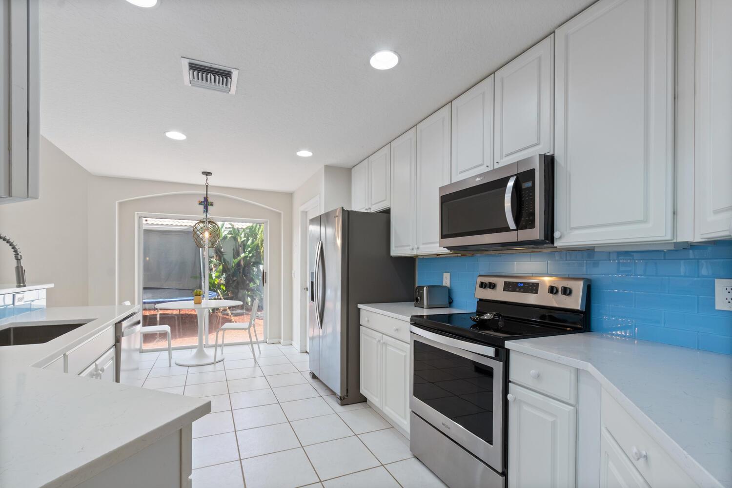 Perfectly located home in a peaceful Boca Pointe neighborhood on a cul-de-sac. This updated 2 story home features a fully renovated Master Bath. Upgrades include: Porcelin Tile in Master Bed/Bath & Living Room, Quartz Countertops, Modern Stainless-Steel Appliances. 28 Ft. Ceilings with a great floorplan. Perfect for entertaining. All bedrooms are comfortably sized while the master offers that extra luxurious touch with his/her closets. There is plenty of room to add a swimming pool in the backyard. The home is centrally located in Boca in an A rated school district. Easy walk to dining, shopping, and your neighborhood gym just around the corner. Minutes to I-95, the Florida Turnpike, and the Beach. Exclude trampoline, play set, dining room & bdrm light fixturesCommunity
