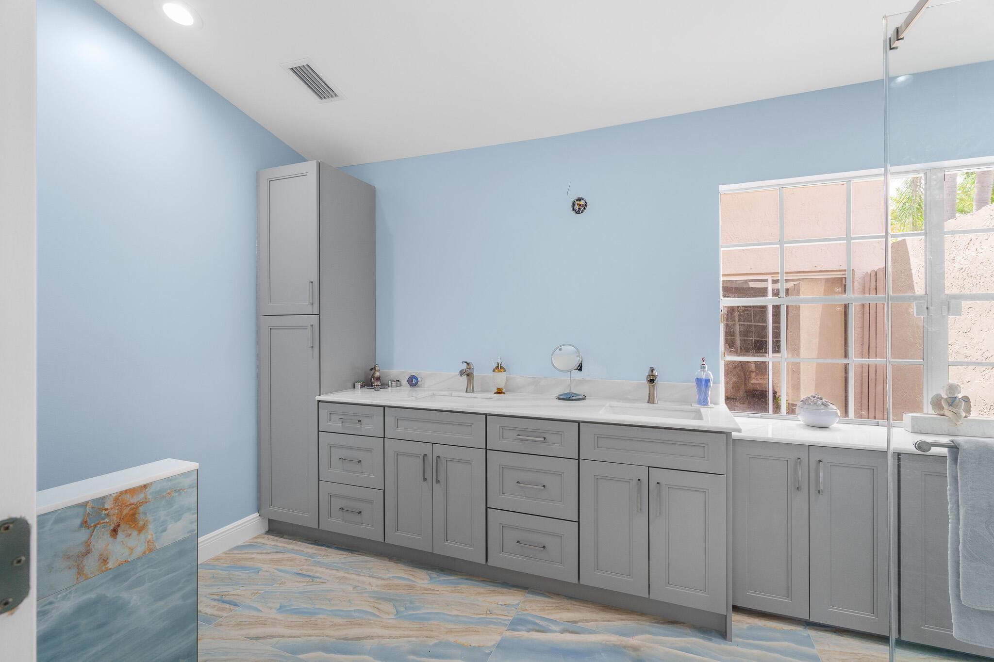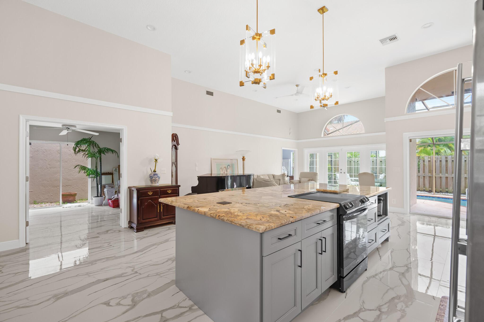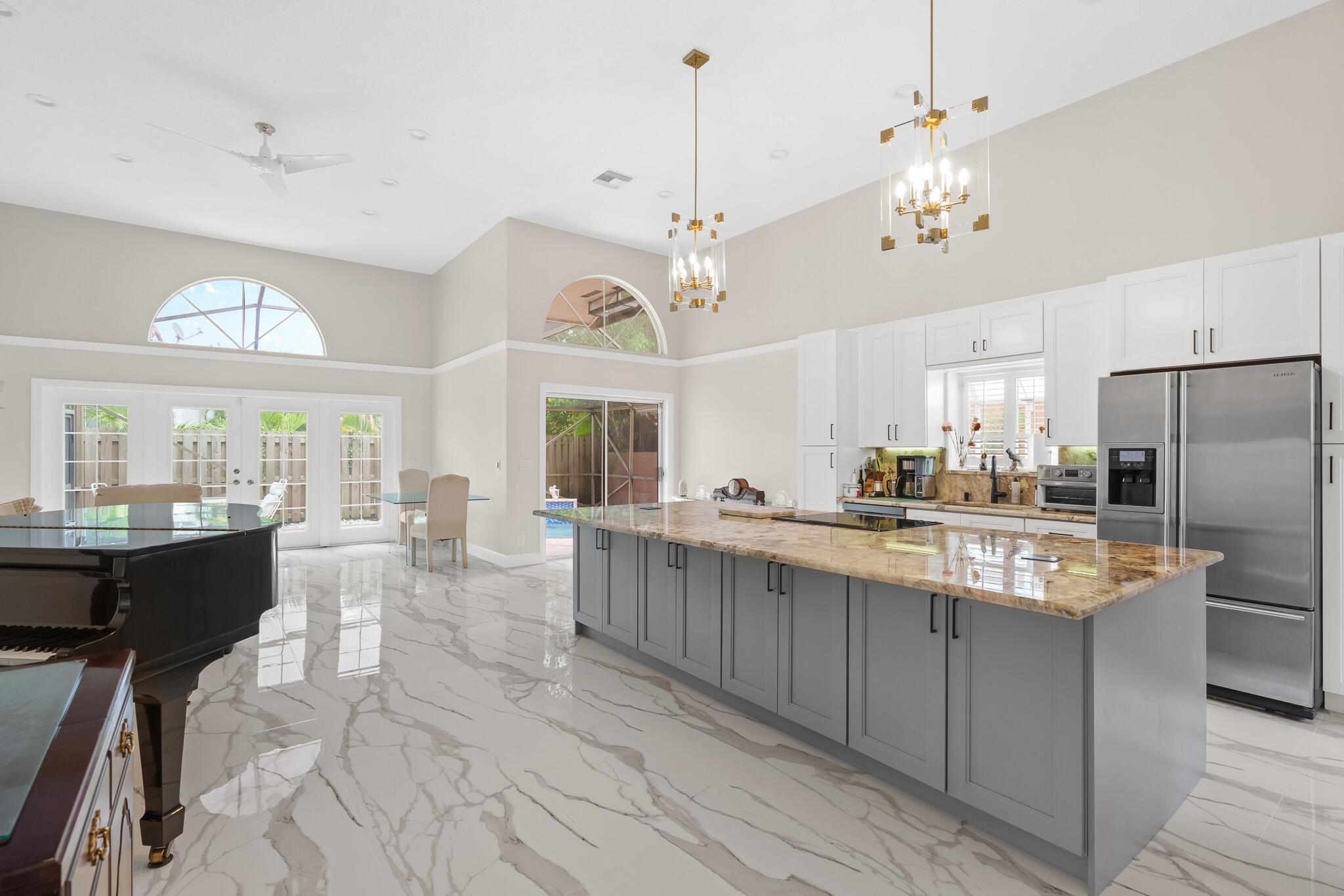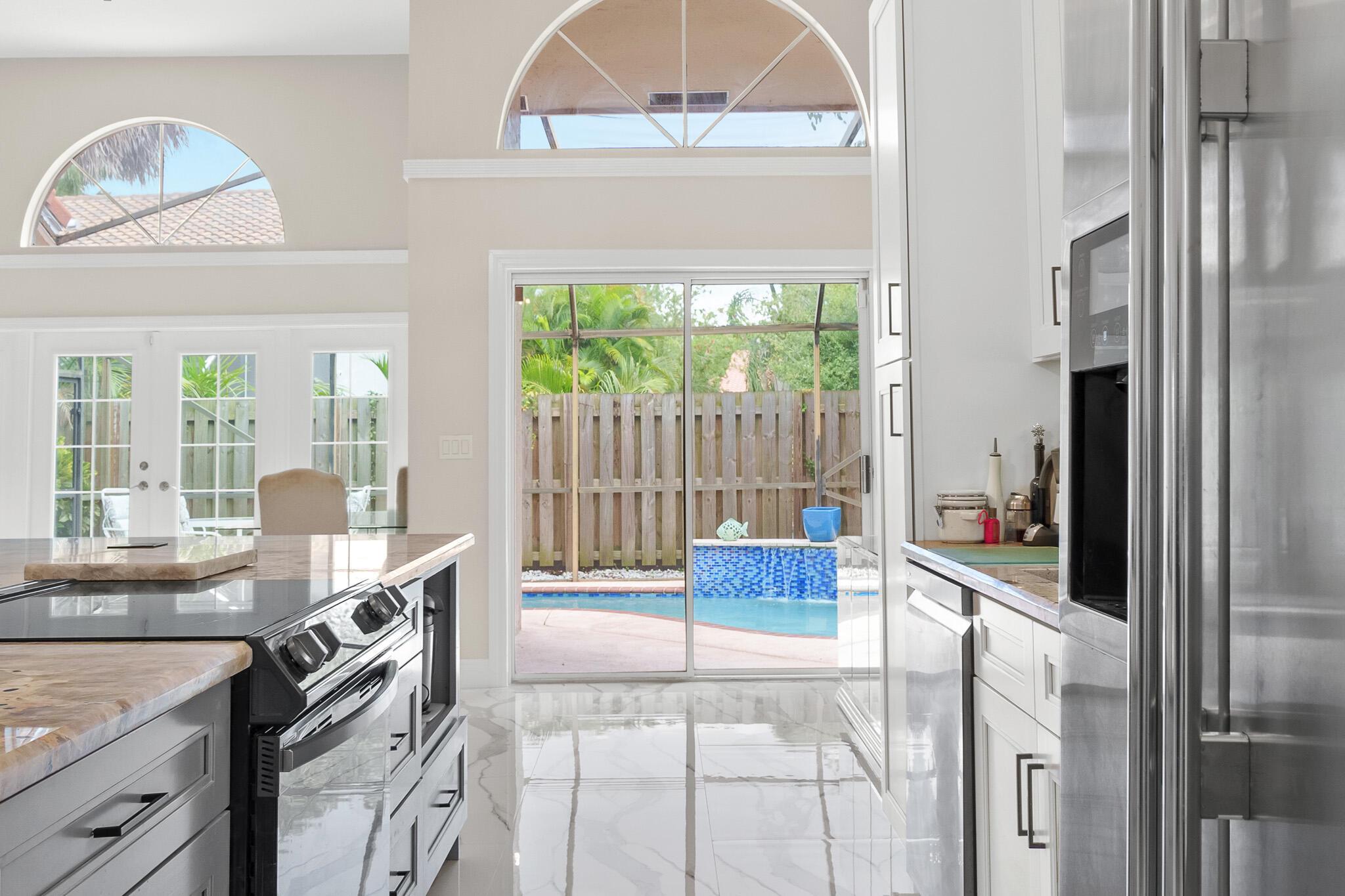Rarely available! Gorgeous contemporary completely remodeled in Gated & highly desirable Boca Raton Mission Bay VENTURA 4-Bed 2 Bath, Pool & 2 car garage one level, no stairs -huge open layout with 15-foot ceilings, private pool with new 3 speed pump., brand new AC & Water heater, Electric Panel with copper wire connection, newer roof. Brand New wood Kitchen & Master bathroom boasting Quartzite & marble all natural stone, stainless steel appliances with porcelain tile throughout the house. Hurricane protected French doors, New washer and dryer with stainless steel wet sink. all LED recessed lighting with color changing bulbs throughout, This is a County Club living with no mandatory fees. Low HOA! includes resort style amenities clubhouse, pool, jacuzzi, & private gym A+ Rated schools