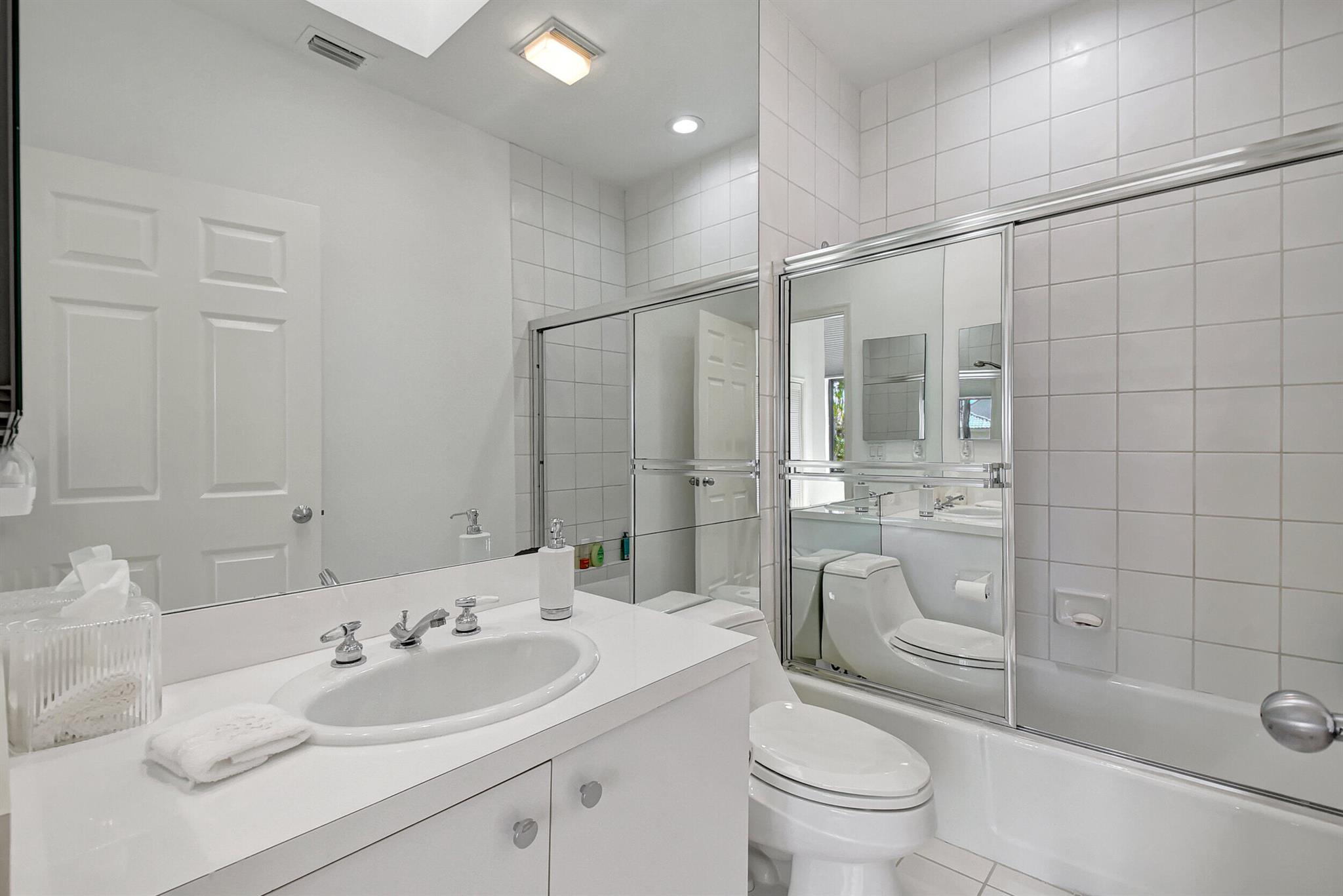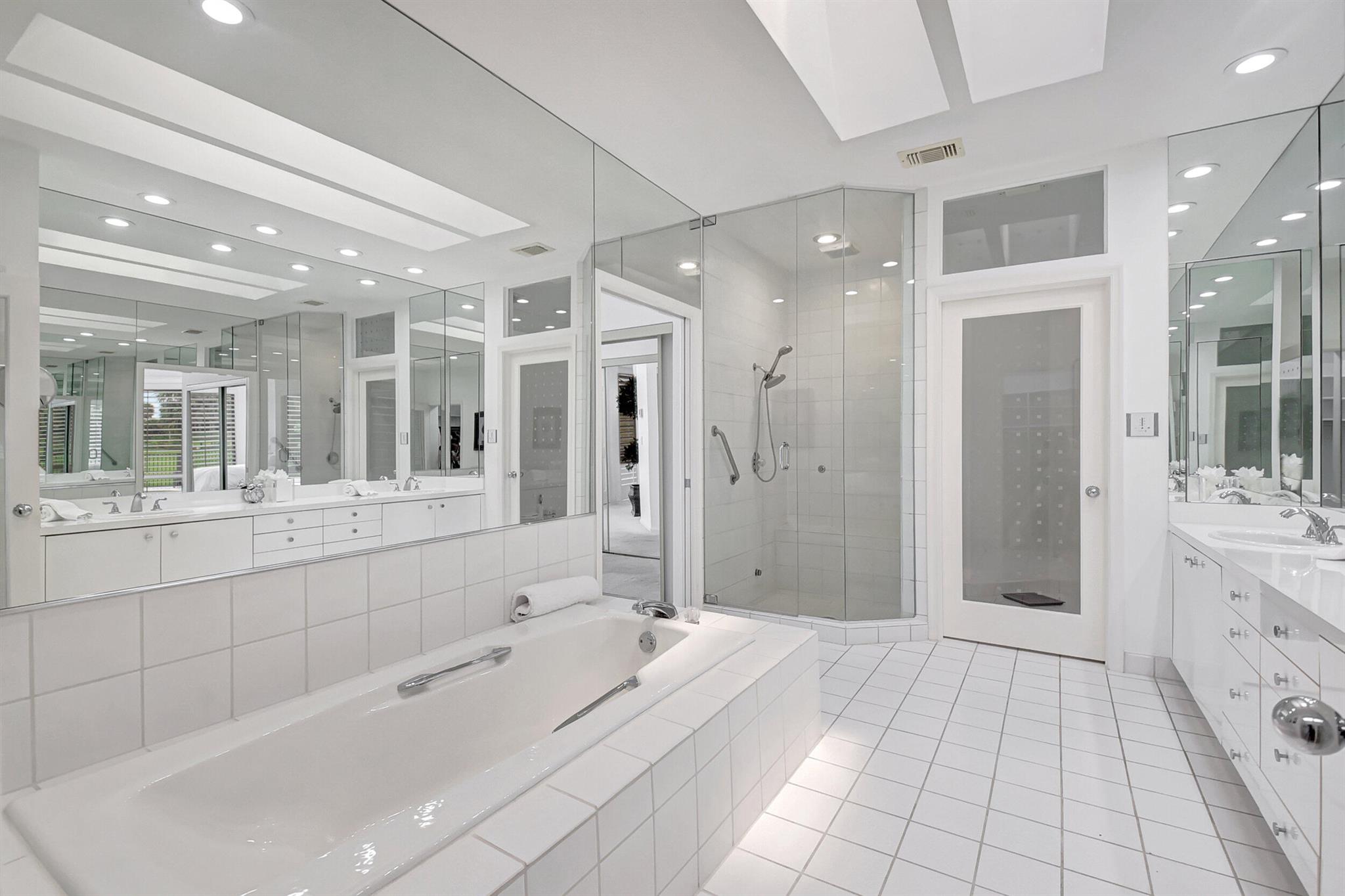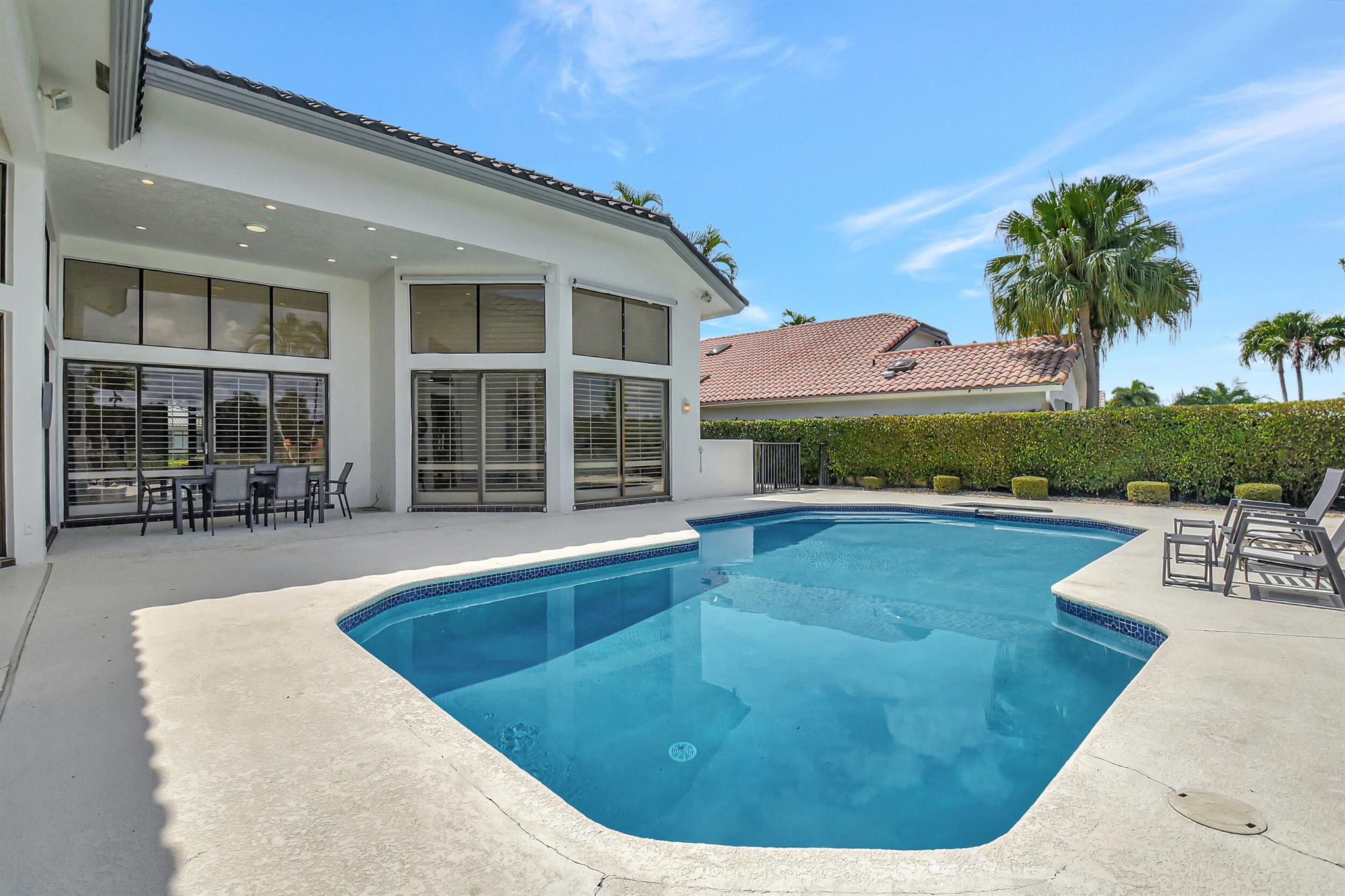 Cedar Glen customized free standing patio home located on choice water and golf course lot. A very special home featuring 4 bedrooms with 5 bathrooms. Portion of the garage converted to make the 4th bedroom with full bath. Open spacious floor plan with high vaulted ceilings with skylights. Separate family room off the kitchen. Oversized open patio area plus covered porch areas with 30' heated pool plus separate spa. Tiled living areas. Master bathroom features expanded his and hers closet areas. Electric storms screens on master bedroom windows. Updated kitchen with ceramic tiled counters and stainless appliances. Formal dining room. Custom wood shutters in master bedroom, living & family room. Wet bar. Separate utility room with sink. Offered unfurnished with the furnishings negotiable.