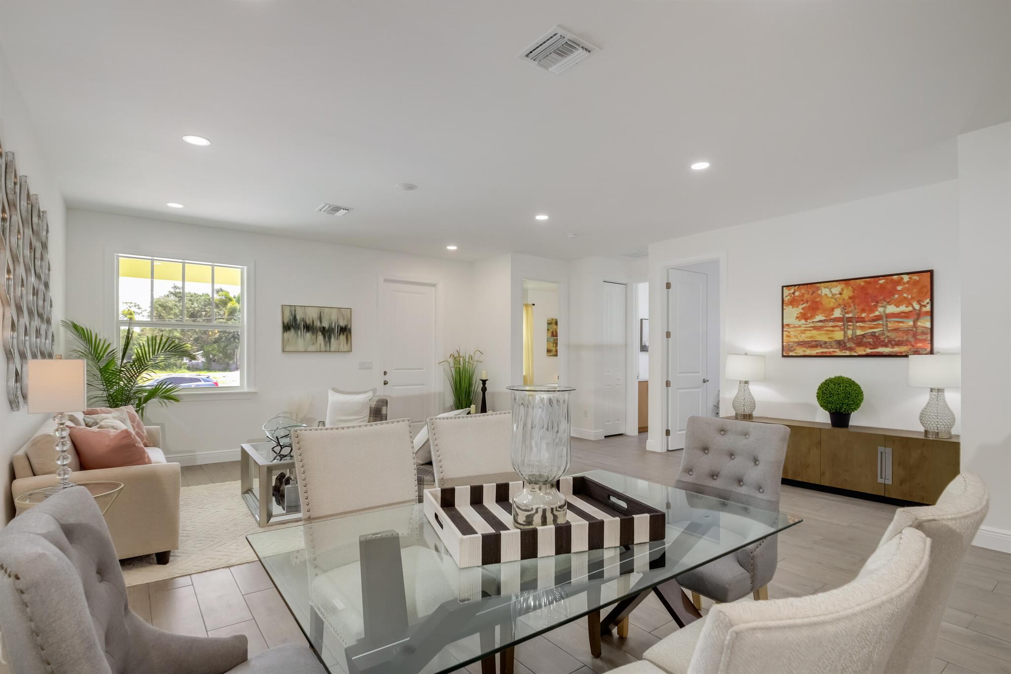 Outstanding new construction home, the location is really what any buyer is looking for. This spectacular home features, 3 bedrooms, 2 bathrooms, a front porch and a back patio, impact windows, LED lights throughout the house, gorgeous tile through out the entire house, laundry room inside, tankless water heater, 9 1/4 foot ceiling with 8 foot doors in the entire house including closets, 42' kitchen cabinets with a center island with quartz countertop . Both bathrooms have quartz countertops. Take a look and you will fall in love with this cozy home.