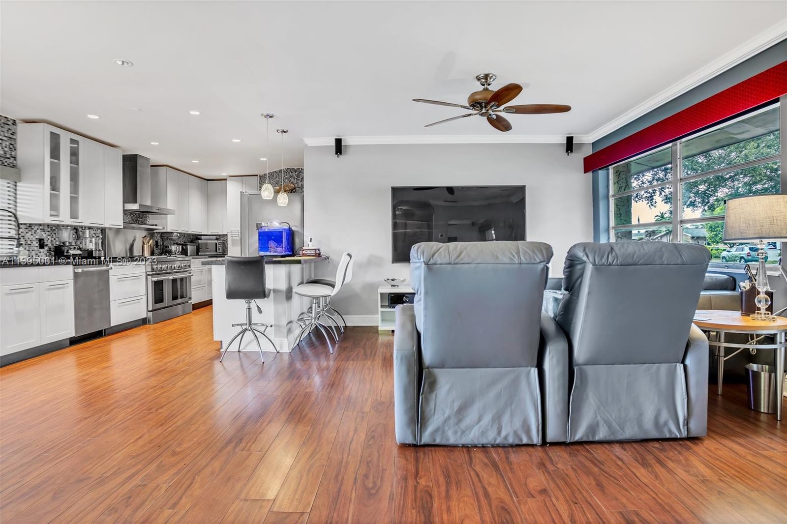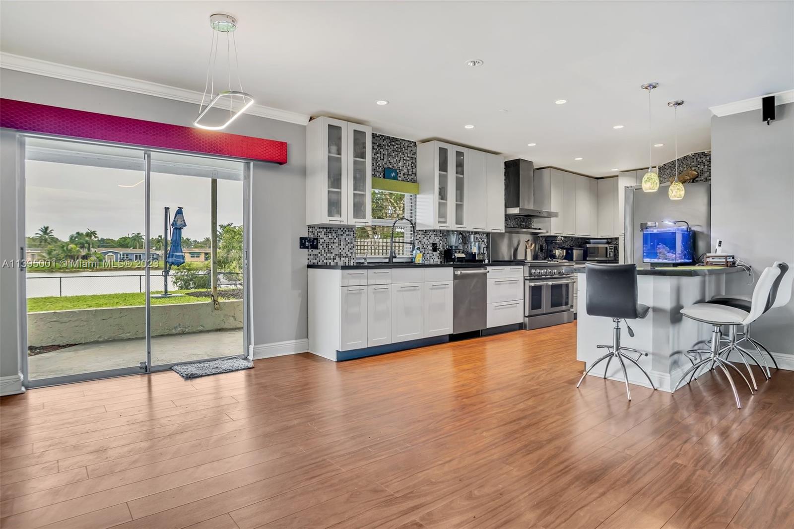 Just in time for summer relaxation in this tranquil water view property. Two bedroom one bath with a true chef's kitchen overlooking the dining and living room. Less than 2 miles to Sawgrass Mills Mall, Sawgrass expressway and excellent restaurants. Property includes; Roof 2017, Tankless water heater 2017, full water filtration 2017, EZ Viz camera security and recorder, ring doorbell, Motorized/manual roller shades and blinds, cornices and draperies, generator hookup.