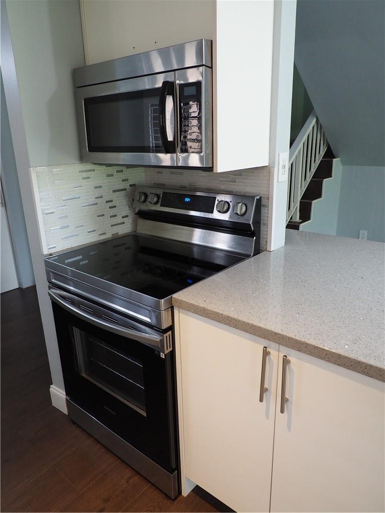 Fairways of Sunrise development. Fully renovated 3 bedroom, 2 1/2 bath, 1 car garage with golf course view. Open floor plan including 1) kitchen w/ spacious pantry, stainless steel appliances and quartz countertops, 2) casual dining space, 3) interior laundry room w/new LG stackable washer/dryer, 4) impact windows/door throughout townhouse, 5) additional storage under staircase, 6) Nest programmable thermostat and Ring flood lights (front & back). Patio area off of the living room with privacy fence. Oversized master bedroom w/ screened private balcony & walk-in closet. Second bedroom has sliding doors opening to a large open patio deck. All bedrooms have built-in closet systems. Roof replaced 2020 and A/C replaced June 2021. All floors are wood grain ceramic tiles. Additional refrigerator