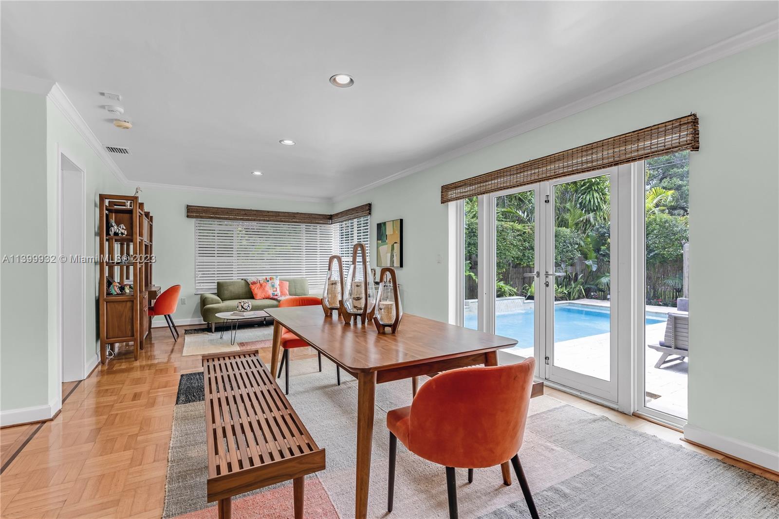Introducing this move-in ready home in South Coral Gables. This well-maintained property features beautiful wood flooring, a split floor plan with two spacious bedrooms. The primary bedroom has an ensuite bathroom and two large closets. The secondary bedroom has a bathroom adjacent to it. The current owner has done considerable upgrades to the property including a new tile roof, rain gutters, new septic tank, new (2019) plumbing pipes, new pool heater and cooler, new pool pump, full-power generator. They also updated the kitchen with granite / SS appliances, and the bathrooms. Additionally the home was tented in May of 2020. Sparkling pool, mature trees and ample privacy. Beautiful and quiet tree-lined street a short distance to Merrick Park Village, restaurants and specialty markets.