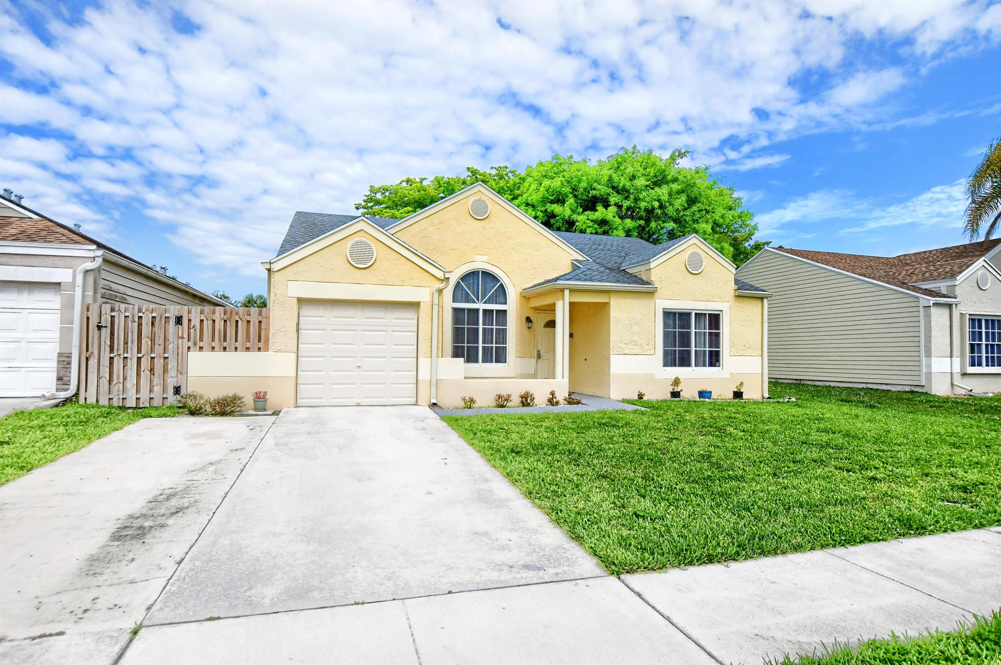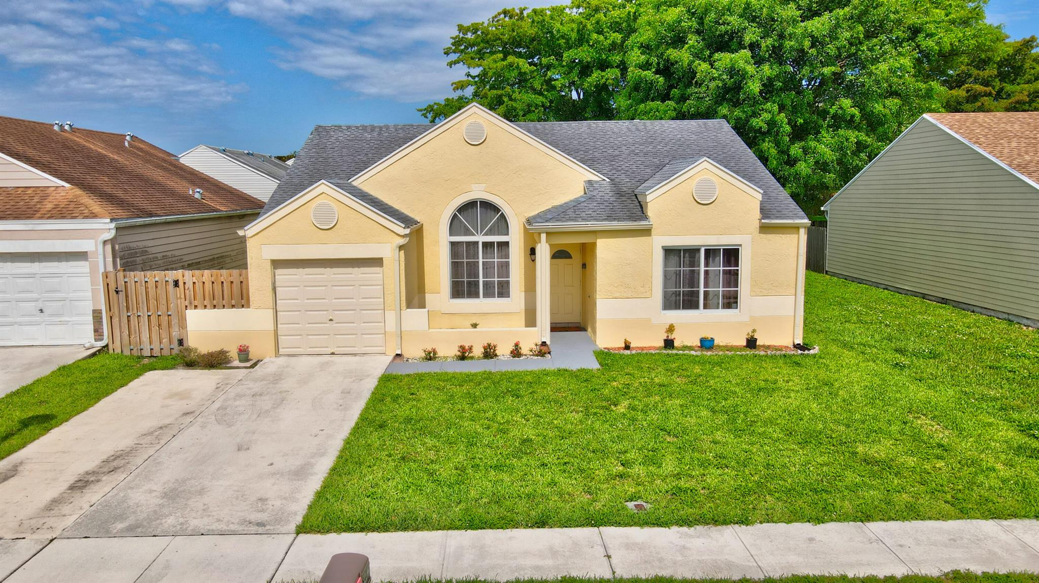 Absolutely spectacular modern Florida style home features 3BR, 2Bath, SFH nestled in the quiet Boca Raton community of Trends. Extremely LOW HOA, spacious open layout, granite kitchen countertops, stainless steel appliances, high ceilings, enclosed patio, fenced in backyard, storage shed, hurricane impact windows, community pool, tennis courts, big open grass field behind home, walking path around lake, highly rated school district