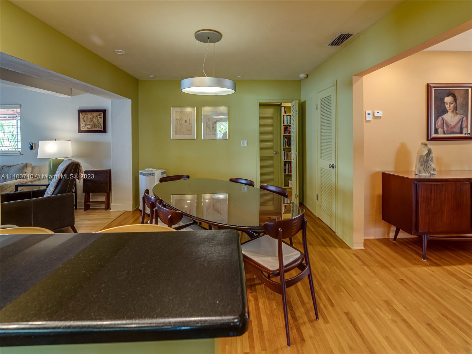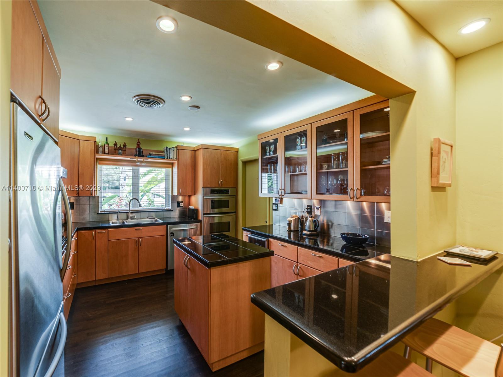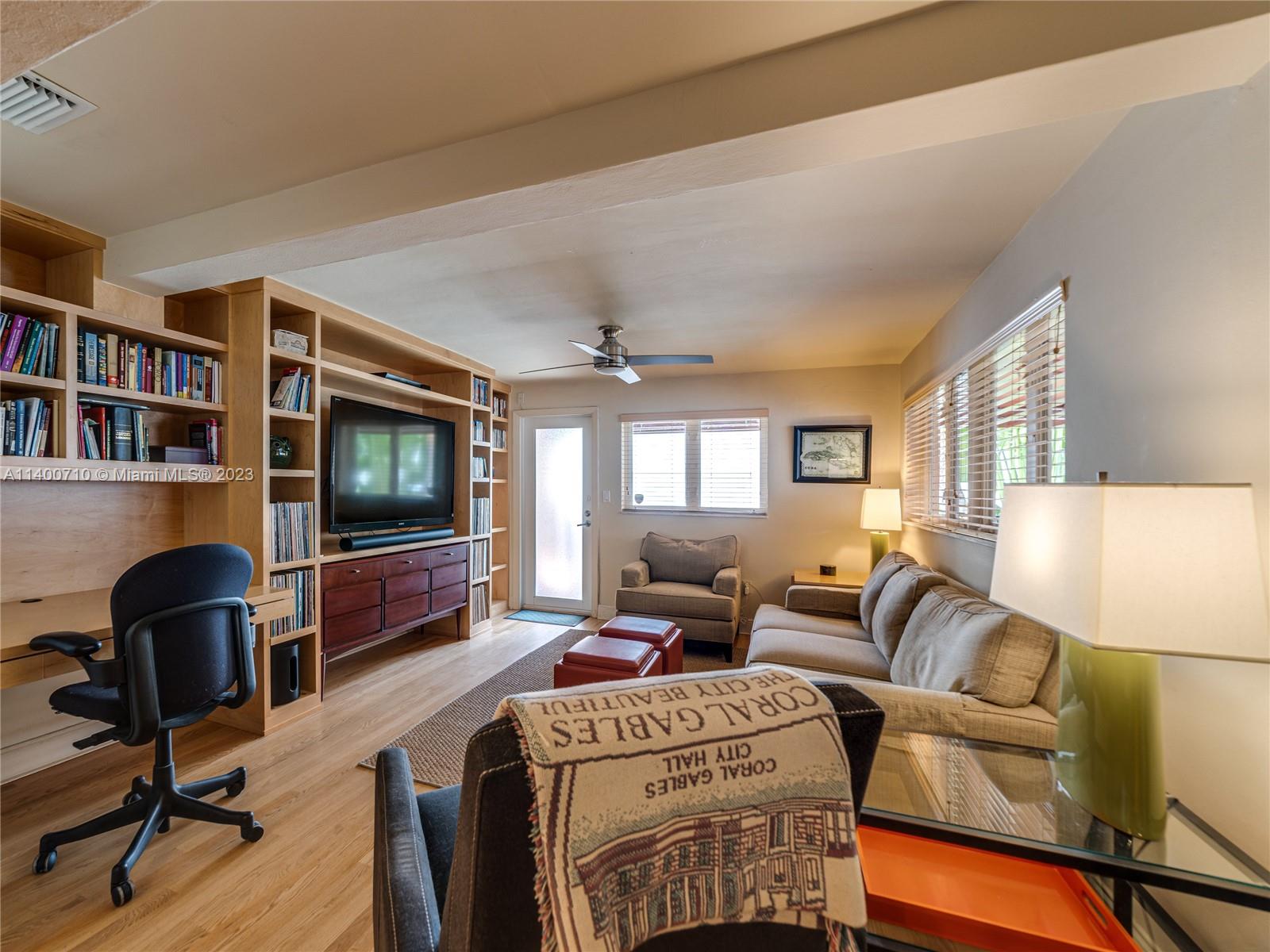 New Listing. Adorable 3 bedroom 2 bath home west of Le Jeune on a tree-lined street within walking distance to the Mile. Located in the Coral Gables Prep school district. Enter the courtyard to the covered porch then into a foyer with the living room. Master bedroom in front. The kitchen opens to the dining room. Two bedrooms and a hall bath beyond. Hardwood floors throughout. Spacious family room with wrap-around porch in the rear and fenced-in yard. Oversized garage. Impact windows and doors. 50 solar panels on the roof provide significant savings on electricity bills. 1,861 adj. sq. ft on a 6,000 ft. lot. The seller would like to close later or lease back through September. Full price or higher expected.