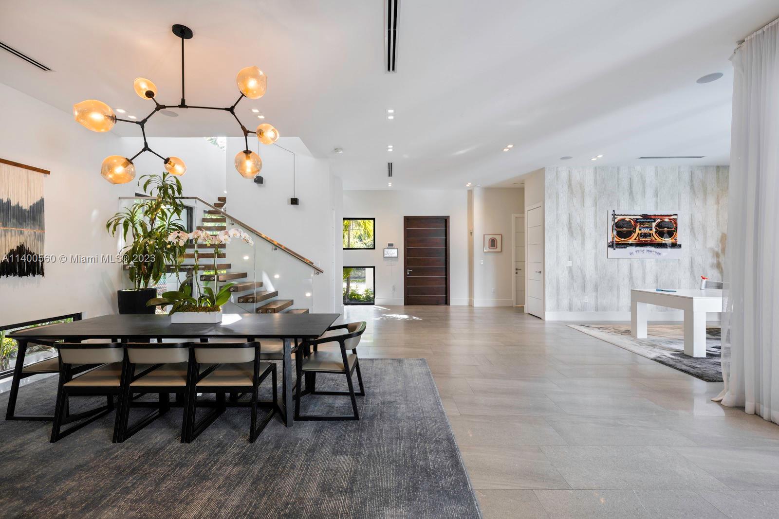 Stunning, Tropical modern home in prestigious North Coconut Grove. Totally gated and located on a quiet tree- canopied street, just a short walk or bike ride to bayfront parks & marinas. Designer finishes throughout including stone & wood flooring, volume ceilings, custom built-ins + chef's kitchen with Italian cabinetry & Subzero/Wolf appliances. Expansive primary suite offers spa-like bath w/soaking tub & frameless glass rain shower. Additional notable features: elevator, impact glass throughout, 48kw whole house generator, floating staircase and large family overlooking tropical pool & covered terrace. Lush landscaping surrounds the home and the rooftop terrace offers panoramic views of the Grove & beyond. Minutes to downtown, MIA, Coral Gables, Key Biscayne & the Beaches.