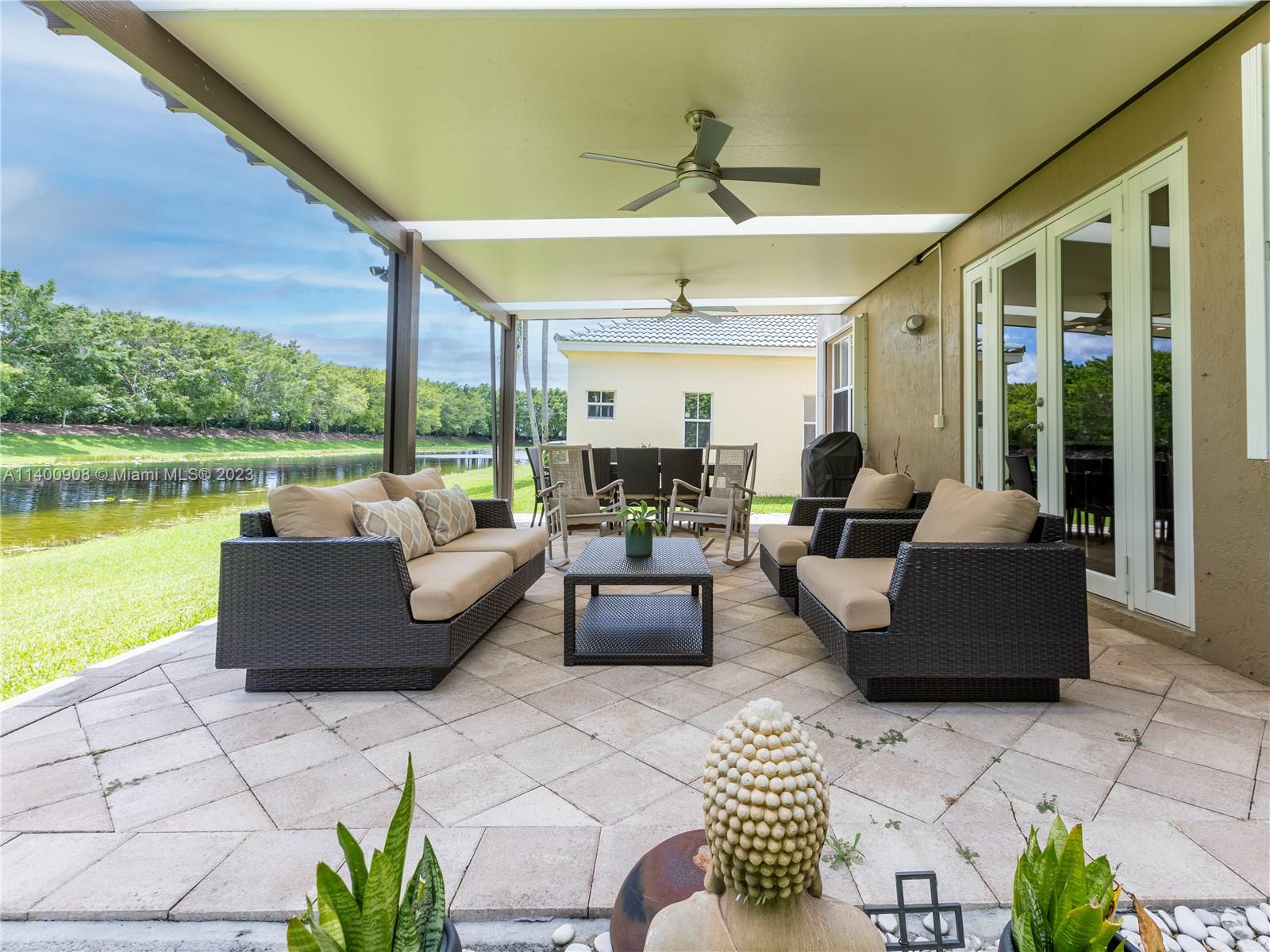 Back on the Market! Beautiful 4-BR + office, 2.5 bathrooms (guest bath and ½ bath renovated), 2-car garage lakefront home in the highly desirable gated community of The Ridges with A-rated schools and convenient access to all highways. Modern kitchen with elegant quartz countertops. Marble Floors in Living Areas. Modern Vinyl Wood Floors in Stairs and All Bedrooms. Stunning lake views with no neighbors in the back provide extra privacy allowing you to enjoy the beauty of the surroundings. Large extended covered patio to relax and entertain. Unique custom storage built-in under the stairs. Accordion shutters offer quick protection against hurricanes and storms. A neutral color scheme creates a versatile backdrop for any decor style and allows you to personalize the space.
