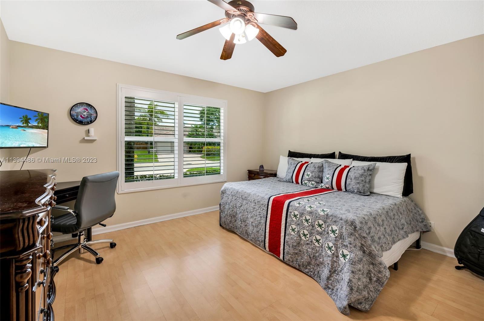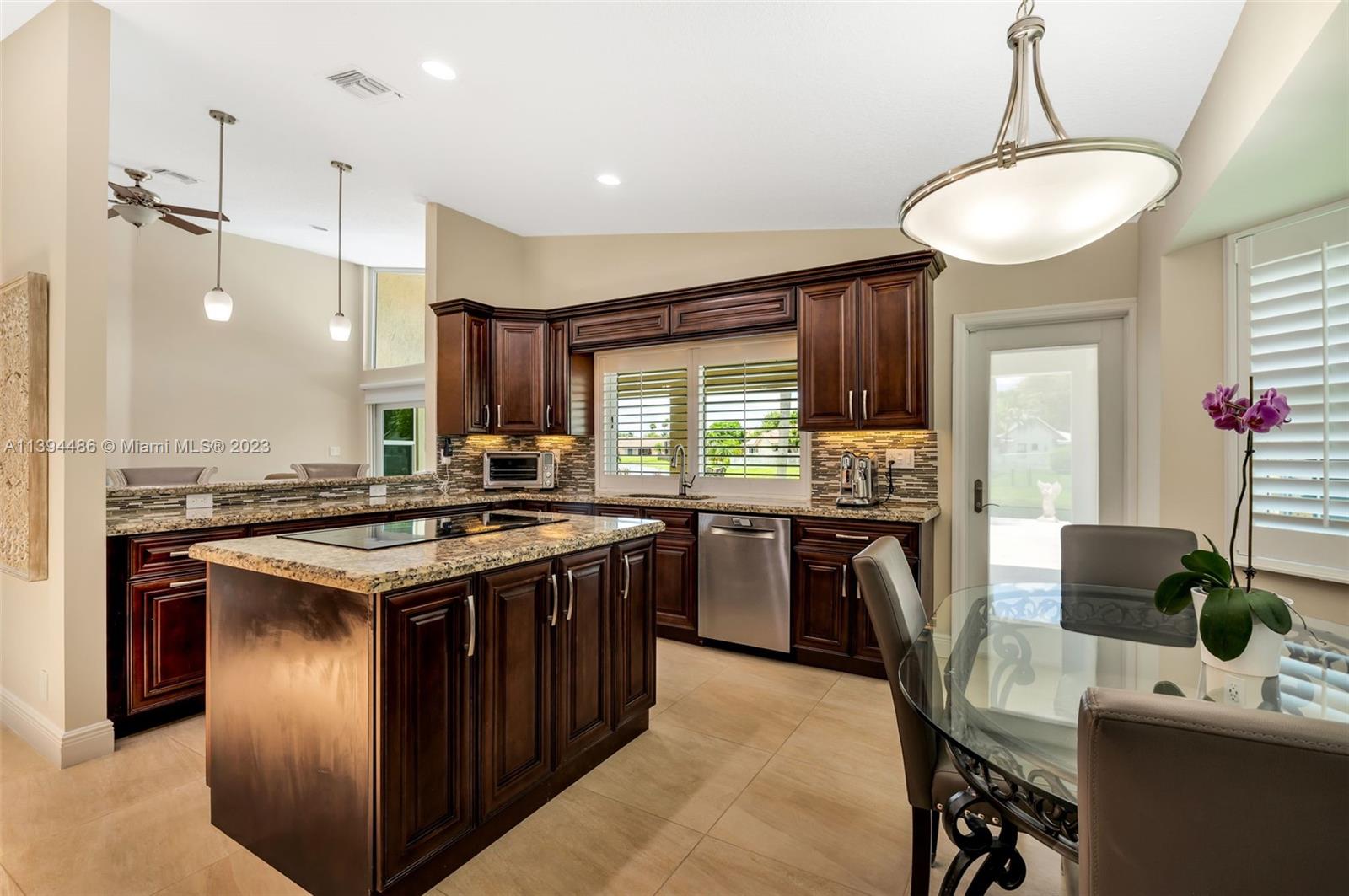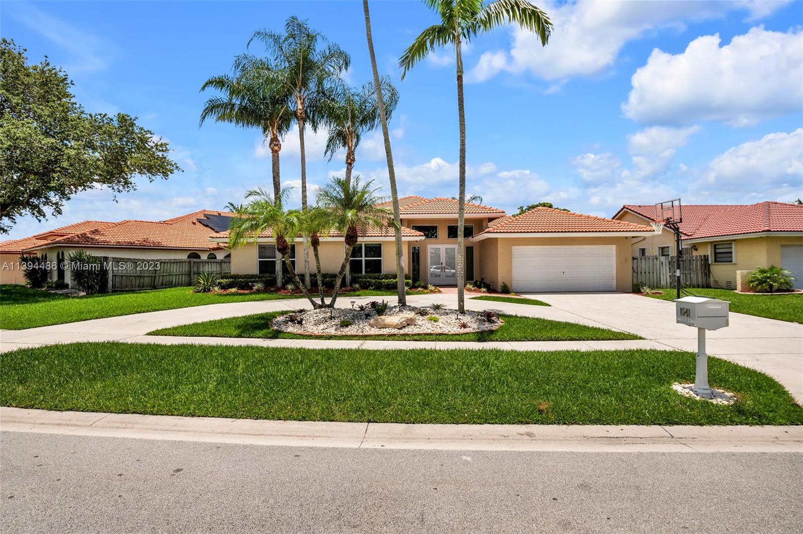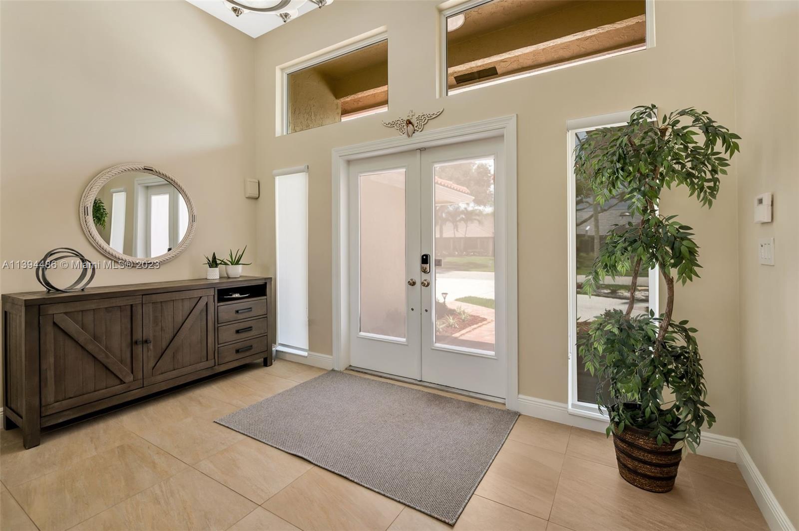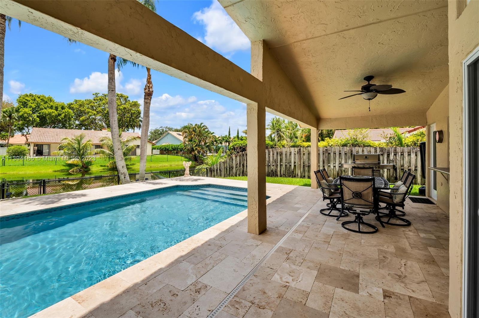 BEAUTIFUL & SPACIOUS WATERFRONT HOME. 4 BEDROOM W/ OFFICE/DEN & 3 FULL BATHS. TOTALLY & IMPRESSIVELY UPDATED. FEATURES ALL HURRICANE IMPACT GLASS AND DOORS EXCEPT FOR FRONT DOOR WHICH HAS HURRICANE PROTECTION, HURRICANE IMPACT GARAGE DOOR, GORGEOUS KITCHEN W ISLAND & LARGE PANTRY, 3 BATHROOMS NEWLY UPDATED, NEUTRAL TILE FLOORING, VOLUME CEILINGS & PLANTATION SHUTTERS THROUGHOUT. LARGE MASTER SUITE WITH SITTING & EXERCISE AREA & TWO LARGE BUILT OUT WALK IN CLOSETS. NEWER WASHER & DRYER. ENJOY SOUTH FLORIDA LIVING WITH FABULOUS & UPDATED POOL WITH NEWLY EXTENDED TRAVERTINE MARBLE PATIO OVERLOOKING LAKE. SPRINKLER WATER FROM LAKE. ROOF REPLACED IN 2008. LOW HOA. LOCATED ON A PICTURESQUE TREE LINED STREET IN DESIRABLE JACARANDA LAKES.