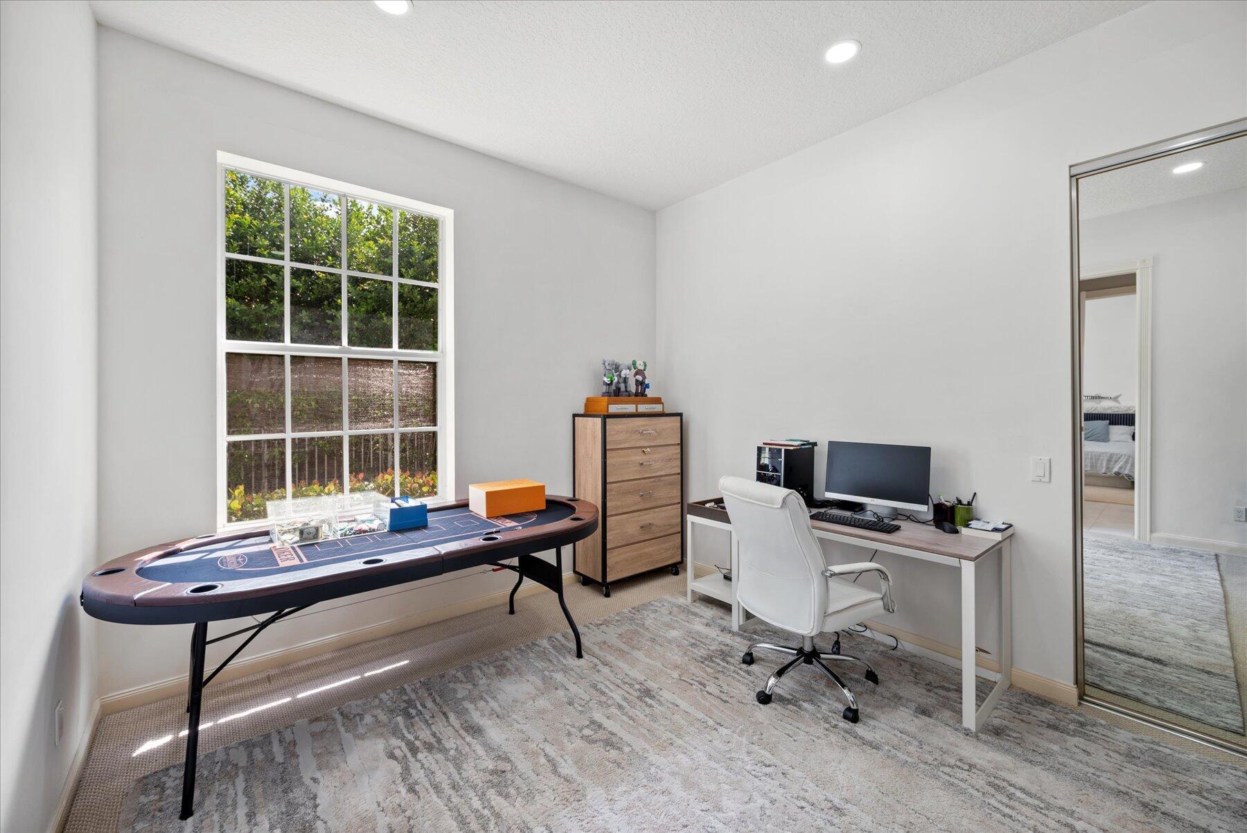 Highly sought-after Flagler Manor home in Breakers West is now available and with a lake view too! Great value--4 BED, 3.5 BATH, 3-CAR GARAGE on .25 acre corner lot with long lake view. New Roof in 2018. Very open and flexible floor plan. Tile floors in Main Living Area and new wood floors in Primary Bedroom. Spacious open patio surrounded by lovely trees or room to add your own pool. Corner lot adjoins landscaped common area for addition privacy. Recently painted exterior and new exterior lighting. Complete accordion shutters for windows/doors.Breakers West is one of West Palm Beach's premier guard gated club communities & is just 20 mins to downtown WPB's Financial center, Kravis Center, The Square, PBI as well as Palm Beach, Wellington equestrian amenities and great schools.
