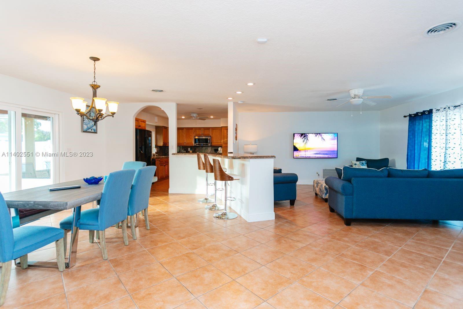 AMAZING HOUSE WITH BEAUTIFUL POOL, 3 BEDROOMS-2 BATHROOMS, OPEN CONCEPT, GIGANTIC ISLAND IN THE KITCHEN, PERFECT FOR ENTERTAINING FAMILY AND GUESTS, SPACIOUS AND UPDATED KITCHEN WITH POOL VIEW. IMPACT WINDOWS AND DOORS. NEW FLOORING IN EVERY BEDROOM. CALSO HAS NEW A/C 2021, FENCED YARD WITH AMAZING POOL, TRAVERTINE MARBLE DECK AND SCREENED PATIO WITH BARBEQUE AREA. CIRCULAR DRIVEWAY. CALL THIS HOUSE YOUR NEW HOME OR DO AIRBNB FOR INVESTORS. HOUSE IS FULLY EQUIPPED AND FURNITURE NEGOTIABLE. PLEASE CALL LISTING AGENT FOR PRIVATE SHOWING.