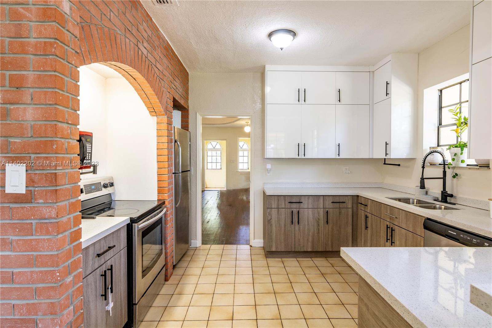 Charming 1920s Spanish-style home in the beautiful and historic Griffing Park neighborhood of North Miami. 3/2 with newly updated modern kitchen and bath, large primary bedroom as well as additional living space with separate entryway leading to the expansive front yard. This home has unique, well-maintained original features including a fireplace, stained glass windows, original wood floors and Mexican tile as well as brick accents. The house sits on a large yard making it easy to expand. Tropical foliage surrounds the property and a large avocado tree that provides peaceful shade. Close to a newly revitalized downtown, adjacent to Biscayne Park and Miami Shores. 15 minutes from the beaches and 3 minutes to I-95 puts you right near all that South Florida has to offer.