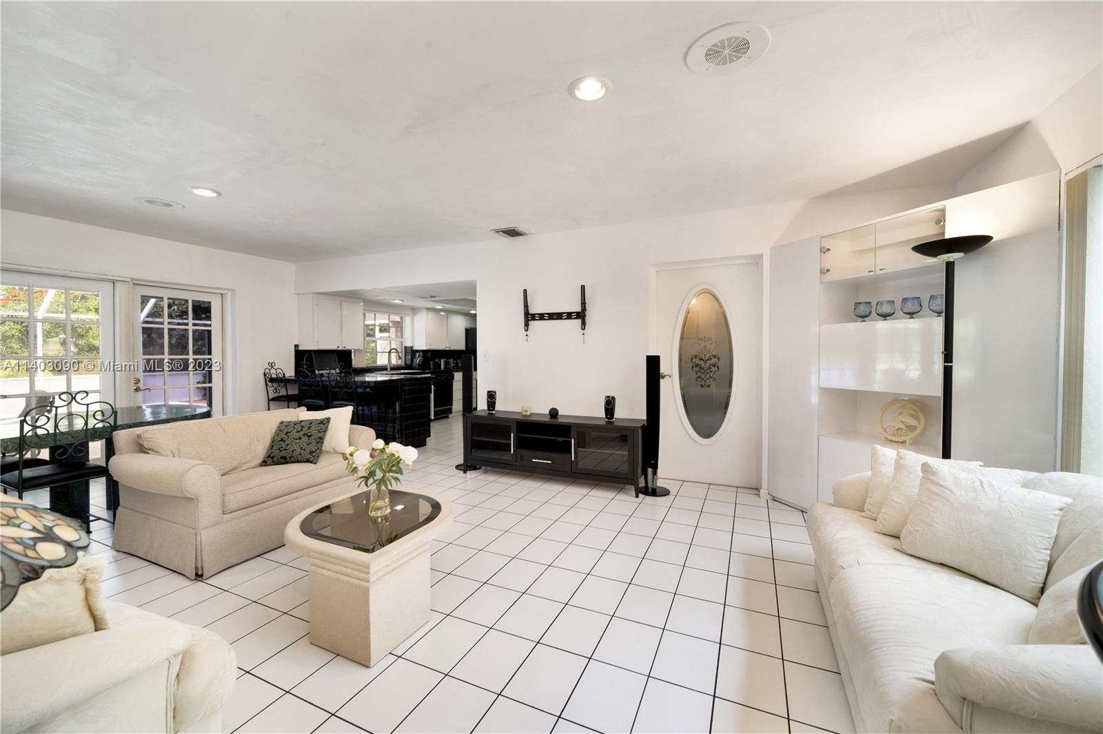 Lovely home with endless possibilities. Spacious living and family rooms, French doors leading to the patio and pool area with lots of room to entertain. Principal bedroom, including its own kitchenette and garden access is located downstairs with an additional 3 bedrooms upstairs. The garage is converted to an in-law suite or possible rental apartment with a separate entrance or can be converted back. Featuring a spacious 15' x 60' elevated sundeck, circular driveway and mango, avocado & lychee trees for your enjoyment! A romantic Juliet balcony completes the picture. Located on a huge lot with room for a guest house and much, much more. Actual living space is larger than tax roll. Hurry, won't last!