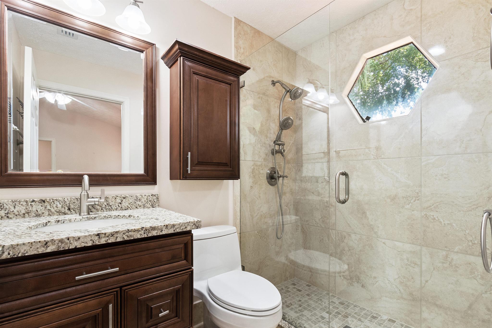 Fabulous pond view location. Desirable Boca Pointe Place, Rare beautiful community with Golf and Social membership is optional. Enclosed bonus room with floor to ceiling impact windows and sliding doors. Large floor plan with separate dining room, open famiy room with Wet bar and fireplace, than the addition. Enclosed brick paver patio that opens from the kitchen or bonus room. So much natural light, Updated kitchen with custom cabinetry, granite counters and separate laundry room in the home. Separate dining area and perfect for entertaining or relaxing with the beautiful views. Large master with luxury updated bath, his and her vanities, and walk in closet. Attached garage. Driveway has a second paved area for a third car spot. Great place to call home.