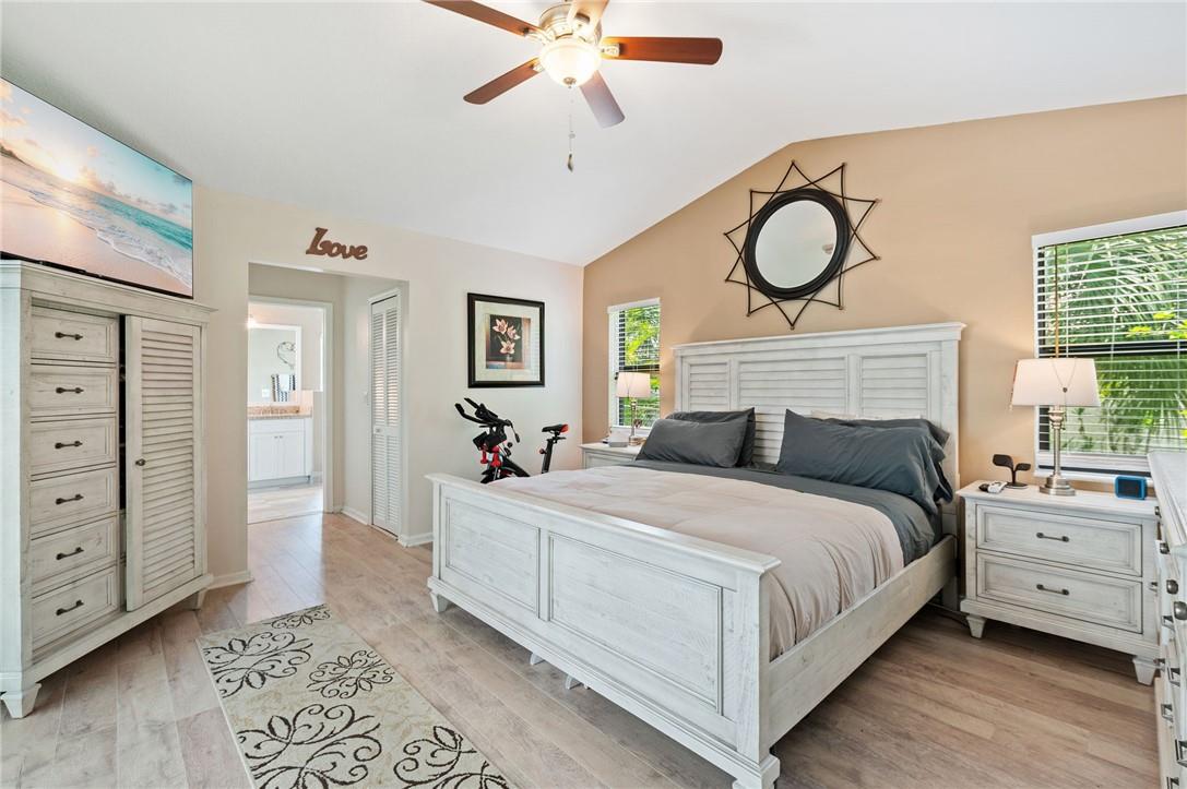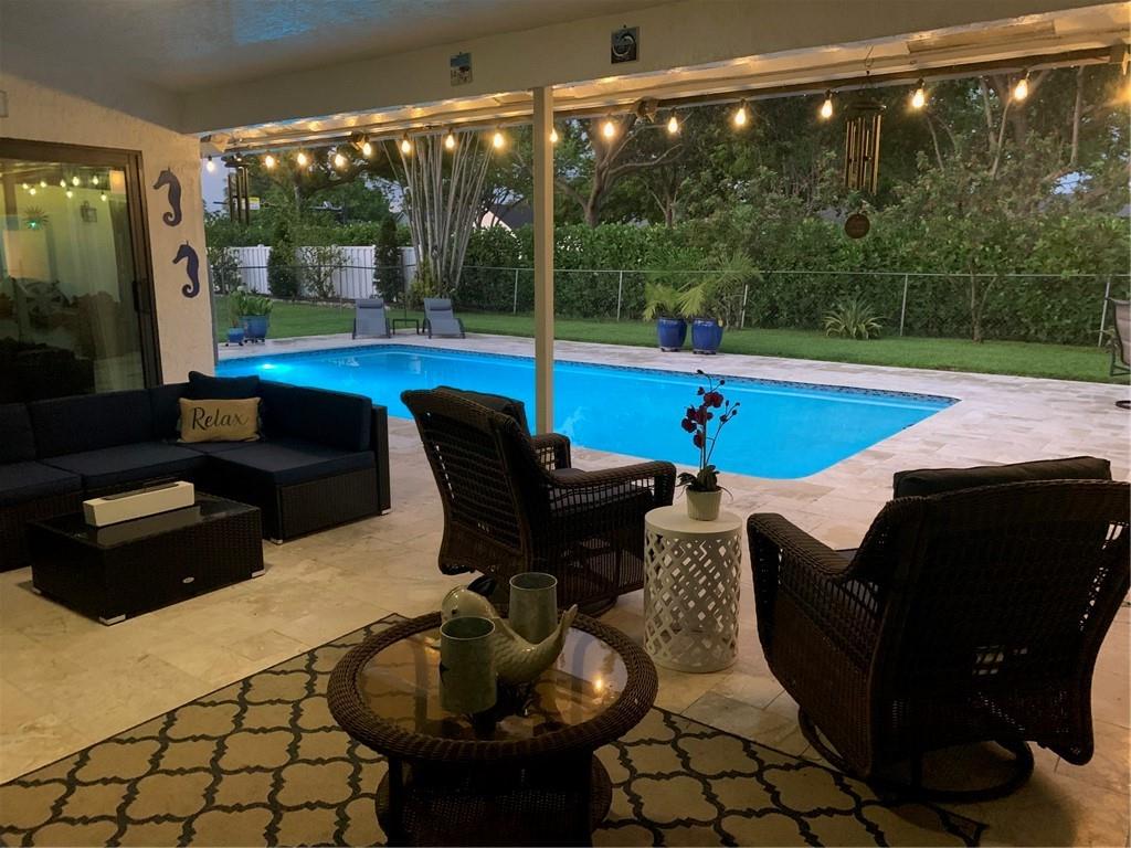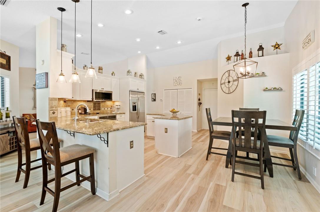 Absolutely Stunning 4/2 Pool home -All the bells/whistles-For the pickiest of buyers! Vaulted ceilings thru-out except Guest Br's. Features Include: IMPACT GLASS thru-out entire home/doors, recently extended (3/2023) pool deck with Travertine Marble, New pool tiles & Diamond brite, Updated Kitchen & New Appl (2021), Both Baths Remodeled, All New vinyl laminate plank flooring (4/2023) thru-out except Baths, 4-1/2 Ton AC (2016), New Roof 2012), Plantation Shutters in DR, LR, & Brkfst Rm, Electric Blinds in Master Br & Fam Rm, 7 ceiling fans, new garage door opener (2020). Garage door has bracket for shutters. EXCLUDE: Bistro lighting, Washer/Dryer - Pride of OWnership - A MUST SEE - WILL NOT LAST.