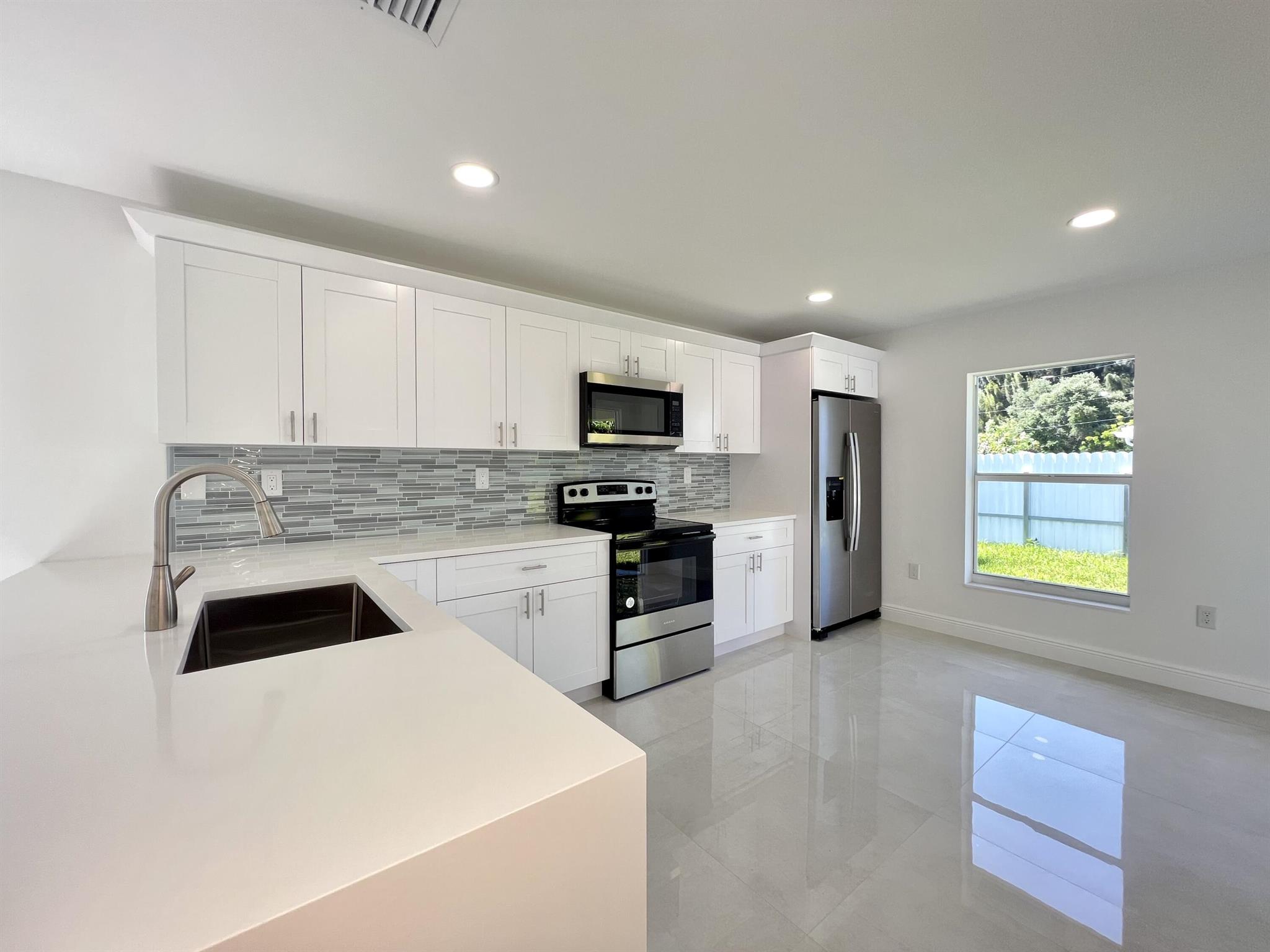 Welcome to your DREAM HOUSE! Gorgeous single family residence located in the heart of West Palm Beach. This property boasts an open, spacious, modern and bright living area and kitchen with wood cabinetry, quartz countertops, and brand new stainless steel appliances. The house also features porcelain tile floors, impact glass doors and windows, dome ceilings, walk-in closets, dual sink vanity and shower in master bathroom, glass shower/tub doors, extensive driveway, fenced backyard, and rear porch. Make this beautiful house yours today!