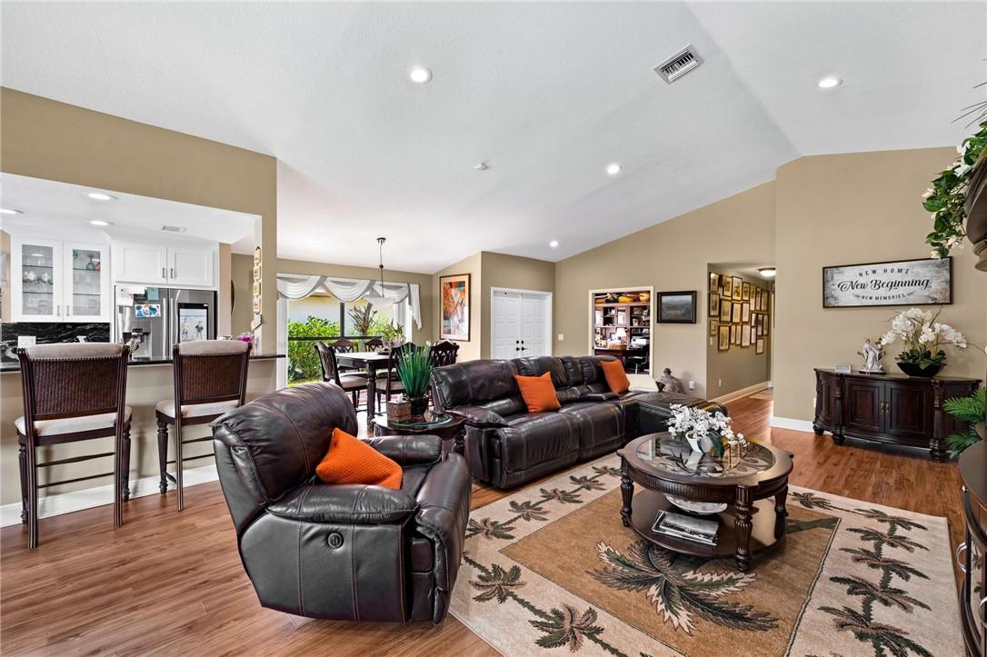 Move-in ready 2 BDR, 2 BA, den/office w/3rd BDR option, 2 car garage in desirable Boca Woods Country Club. Private pool, lake & golf course views. Split floor plan, renovated, open concept kitchen w/ smart SS appliances. Primary w/ walk-in closet & pool/patio access. Features luxury vinyl flooring, impact sliders, covered patio w/ heated pool, no rear neighbors, on 6th hole of the Lakes course. New exterior paint. Boca Woods is an all-ages club w/ resort-style living, 2 18-hole championship golf courses, driving range, fully renovated clubhouse w/ pro shop, pool, spa, fitness center, salon, 2 restaurants, tennis, pickleball, bocce. 24-hr manned gate & patrol. Mandatory membership. Patio furniture & golf cart incl. Other furniture negotiable. CALL TODAY!
