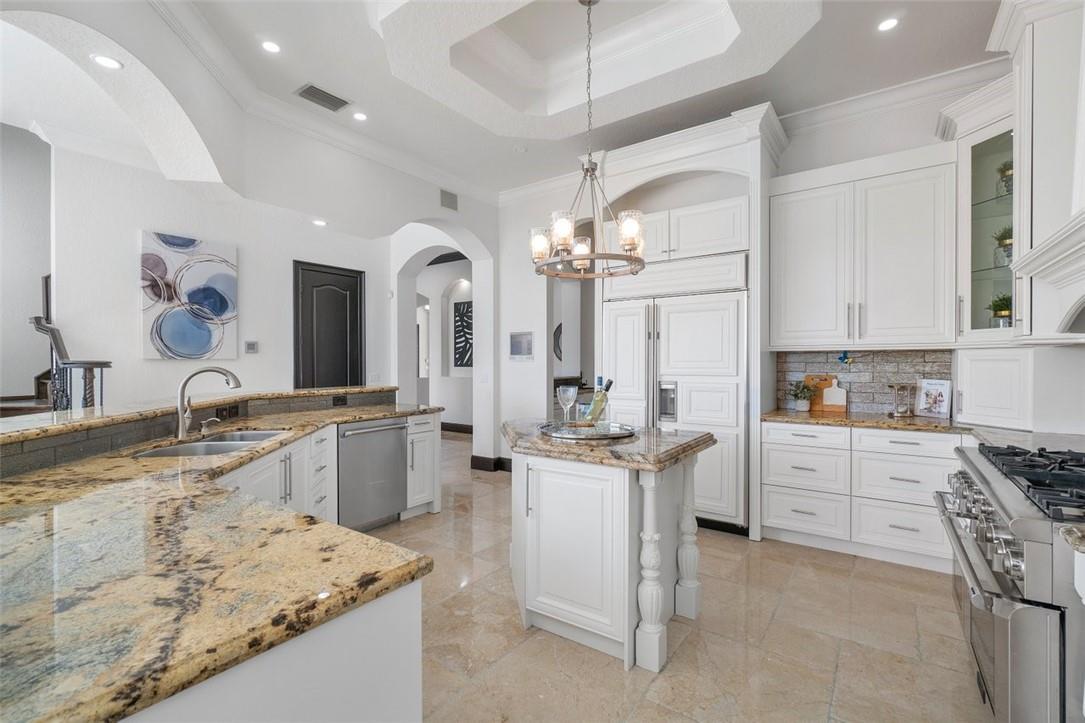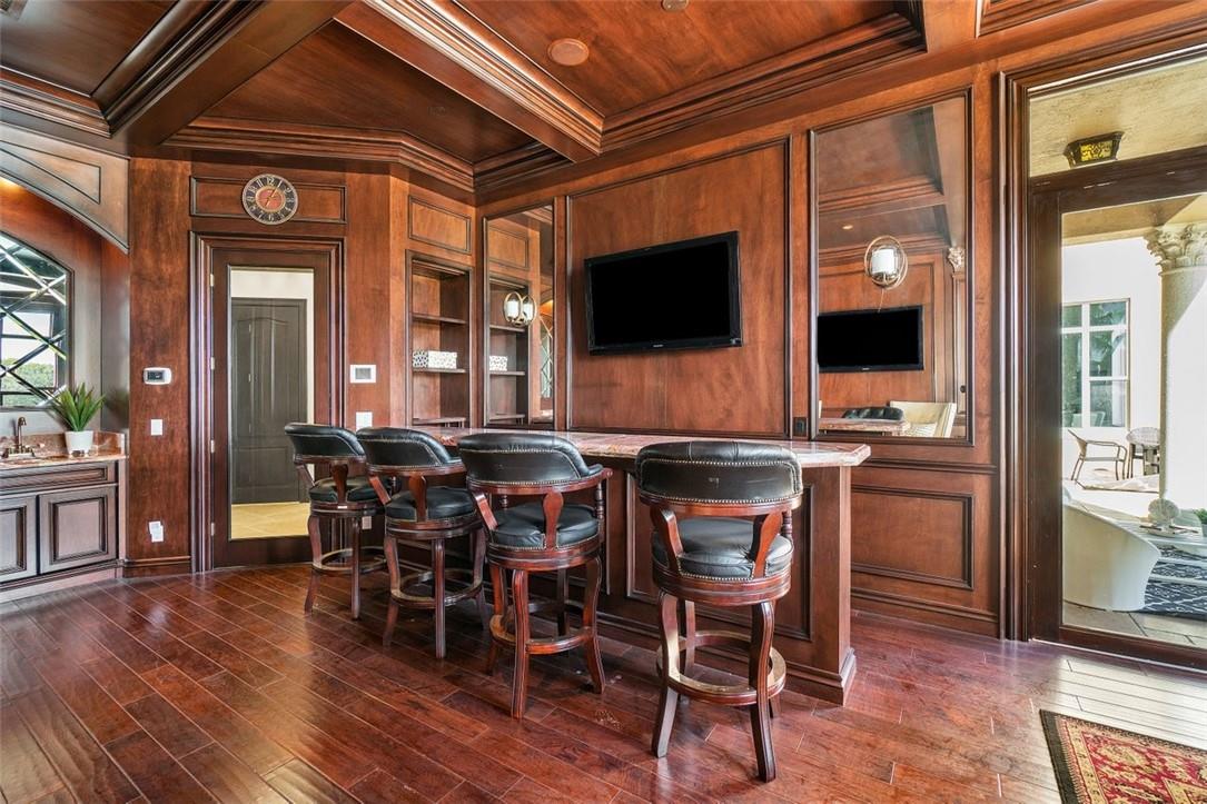 Spectacular Home On Oversized, Private, Waterfront Cul De Sac Lot In Heron Estates! 6 Bedrooms plus Bonus Room, 5 Full Bathrooms And 2 Half Bathrooms Plus 12 Seat Theatre Room. Separate Office and Bar Room. Custom Built With All The Bells And Whistles. Jerusalem Tile Throughout, Real Wood and Marble Floors. Separate Wet Bar/Butlers Pantry With Wine Fridge, Gourmet Kitchen With Sub Zero Refrigerator, 2 Dishwashers, 6 Burner Gas Stove Top And Thermador Ovens. Master Bedroom Upstairs With Office And His And Her Custom Built Closets. Master Bathroom Has His And Her Sinks And Separate Vanity Area. Laundry Room Has 2 Washers And 2 Dryers With Dog Wash, Shower Area. Fenced Yard With Summer Kitchen With Bar Seating And Oversized Pool Overlooking Lake. Impact Glass.