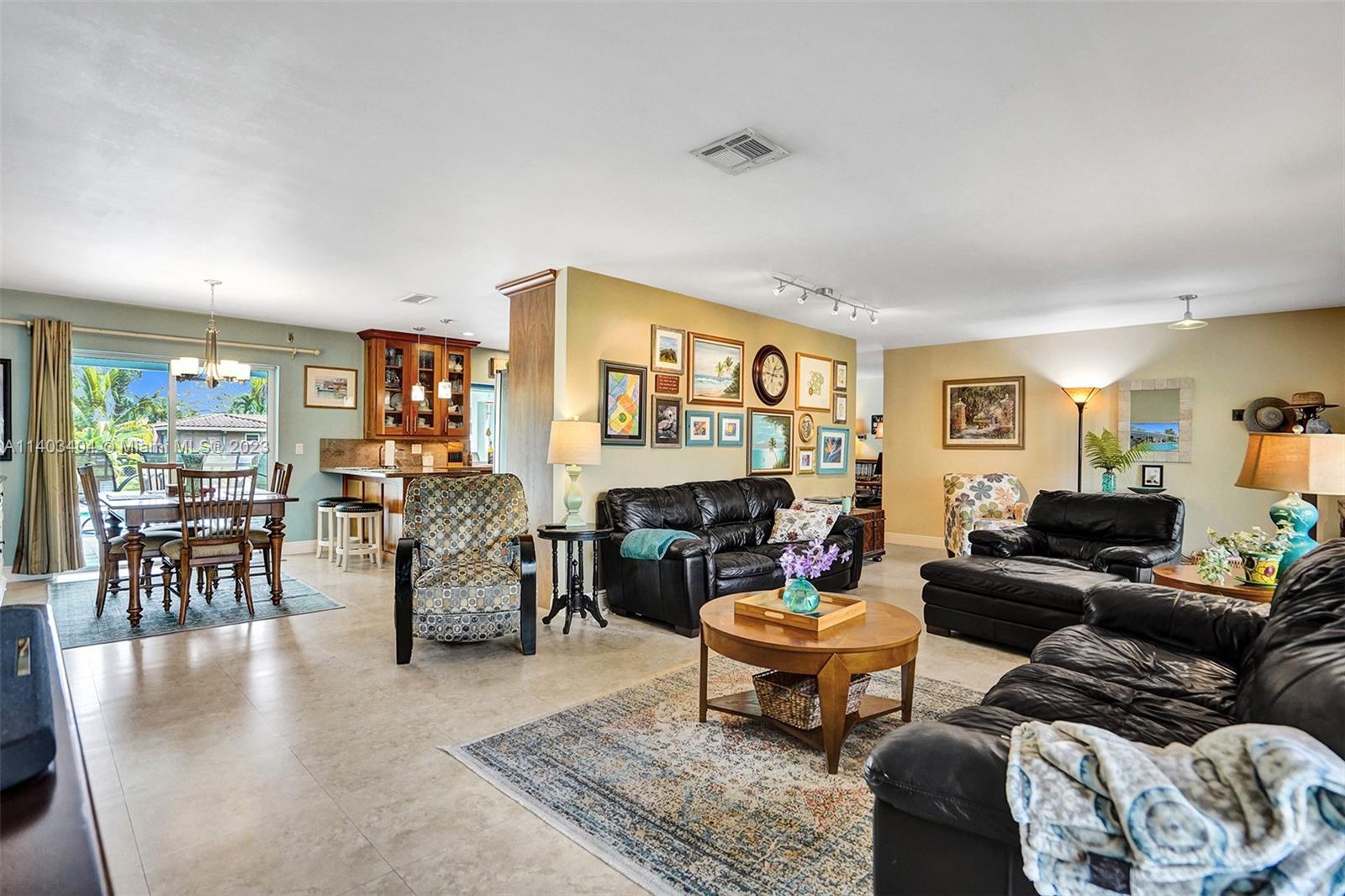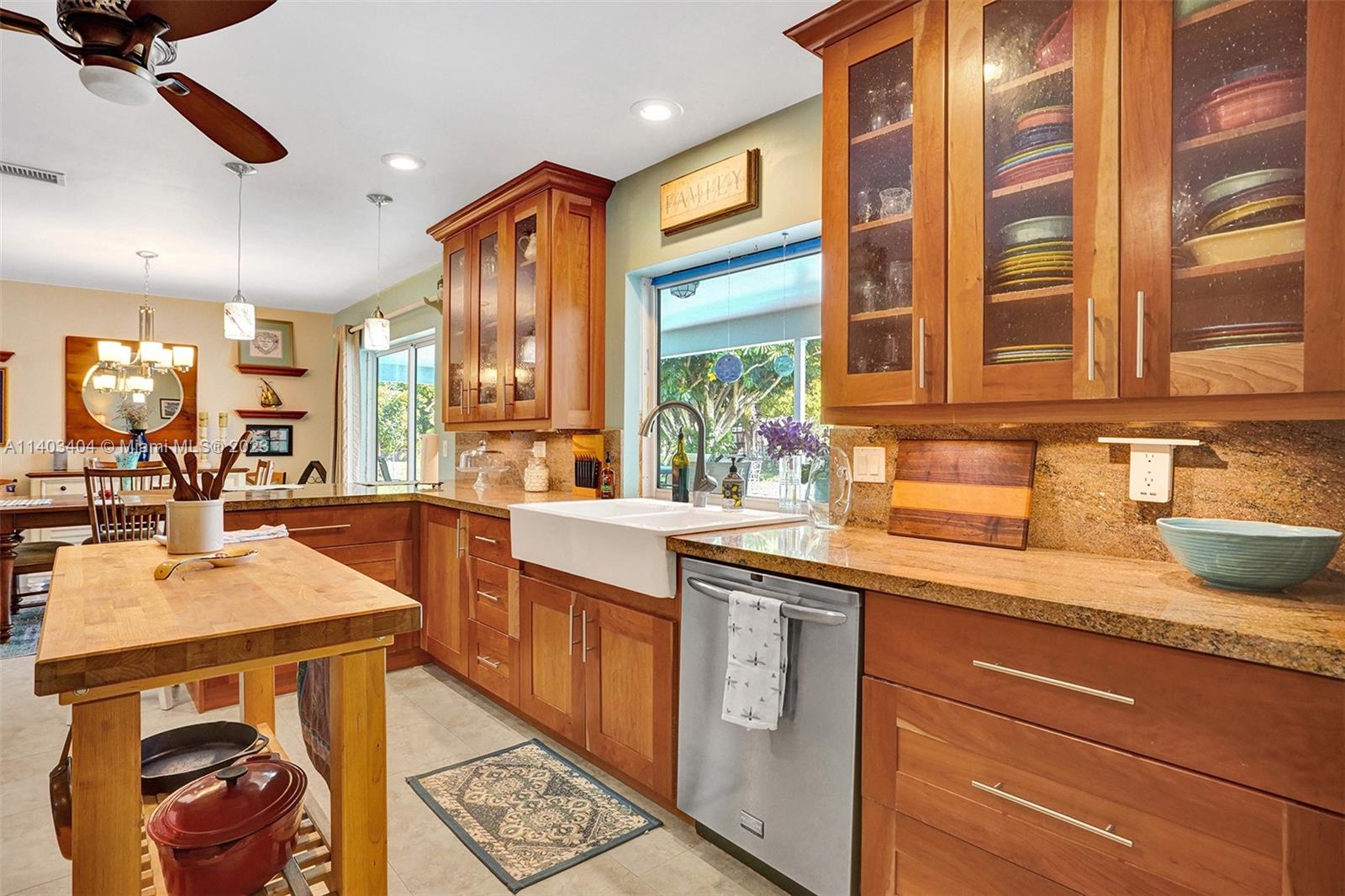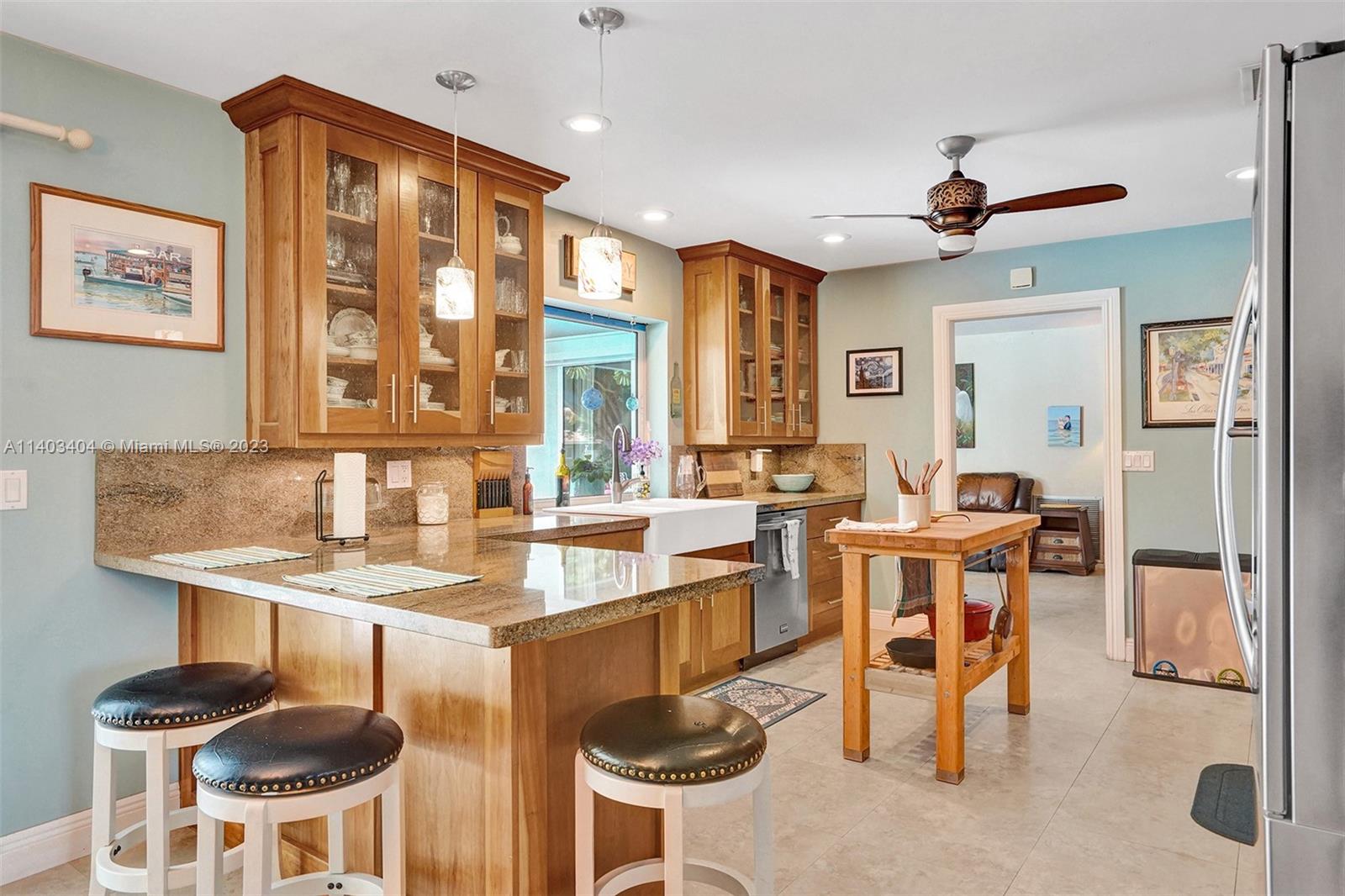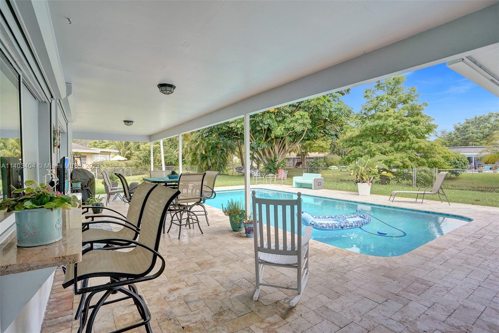As you approach this home, you will feel the love, care and attention to detail, from the concrete driveway with use of Chicago brick, to the inside large room for family and friends to gather. Split plan provides privacy, extra large bedrooms, a kitchen of custom true cherry wood cabinets, overlooking your pool, patio and canal. The extras are so abundant they are described in attachment to this listing. No Flood policy required and NO HOA! But that hasn't deterred the neighborhood; it is well kept and safe! Children will enjoy play as well as the local schools and park just a bike ride away. Pool with bricks/pavers has been completely refurbished including all the lines and drains that you can't see.