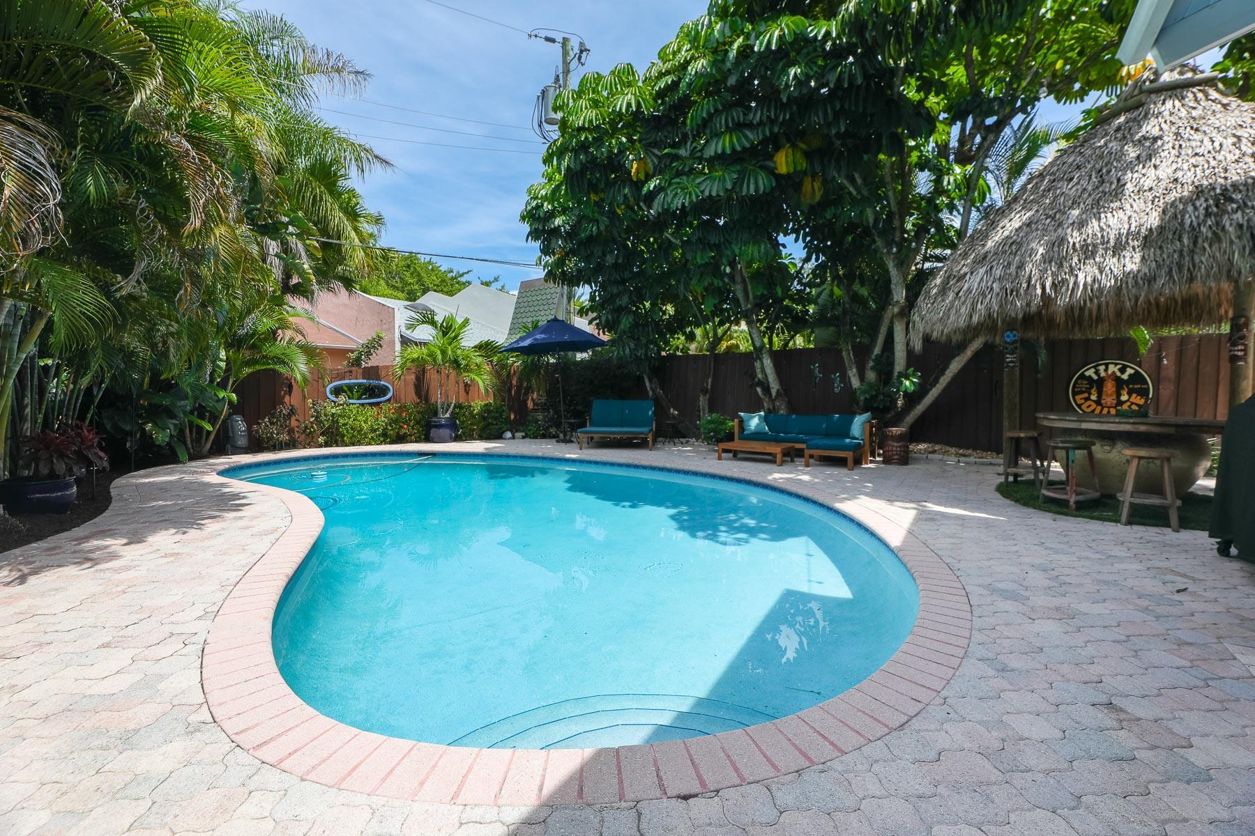 This 2bd/2ba townhome is on the original developer lot, offering exclusivity & privacy, boasting a brand-new roof, new paint, a spacious parking area with newly installed brick pavers & an insulated bamboo woodgrain ceiling. Step outside into the backyard oasis & discover a gorgeous tiki hut & sparkling heated pool, perfect for hosting a summer barbecue or simply unwinding after a long day in solitude. No HOA or rental restrictions, Within walking distance to Las Olas blvd, Ft Lauderdale beach & downtown. Just a short 10-minute drive to Fort Lauderdale Airport, 2 minutes to Brightline. This is truly a unique opportunity to enter the prestigious Victoria Park neighborhood at a relatively low price point, without sacrificing privacy, outdoor living space or features like a private pool.