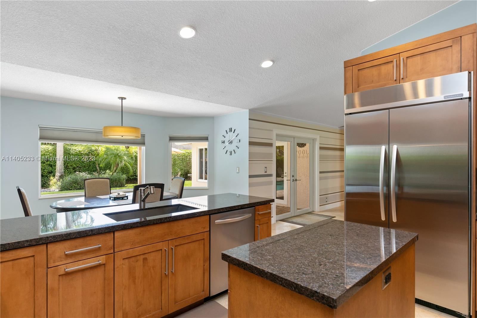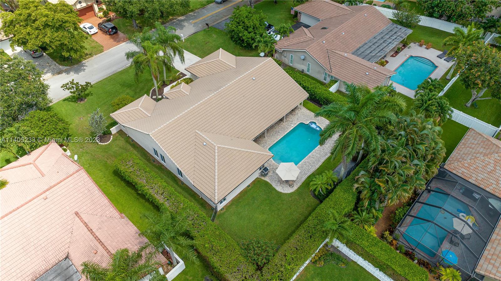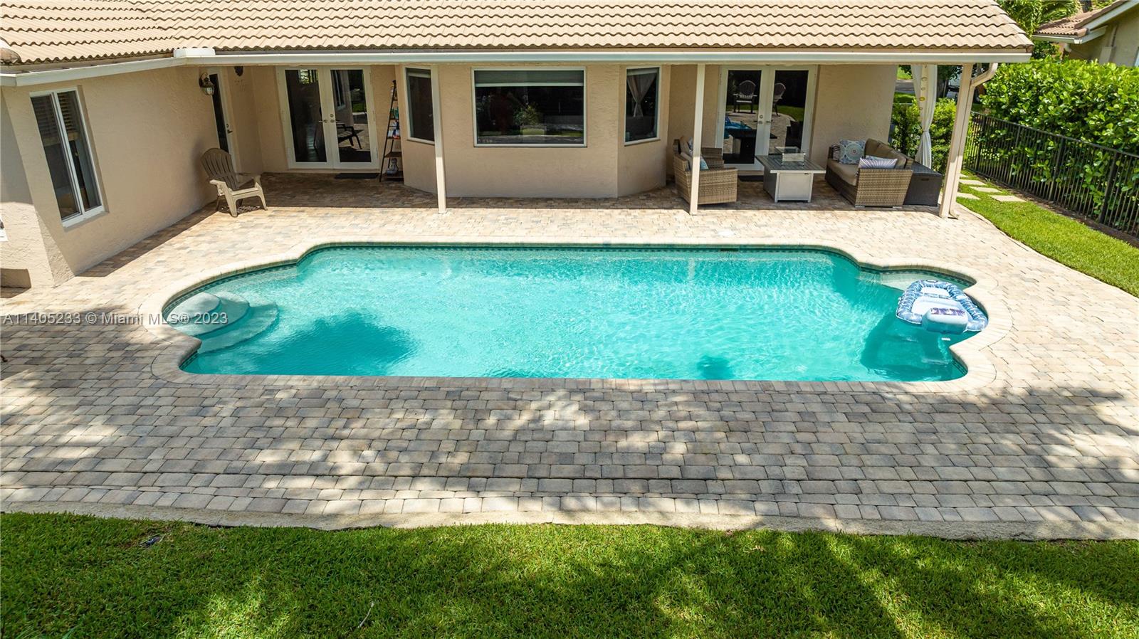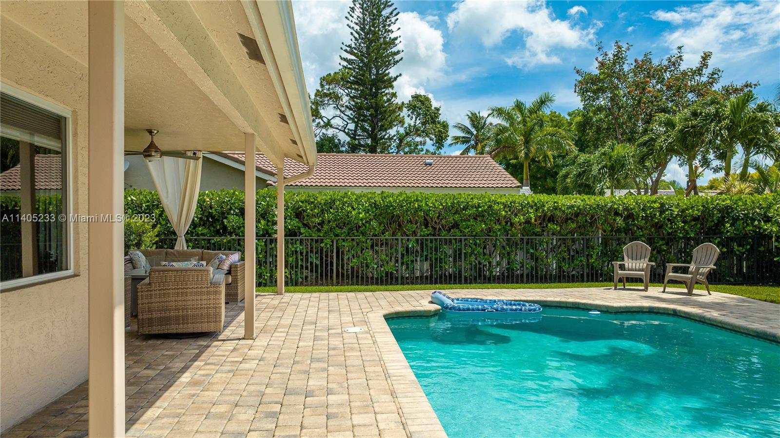 Beautiful 5/2.5 pool home located in the coveted Pine Ridge Community of Coral Springs. This immaculate home features an upgraded, modern kitchen with shaker cabinets, built-in refrigerator, stainless steel appliances and granite counter tops. There are *impact windows and doors* throughout for your protection. The home boasts Jerusalem stone and wood floors throughout, upgraded bathrooms, closet built-ins and neutral colors throughout. Enjoy your own private oasis in the backyard with a large heated pool, spacious patio and tropical landscaping. Air conditioner is 2014, hot water heater heater 2021, roof 2005. This home is move in ready!