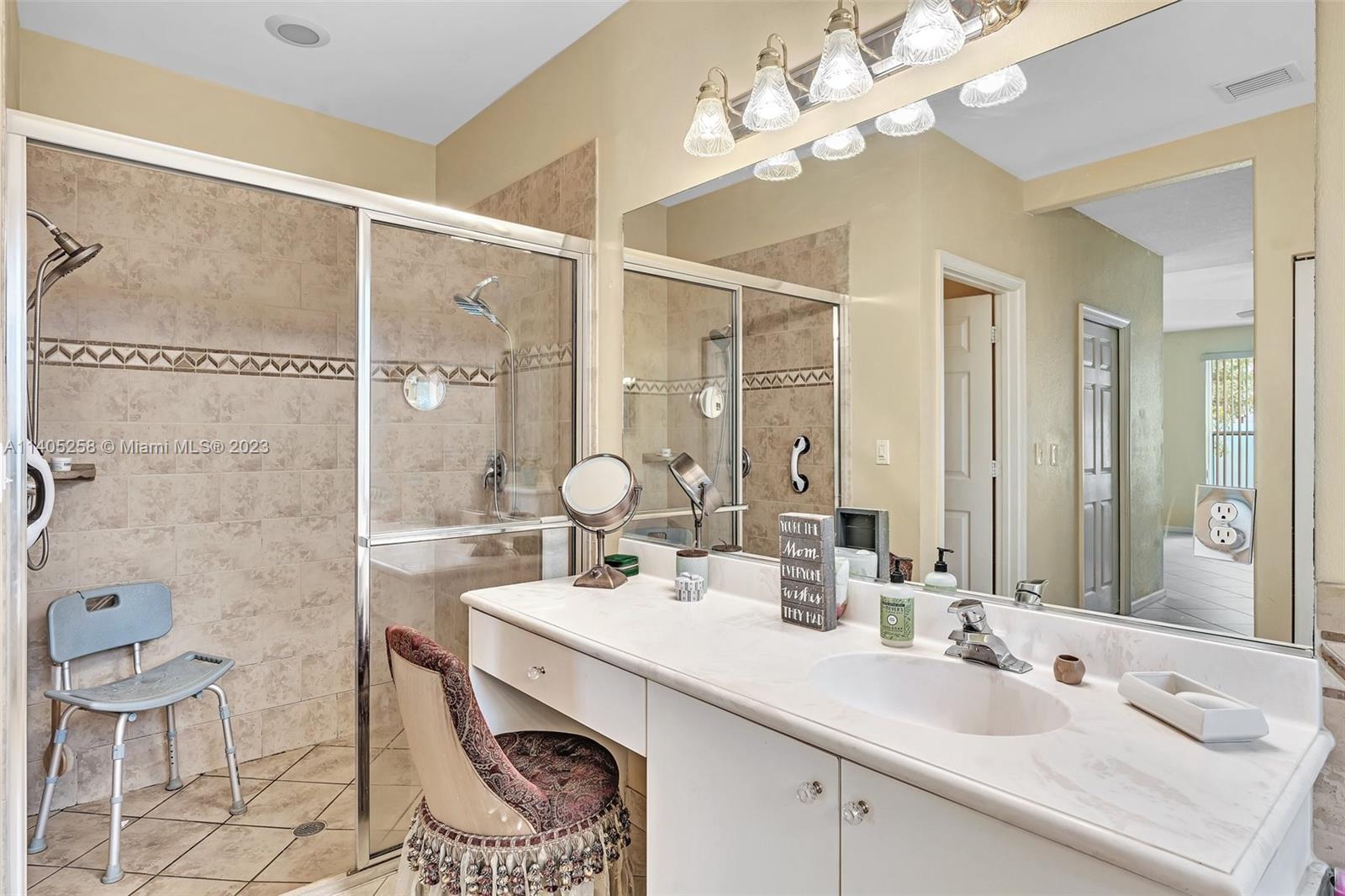 ONE STORY, spacious, freshly painted ready to move in Home. This 5/3 house in the beautiful, gated community of Silver Shores with 14’ Ceiling Foyer Entry and 12’ Ceiling throughout, 3 Car Garage, large Bedrooms, Upgraded Baths. Porcelain Tiles & lots of Natural Light throughout the entire home. Large Master Suite with Tray Ceiling, 2 Walk-in Closets, Spa like Bath w/ Dual Sink Vanities, Roman Tub & Shower. Kitchen w/ Tall White Cabinets, Two Pantries, Centered Island facing the Family Room with a separate Breakfast Area overlooking the Garden. Resort-style amenities include 24-hr Security, Fitness Center, Tennis Court, Playground, Pool. Minutes away from Shopping, Restaurants, Hospitals, Schools, Major Highways, and Beaches.