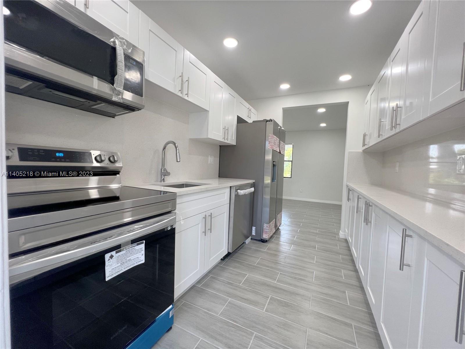 Cozy renovated 3 bed/2 bath single family home with spacious living/dinning room. Permitted second bathroom in master bedroom. Remodeled kitchen, new front fence and roof (2022) also with permits. Up to code electrical and plumbing upgrades. Kitchen comes with new stainless steel Samsung appliances, wood cabinets and quartz countertops. New tile floors, doors, fixtures and led lights. The A/C and ducts were replaced 1 year ago. New washer/dryer and tankless water heater recently installed in laundry room. Large backyard with mango trees. The house is situated in a quiet residential neighborhood, conveniently located within minutes of major supermarkets like Whole Foods, Publix, Costco, Walmart. Close to stores, restaurants and Pompano Citi Centre. Only 10 minutes away from the beach.