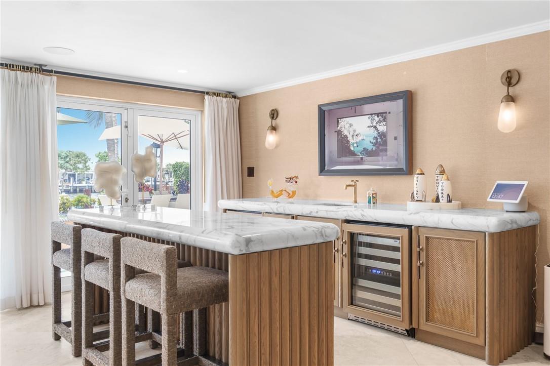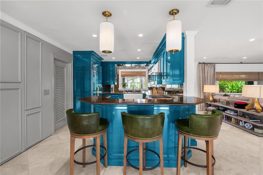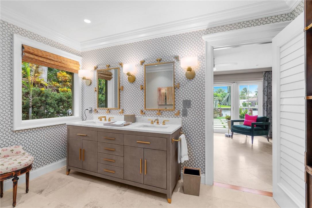 Experience waterfront luxury living in this stunning Intracoastal pool home designed for entertaining. Recently updated with an organic neutral interior palette, it boasts luxury finishes such as marble floors, mosaic bathroom walls, Hermès wallpaper, Toto Washlet, steam shower, outdoor gas lamps & fully loaded wet bars. The split bedroom plan includes a 2 car garage. Big-ticket items new A/C, new home generator, gas line, updated electric, and a concrete tile roof provide peace of mind. Outside, enjoy a renovated backyard w/ an outdoor kitchen, heated pool & fire pit area. Boaters will appreciate the 15,000lb boat lift on 100ft waterfront, 200ft wide dredged canal just one off the intracoastal, w/ no fixed bridges for ocean access. Walk to the beach& live the ultimate coastal lifestyle.
