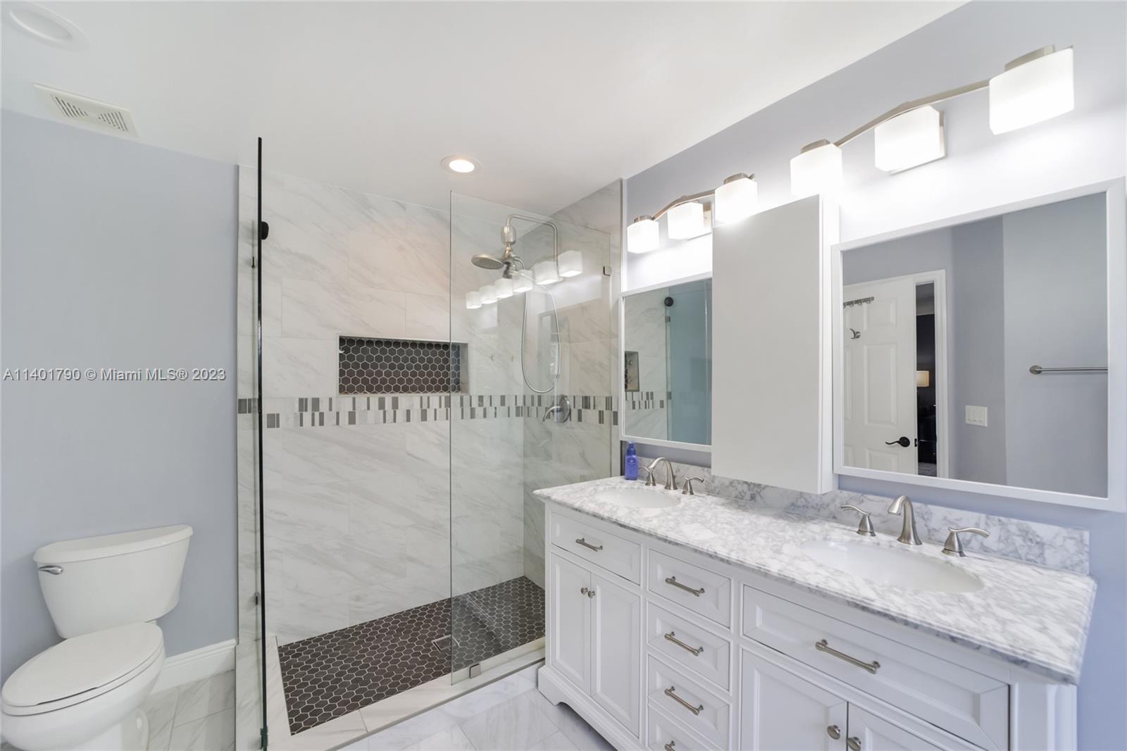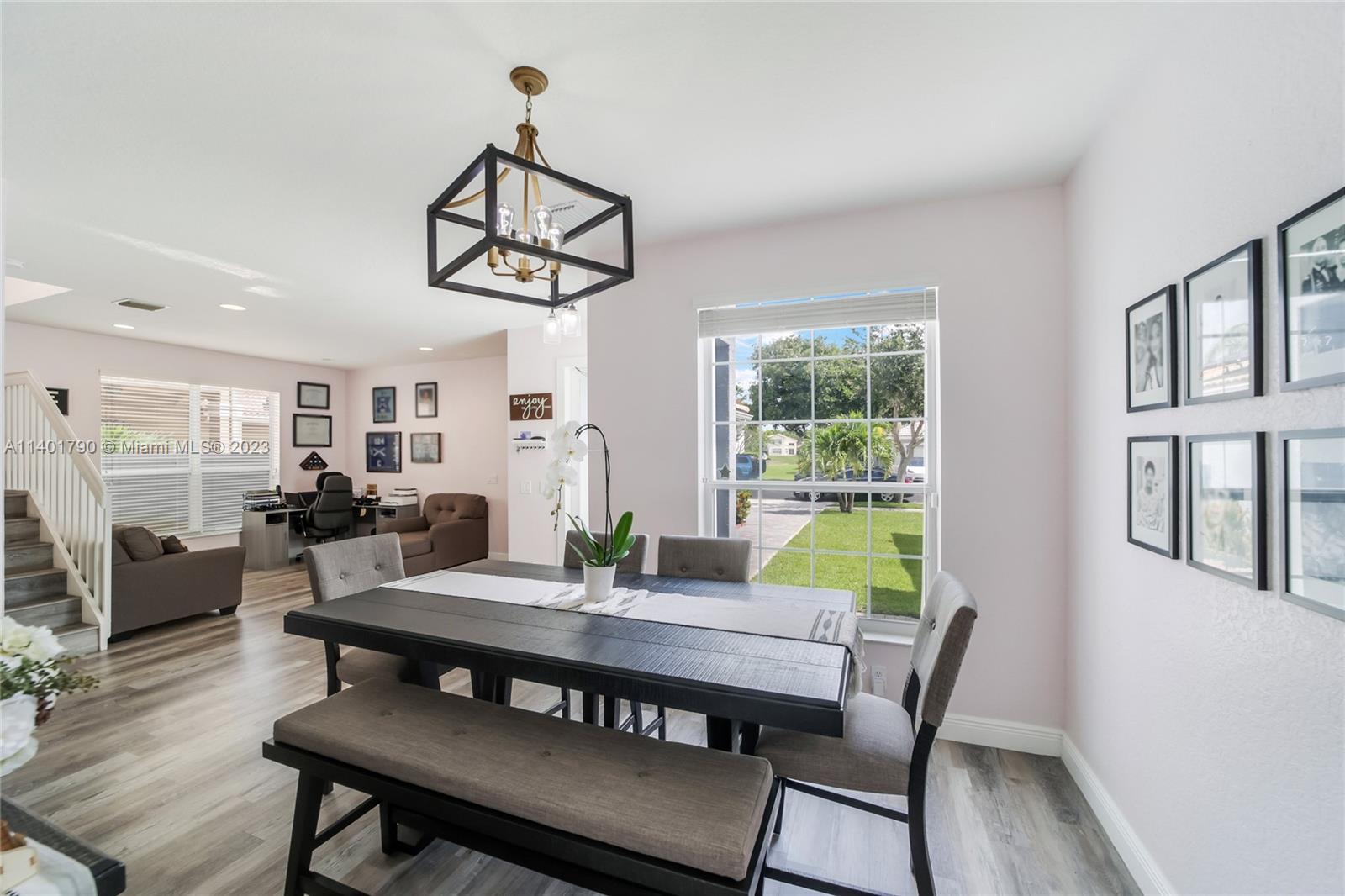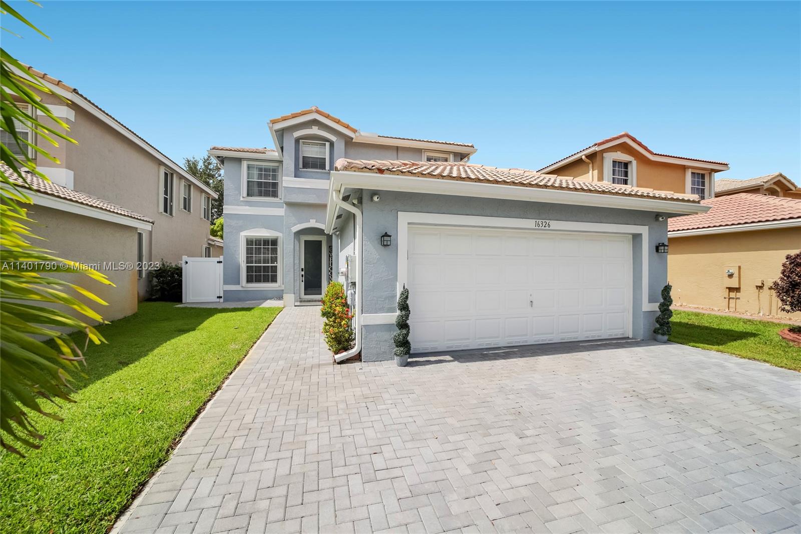 This extraordinarily beautiful two-story home located in the desirable gated community of Silver Shores is nestled in the heart of Miramar. The 3 bedroom and 2.5 bath residence mesmerizes with gorgeous Mediterranean architecture, an openly flowing floor plan, plenty of natural light, beautiful wood floors, and a spacious living room. Entertainment friendly, the upgraded open concept gourmet kitchen features stainless-steel appliances, quartz counters, and a farmhouse sink. All bedrooms are generously sized with dedicated custom built closets, while the primary bedroom dazzles with a spa-inspired en suite boasting a soaking tub, dual sinks, and a separate shower. Other features: Two car garage, laundry area in garage, fenced-in backyard with patio, and solar panels to power the entire home.