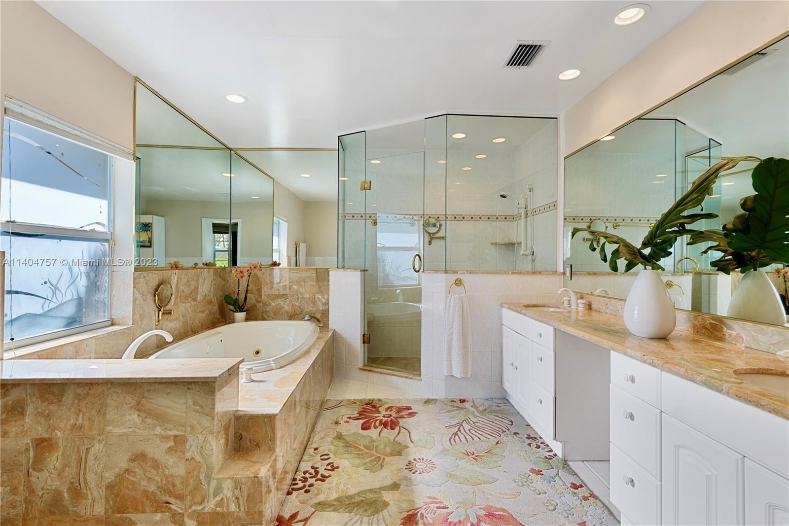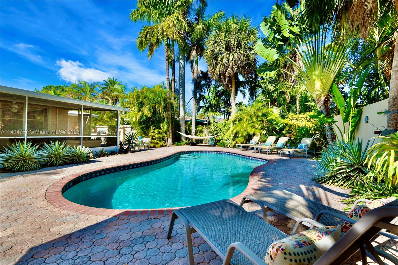 Harbor Beach 4 BR / 4 BA pool home AND guest house! Enjoy your own Harbor Beach Residents' PRIVATE BEACH, as the home is adjacent to the PRIVATE BEACH CLUB AND MARINA. The 3 bedrooms in the main home are all ensuite and in separate areas of the home. Large primary bedroom suite opens to lushly landscaped pool and garden area. Primary bath features a Roman tub, dual vanities and large glass enclosed shower. The renovated kitchen includes all stainless steel appliances. The guest house has a private entrance, living room, kitchen and bedroom areas. Home is completely fenced with an electric gate entrance, 2 car garage, circular paver driveway and ample parking.