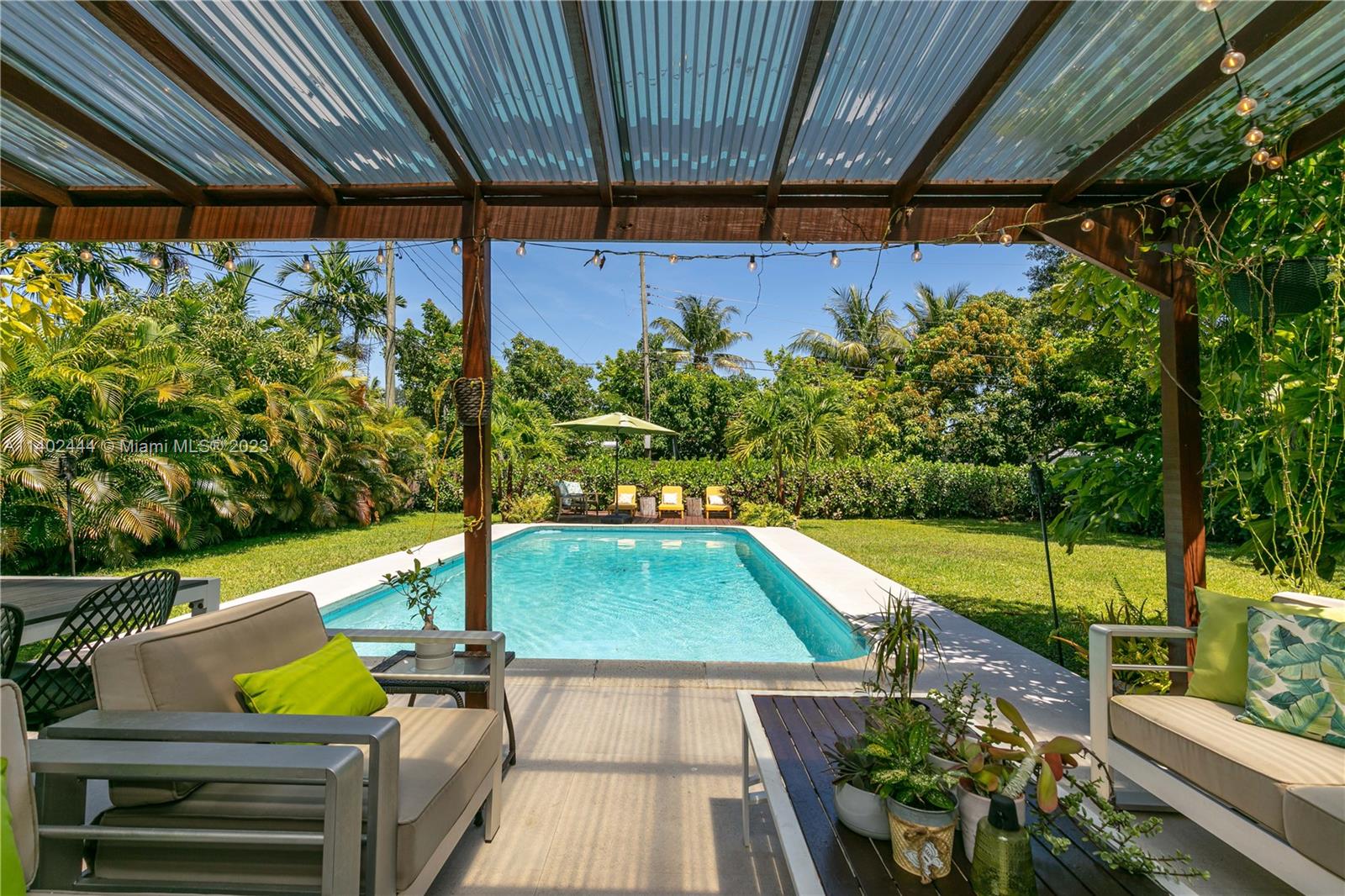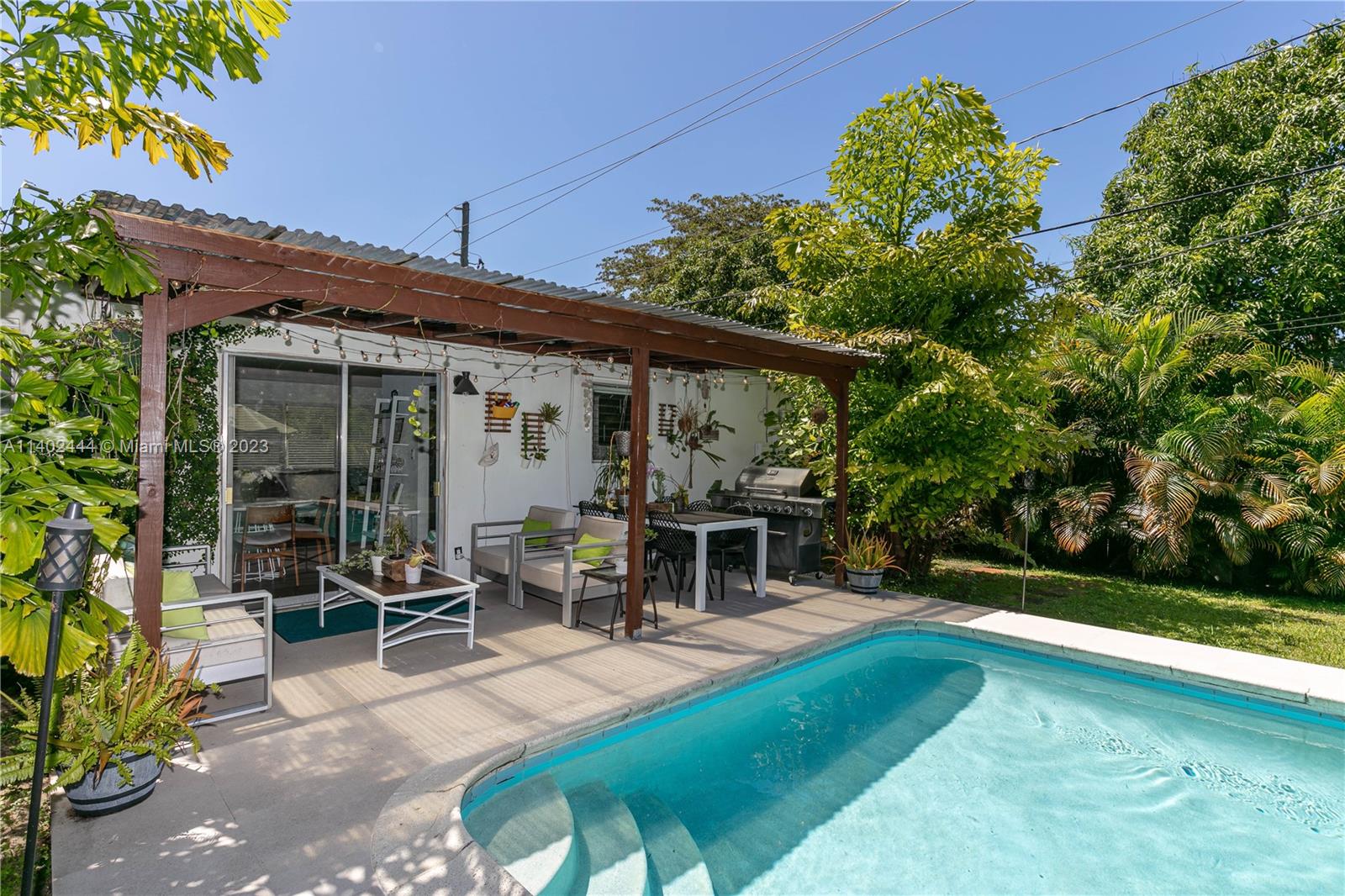 Charming & with lots of character 3/2 home with a pool and a relaxing lounge area. The property is updated and ready to move-in with the furniture if you desire. The house features vinyl floors throughout, living & dining, kitchen & bathroom, master bedroom, laundry room and a carport. This property contain a large fenced backyard with a pool, beautiful trees , plants and a great landscaping.
