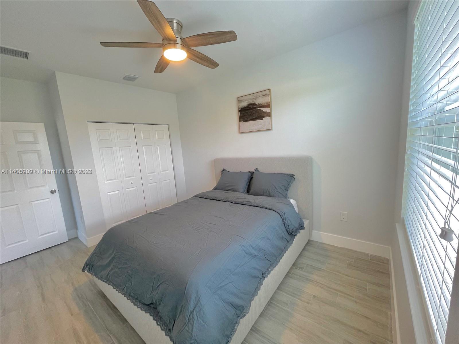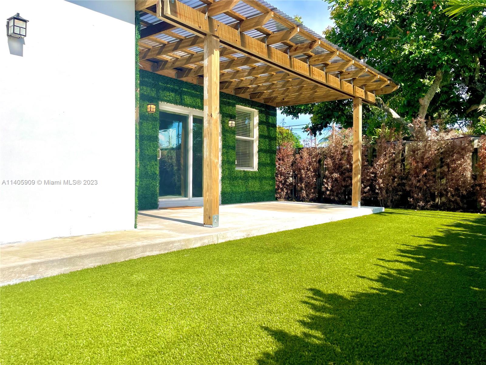 Discover a breathtaking newly constructed home from 2022. This stunning residence showcases a modern open kitchen design with custom cabinets, quartz countertops, and Samsung stainless steel appliances. volume ceilings 10ft High, impact windows, and tile flooring with 5-inch baseboards, elegance permeates every room. The primary suite features a walk-in closet, double vanity, and backyard access. Outside, enjoy a revamped backyard with turf and a putting area, surrounded by lush landscaping. Complete with a RING alarm system and an excellent location for easy commuting and access to major highways. Don't miss this must-see home! This property has no flood risk in the Flood Factor™ model