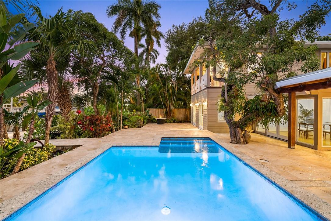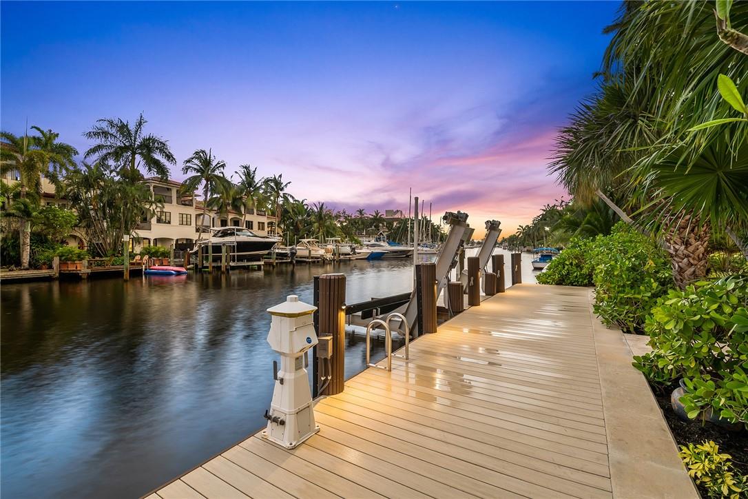 Welcome to your waterfront paradise in the desirable Victoria Park neighborhood! Imagine a lush, private property with two gated entrances situated on a quiet cul-de-sac. Picture views of the canal from your backyard oasis featuring an expansive covered area for dining and travertine pavers surrounding the saltwater pool. Have peace of mind with a newly raised 75' seawall and 50' Aztec dock with state-of-the-art 20,000 boat lift. With no fixed bridges and deep canal access, you can enjoy carefree boating any time. Inside you'll find an open living room with updated lighting, a wet bar, and a contemporary staircase leading up to the primary suite balcony overlooking this tranquil outdoor space. 16kw whole home generator powered by natural gas. Minutes to the beaches & Las Olas Blvd.