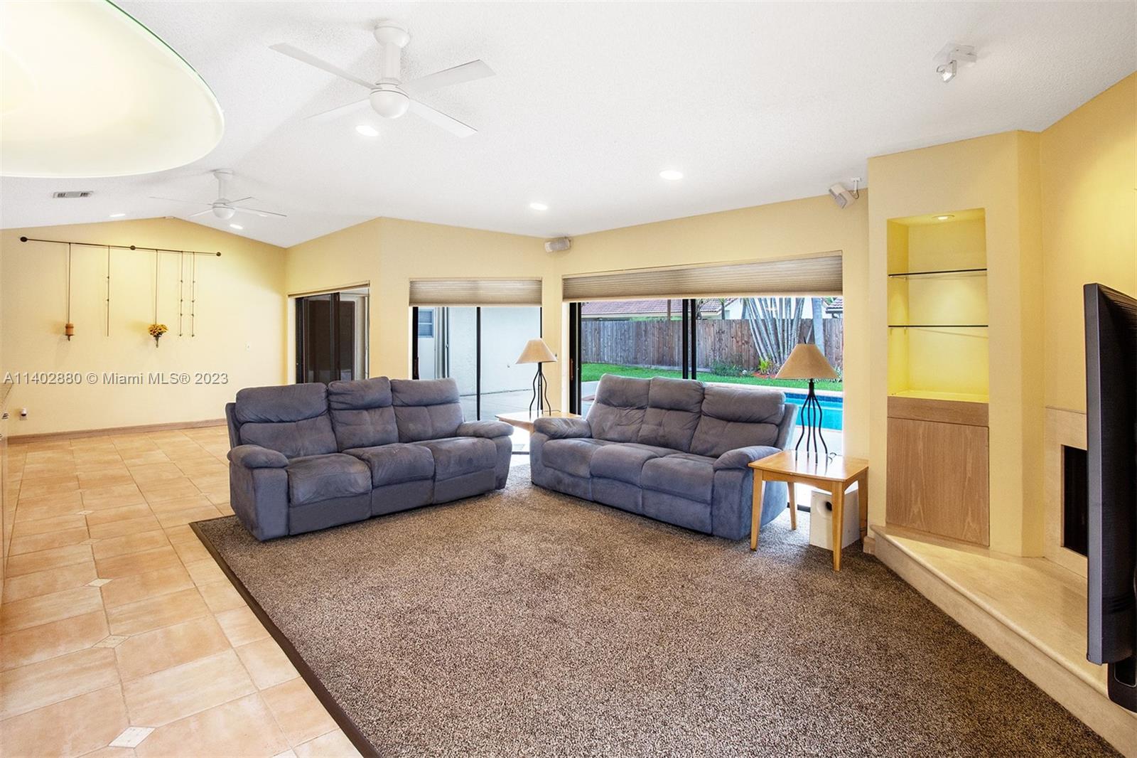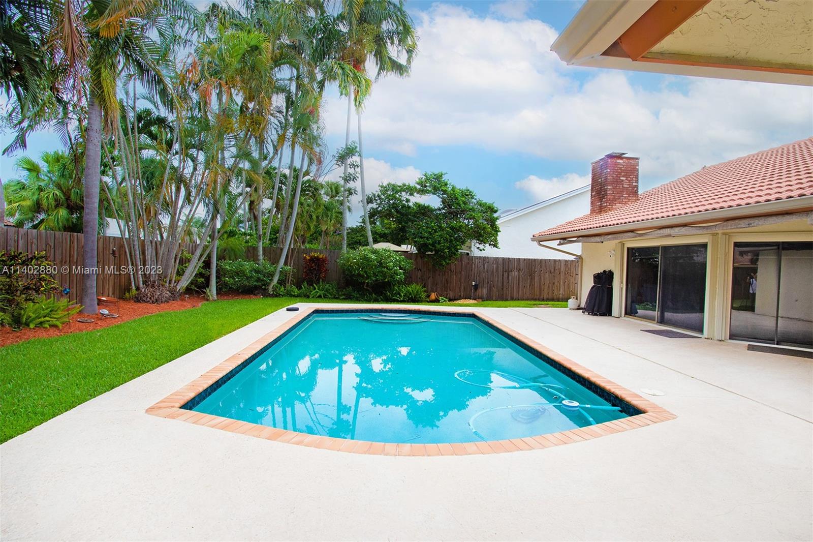 Welcome home! Nestled back in the family-oriented neighborhood of JACARANDA LAKES, this Single Story home features 4 Bedrooms, 2 Bathrooms, tile floors throughout the main areas and 3rd bedroom, wood flooring in 2 bedrooms and carpet in the master. The kitchen has been tastefully updated as well as both bathrooms. The Master bedroom has an extra-large walk-in closet and ensuite with a Jacuzzi Tub and a large Steam Shower. Fully fenced and nicely landscaped lot with a large pool and covered patio for outdoor relaxation and entertainment. Located on a horseshoe, it has limited traffic! LOW HOA FEES!! Roof is in excellent condition -2003, A/C - 2018, BRAND NEW hot water heater. Accordion Shutters for all openings.