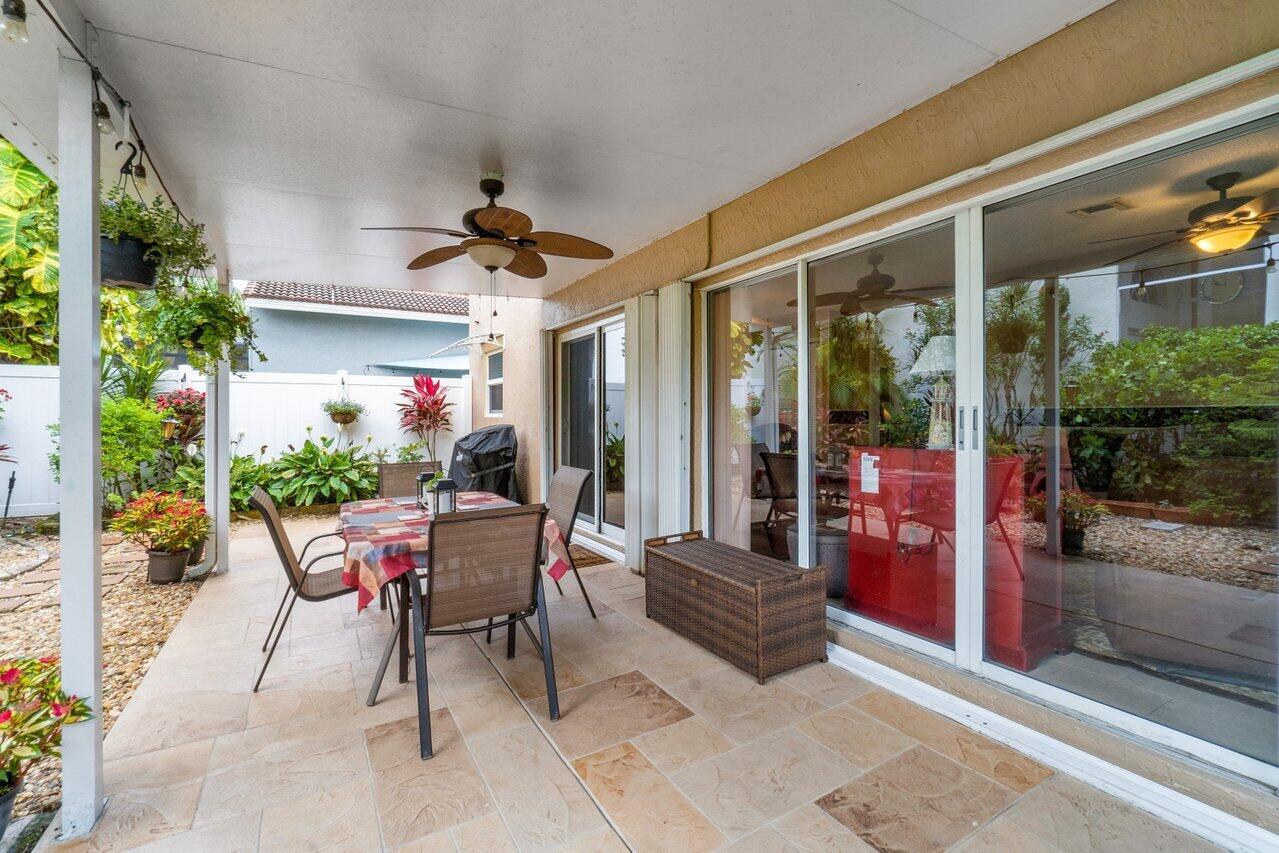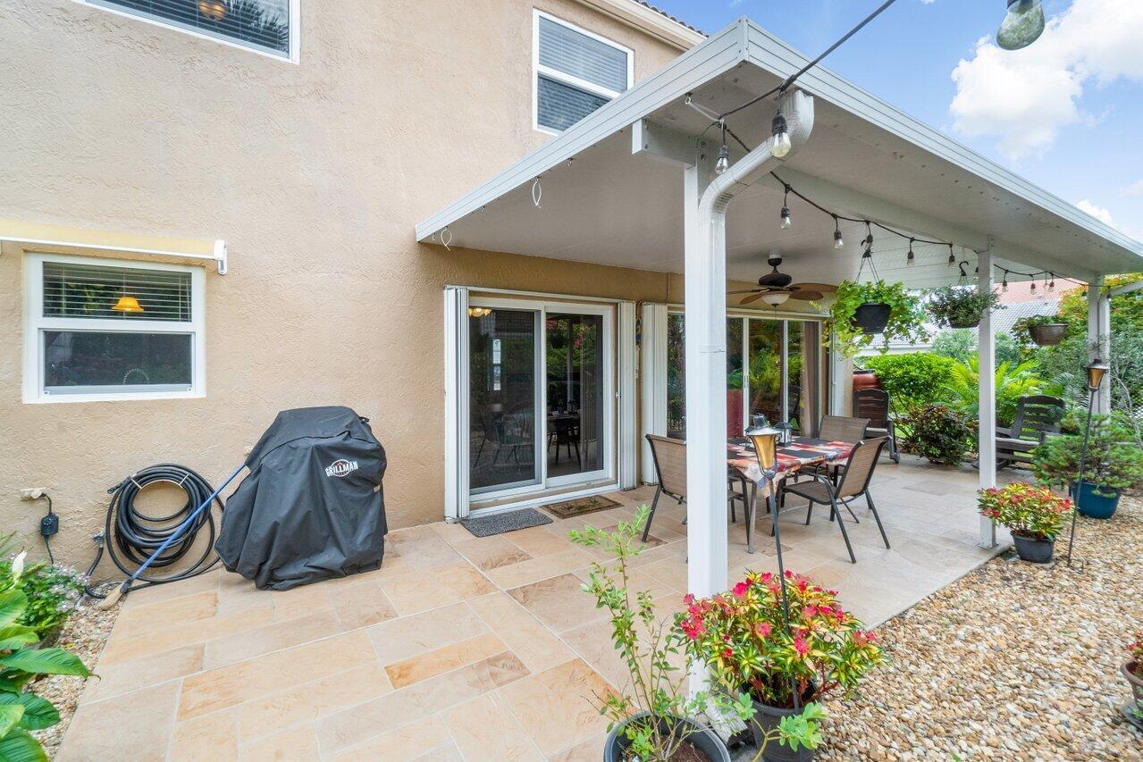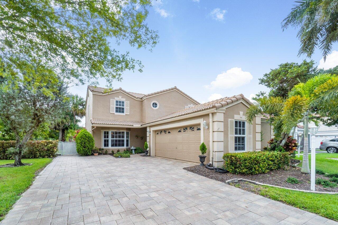 Gorgeous and well manicured corner lot property. This 4 bedroom 2.5 bathroom home has beautiful curb appeal and is well situated on the lot with a private and peaceful backyard. This property has been well maintained by the original owners. In this home you will find beautiful 42'' kitchen cabinets with granite countertops, a beautiful bay window in the dining room and two newly remolded bathrooms upstairs, impact windows throughout, and an oversized garage. On the exterior there is a newly paved driveway and extended patio with stamped concrete deck and covered overhang. Great location with premium school zones and shopping! Wonderful community with playground, pool, basketball court, tennis and pickle ball courts and a private fishing dock. Great schools, parks and nearby shopping!