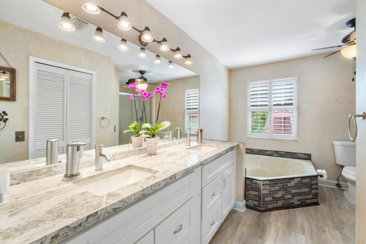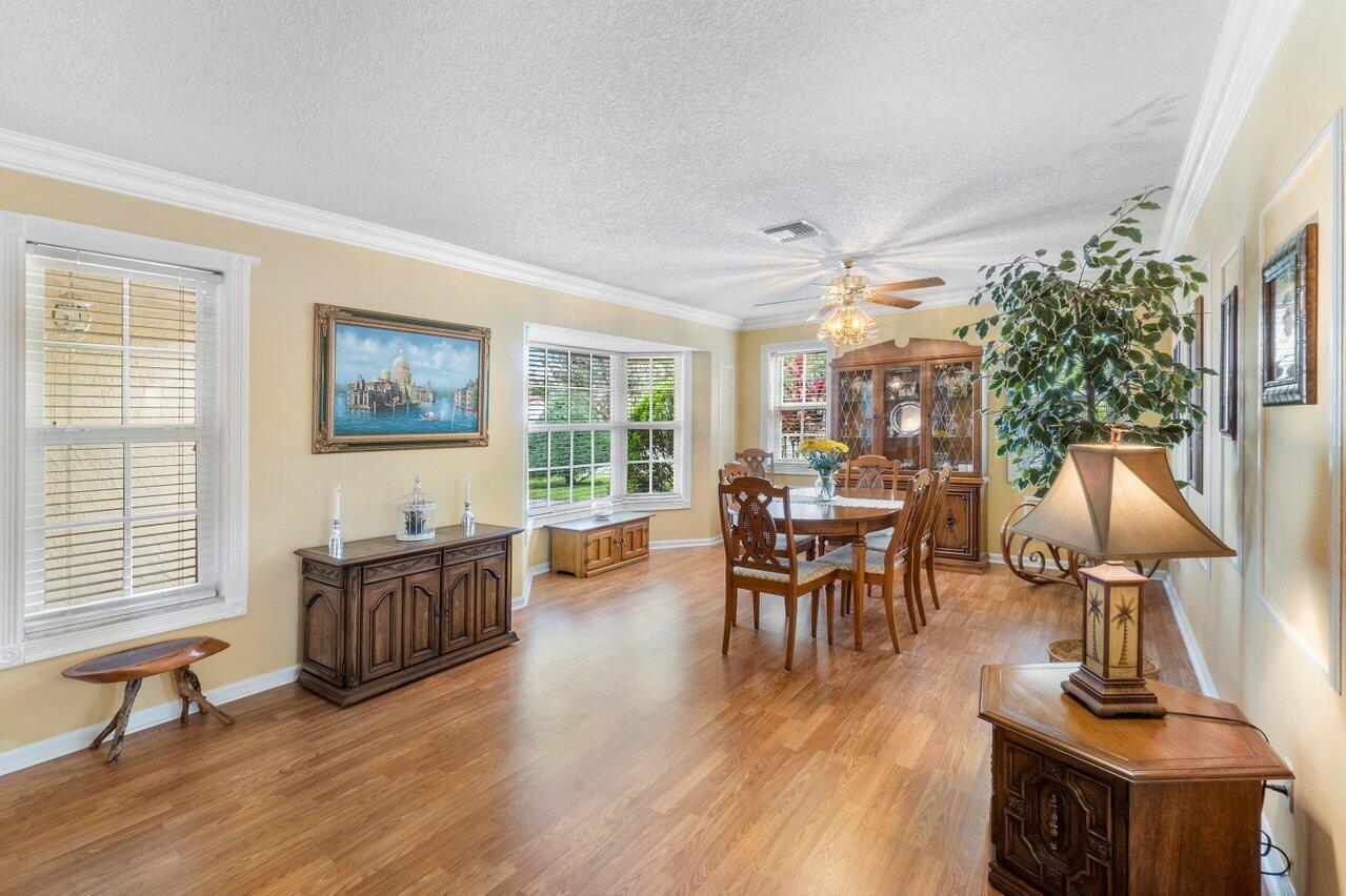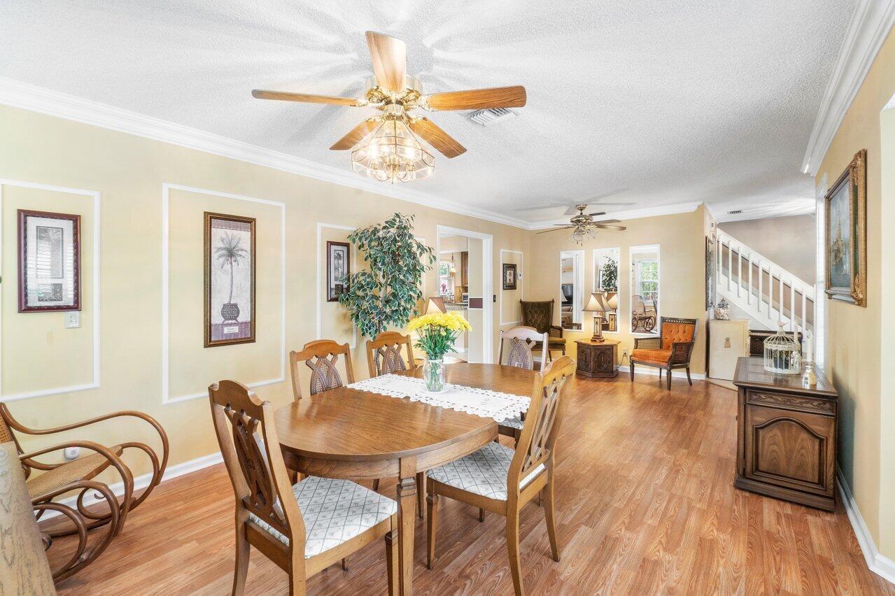 Gorgeous and well manicured corner lot property. This 4 bedroom 2.5 bathroom home has beautiful curb appeal and is well situated on the lot with a private and peaceful backyard. This property has been well maintained by the original owners. In this home you will find beautiful 42'' kitchen cabinets with granite countertops, a beautiful bay window in the dining room and two newly remolded bathrooms upstairs, impact windows throughout, and an oversized garage. On the exterior there is a newly paved driveway and extended patio with stamped concrete deck and covered overhang. Great location with premium school zones and shopping! Wonderful community with playground, pool, basketball court, tennis and pickle ball courts and a private fishing dock. Great schools, parks and nearby shopping!