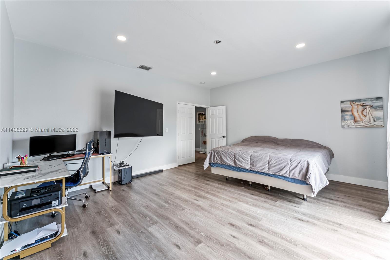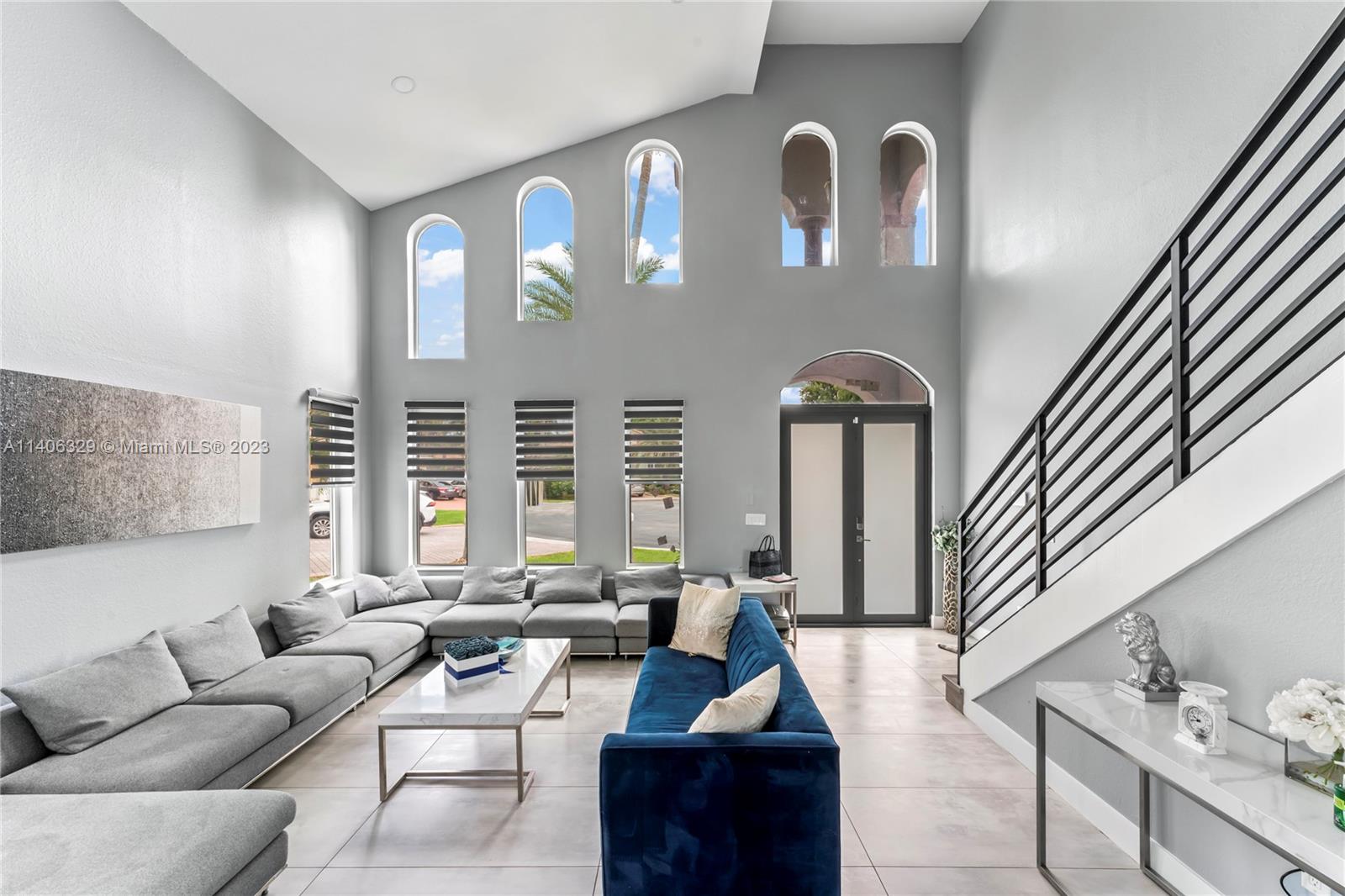 A 5 bedroom 3 bathroom, lake front property flooding with natural light throughout, high vaulted ceilings, an open space concept with a huge kitchen island all made with golden finishes, ALL WINDOWS HURRICANE IMPACT AND DOORS. Throughout bathroom has porcelain tiles with a marble finish, an amazing view from the master bedroom balcony as well as the master tub. 5th bedroom has been converted in to a dream closet with the option to convert back into a bedroom. It can be used as a nursery as well. A custom built wall with stone finishes and electrical fireplace you don't want to miss!