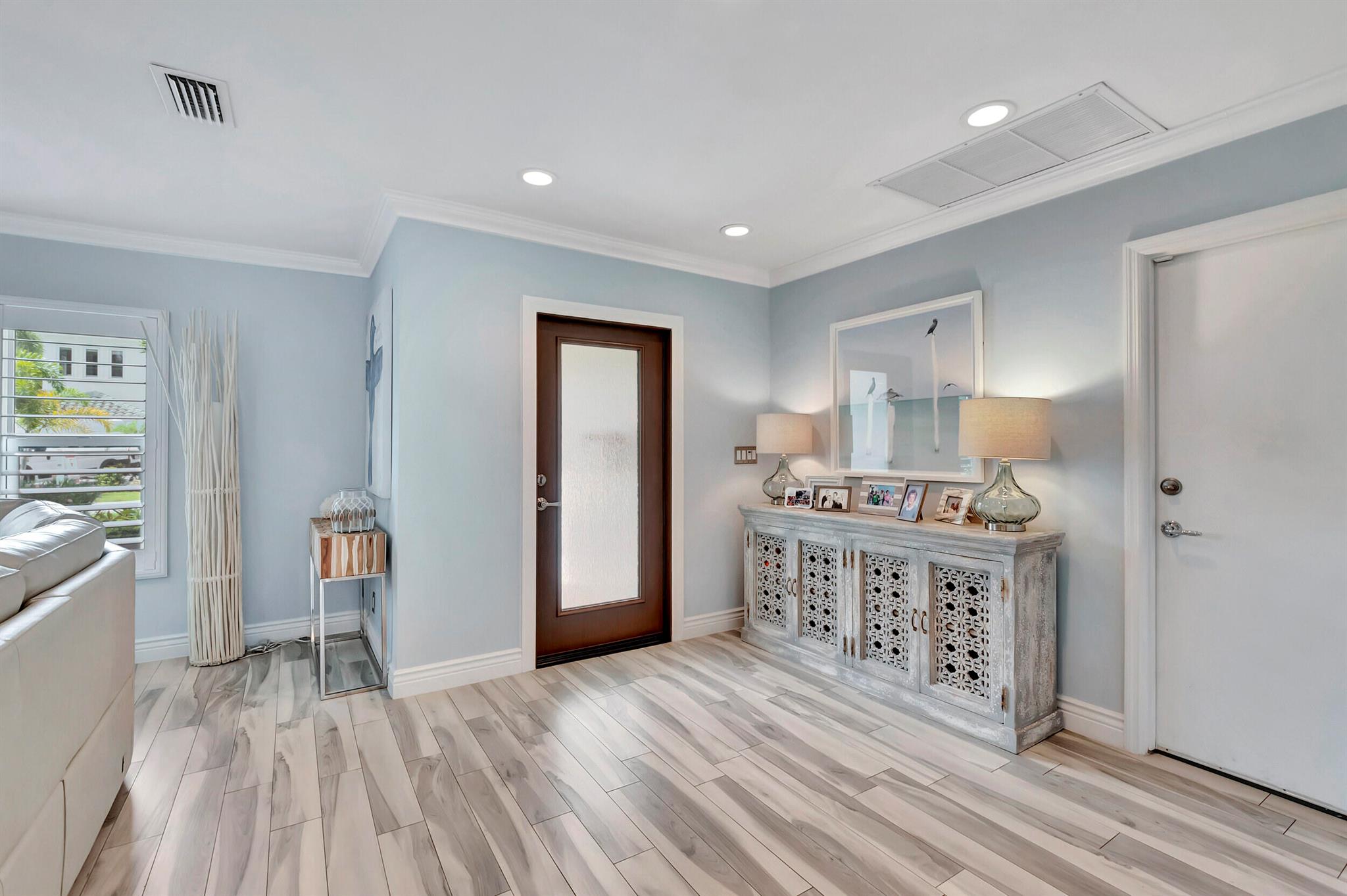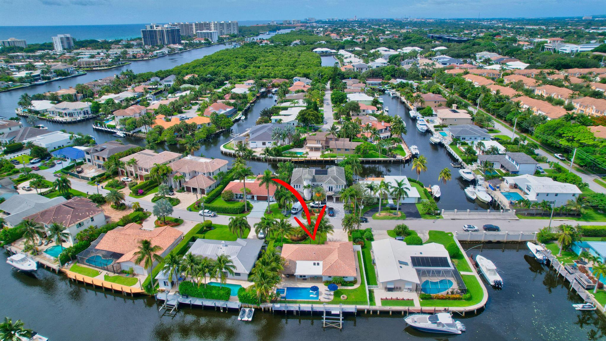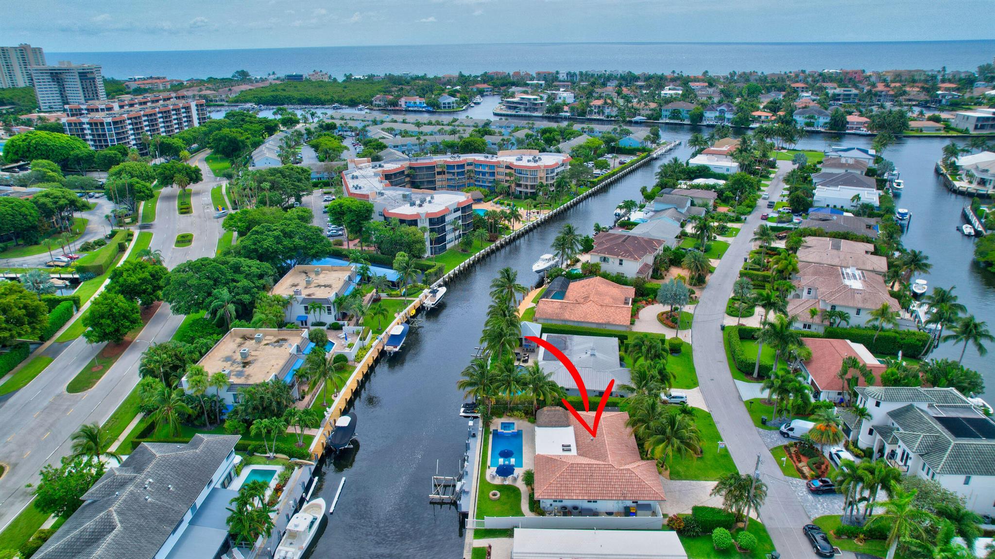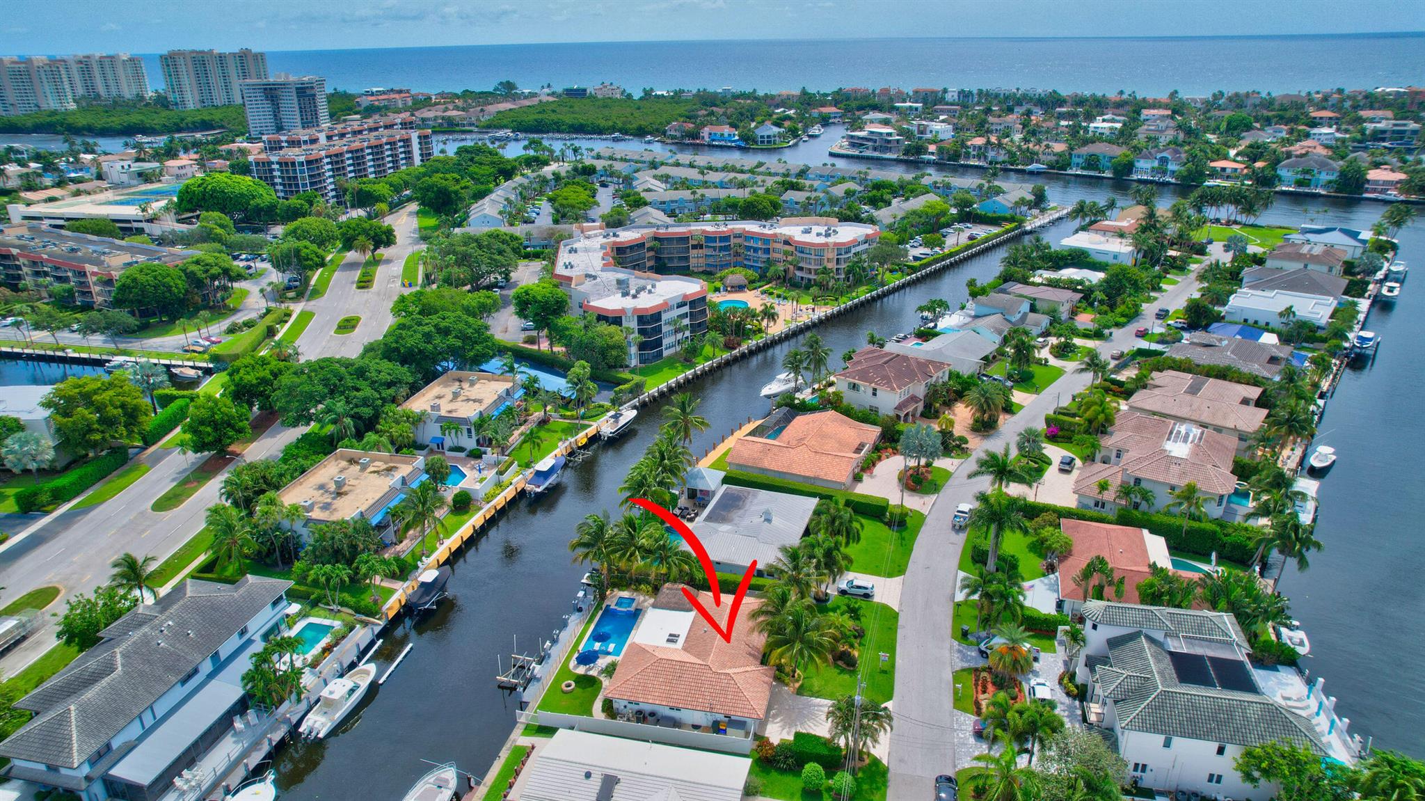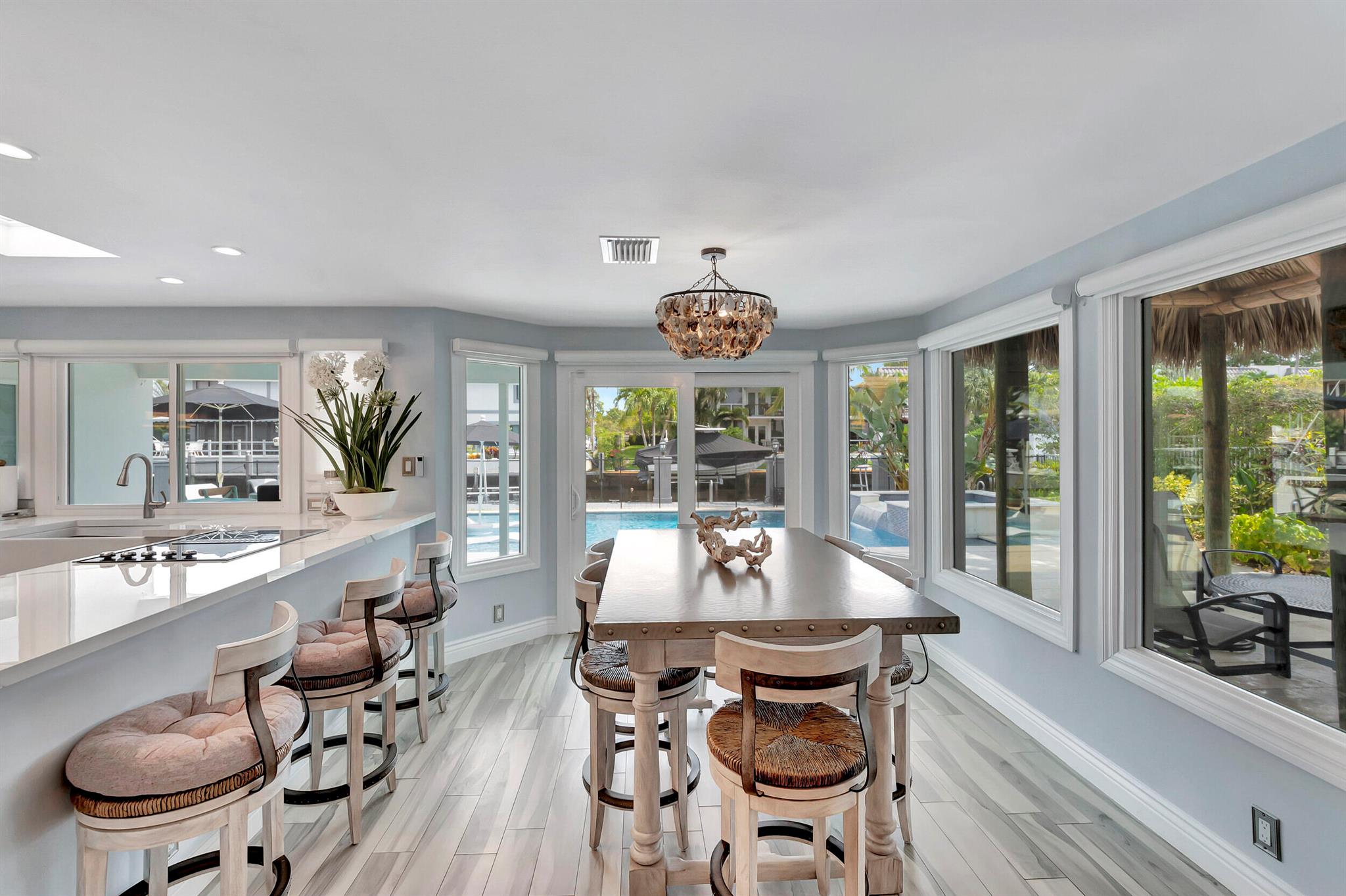 PRICE IMPROVEMENT on this stunning, east Boca Raton, waterfront home with 83 ft of water frontage, no fixed bridges and ocean access. It has been beautifully updated with wide plank tile flooring throughout, bright and open kitchen with a passthrough bar to outside.The appliances are all top-of-the-line Kitchen Aid ,Wine refrigerator, farmers sink and Quartz counters. There are also two kitchen skylights that bring the outside in. 3-bedroom Split floor plan PLUS a separate office/ den. Open formal living room, dining / eat in area. Vacation every day in the heated pool and spa, Tiki hut w/ TV dock, deck. The pool was built 2017 and has LED pool light automation. Both pool and dock have child safety fence. and over 2,000 sf of Ivory Travertine patio decking.