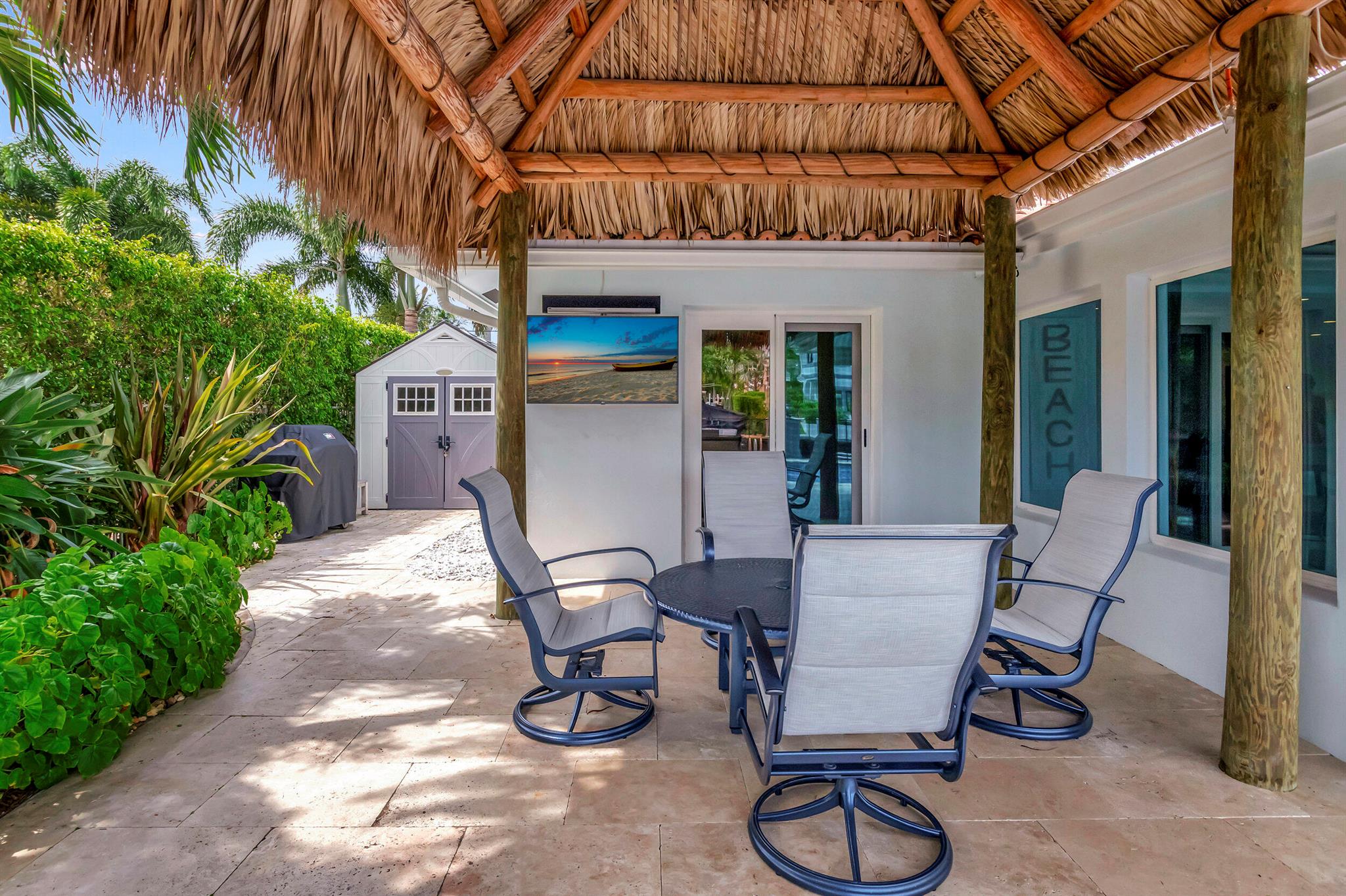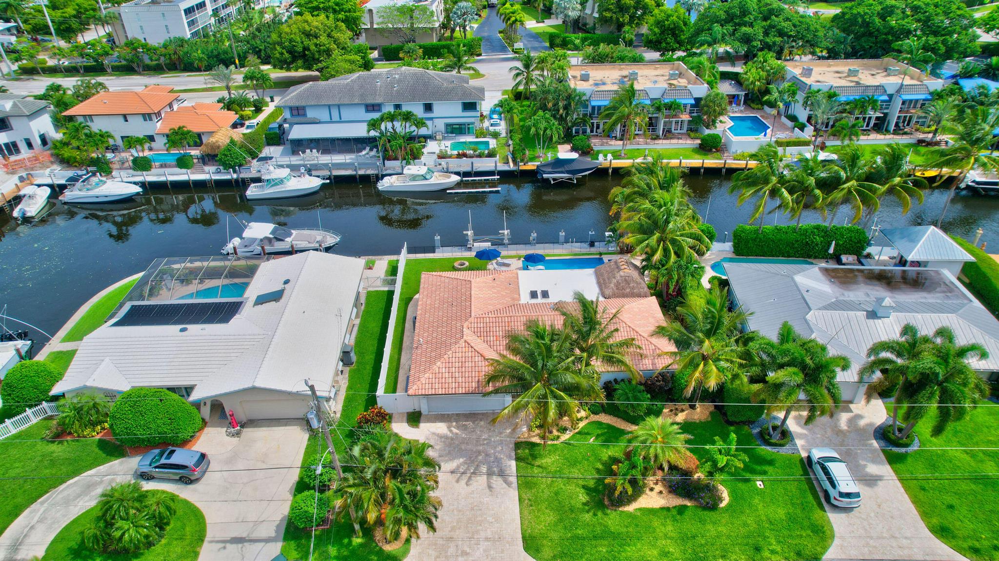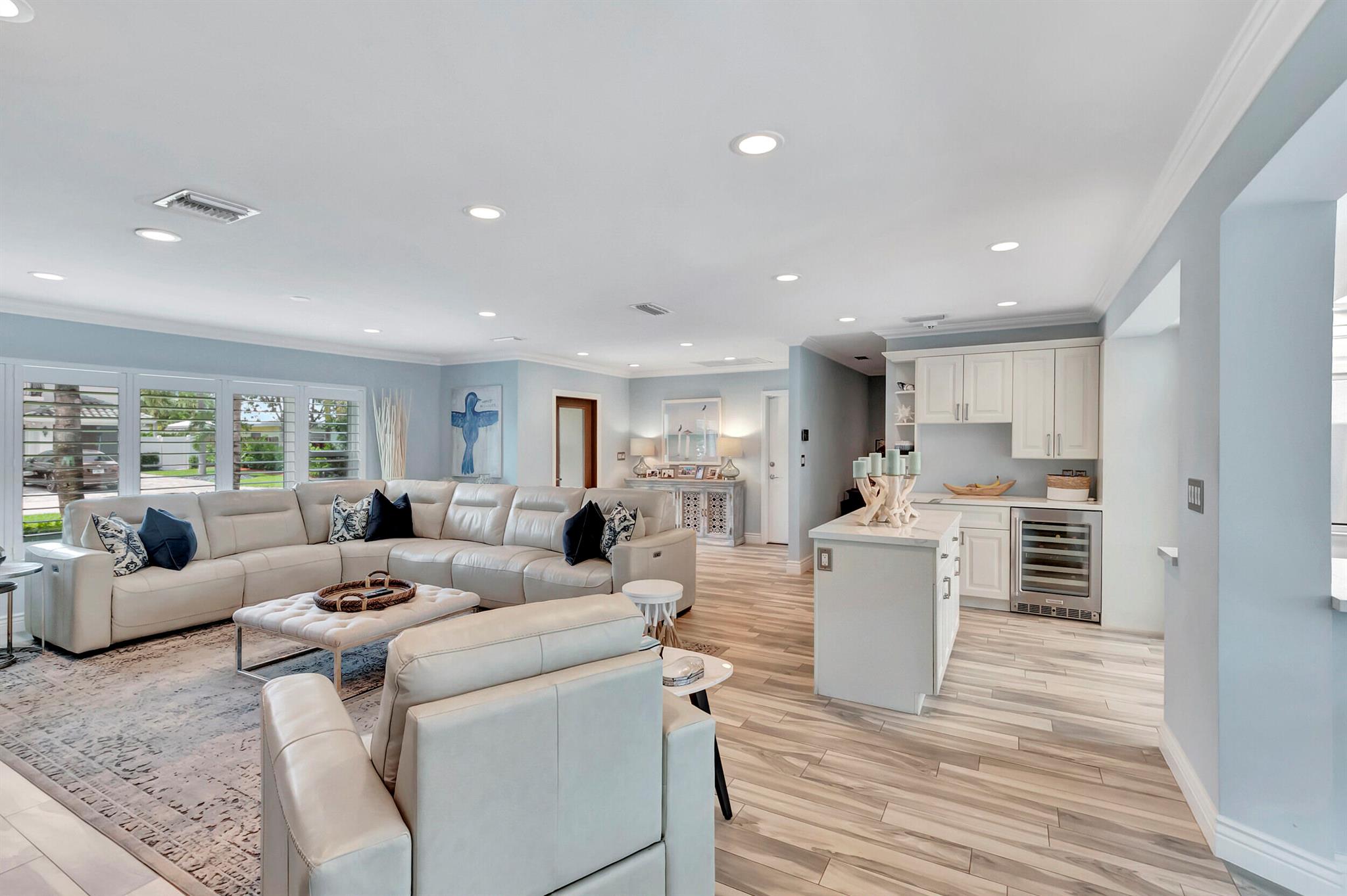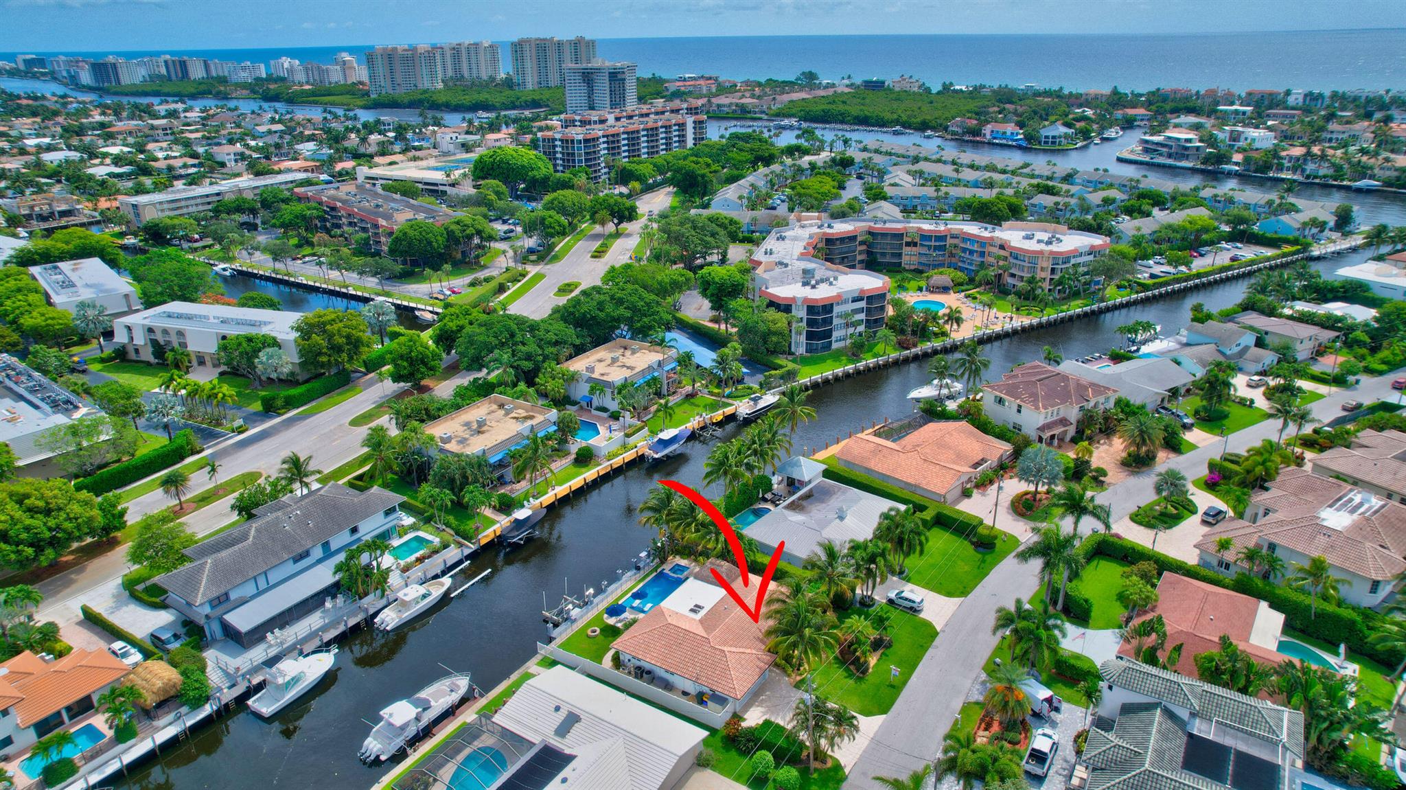 PRICE IMPROVEMENT on this stunning, east Boca Raton, waterfront home with 83 ft of water frontage, no fixed bridges and ocean access. It has been beautifully updated with wide plank tile flooring throughout, bright and open kitchen with a passthrough bar to outside.The appliances are all top-of-the-line Kitchen Aid ,Wine refrigerator, farmers sink and Quartz counters. There are also two kitchen skylights that bring the outside in. 3-bedroom Split floor plan PLUS a separate office/ den. Open formal living room, dining / eat in area. Vacation every day in the heated pool and spa, Tiki hut w/ TV dock, deck. The pool was built 2017 and has LED pool light automation. Both pool and dock have child safety fence. and over 2,000 sf of Ivory Travertine patio decking.