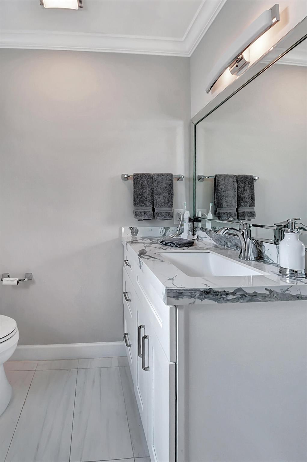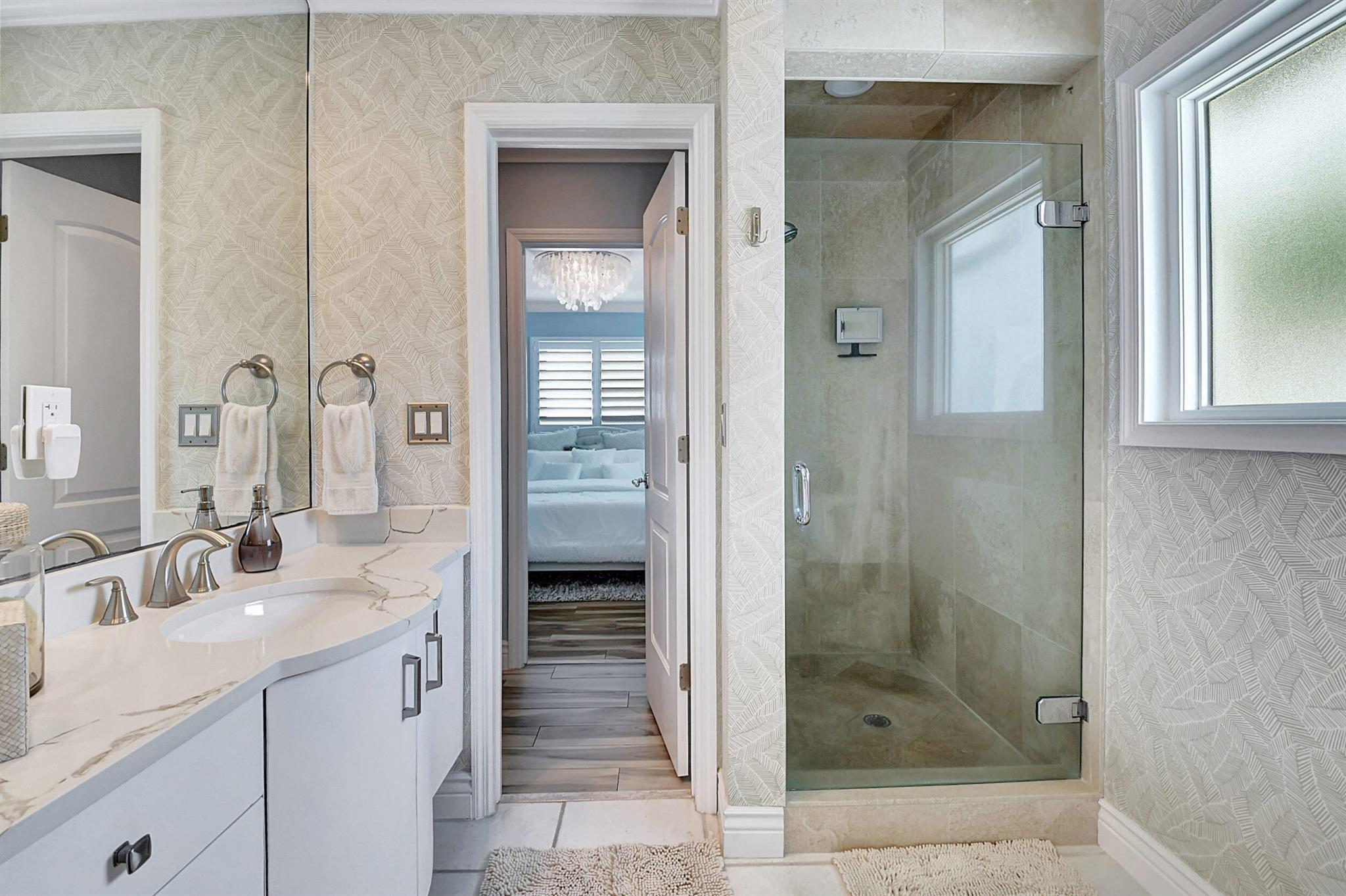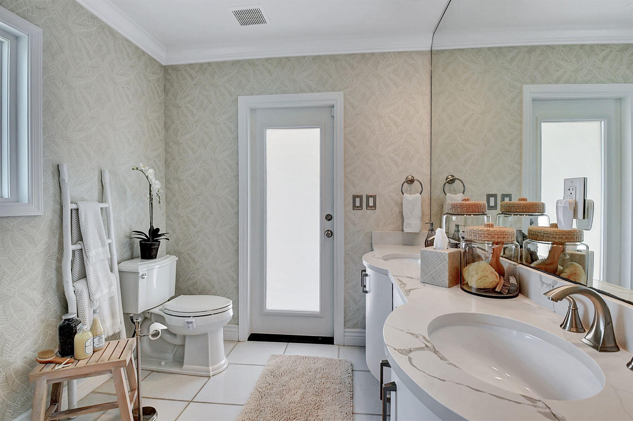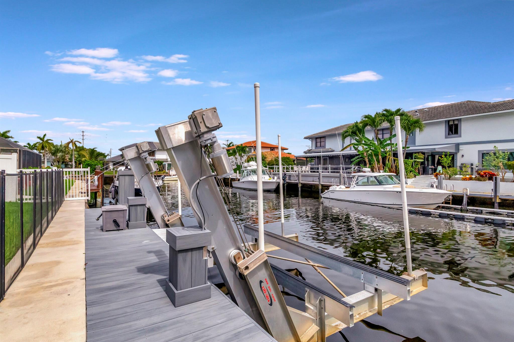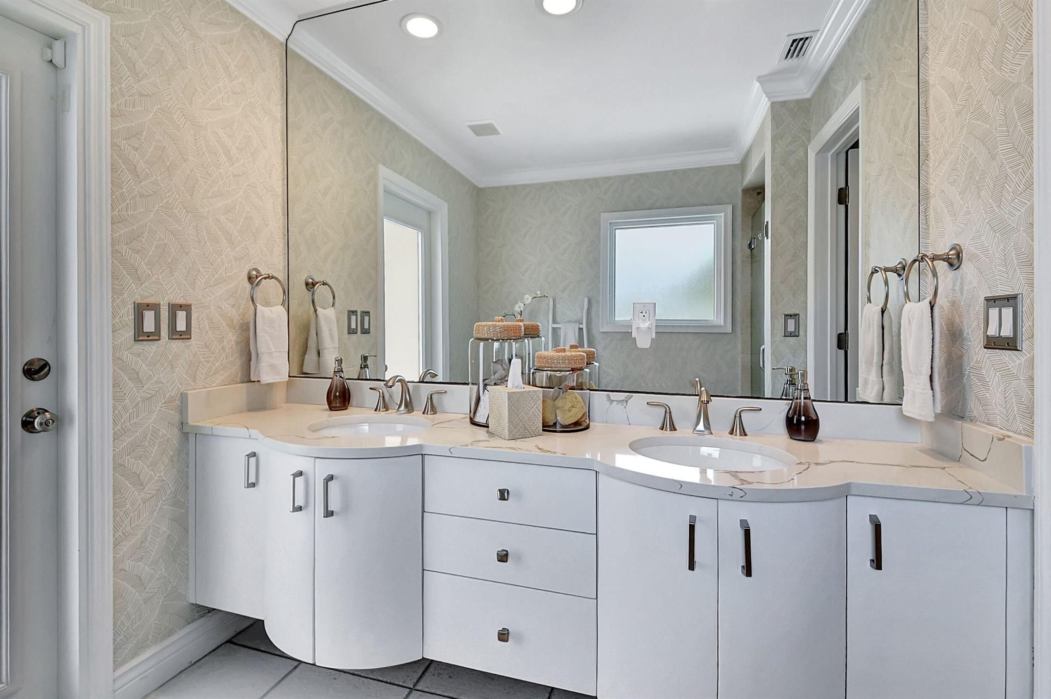 PRICE IMPROVEMENT on this stunning, east Boca Raton, waterfront home with 83 ft of water frontage, no fixed bridges and ocean access. It has been beautifully updated with wide plank tile flooring throughout, bright and open kitchen with a passthrough bar to outside.The appliances are all top-of-the-line Kitchen Aid ,Wine refrigerator, farmers sink and Quartz counters. There are also two kitchen skylights that bring the outside in. 3-bedroom Split floor plan PLUS a separate office/ den. Open formal living room, dining / eat in area. Vacation every day in the heated pool and spa, Tiki hut w/ TV dock, deck. The pool was built 2017 and has LED pool light automation. Both pool and dock have child safety fence. and over 2,000 sf of Ivory Travertine patio decking.