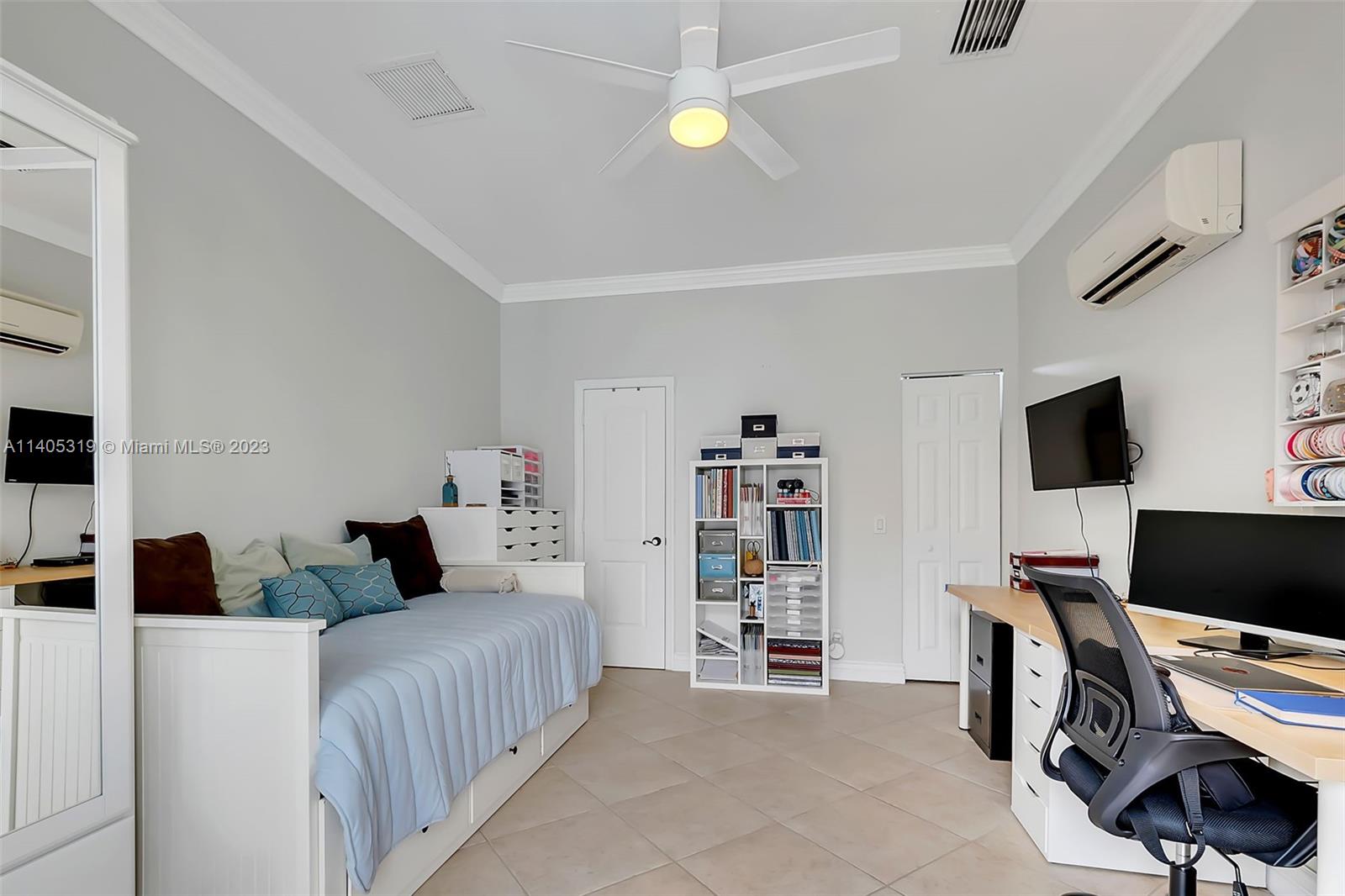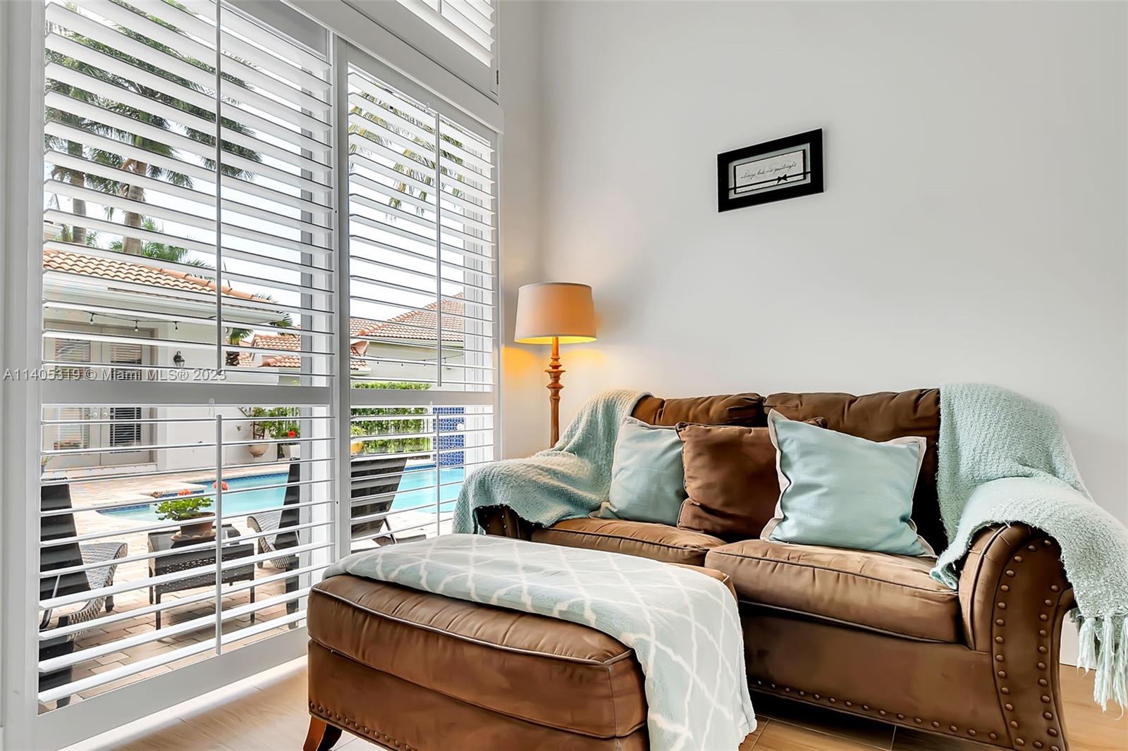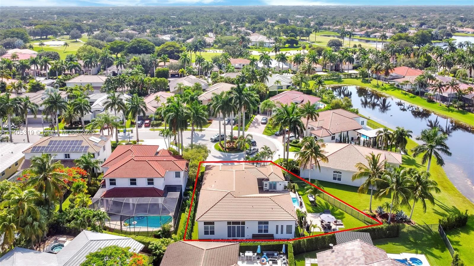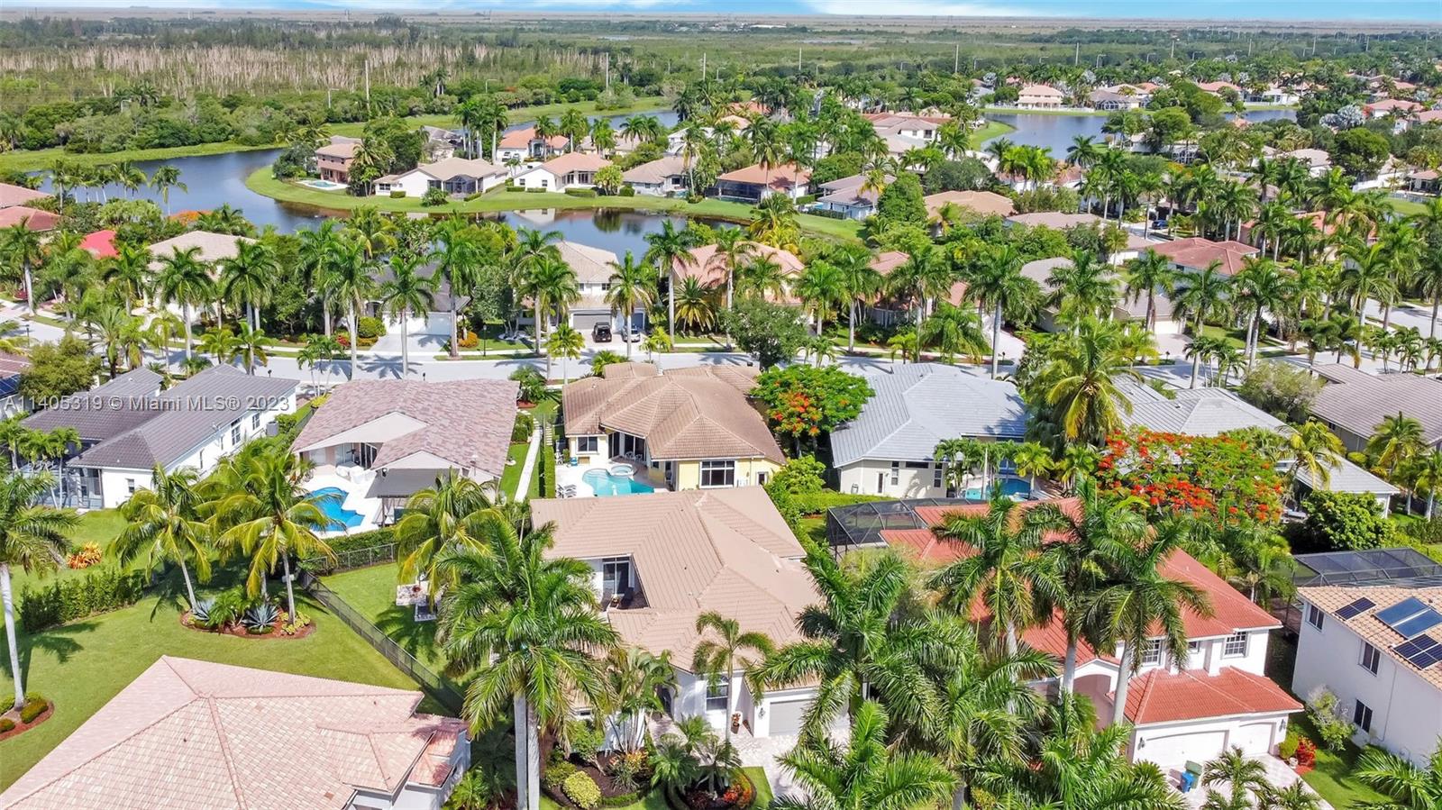Discover luxury living in this beautiful "courtyard model" home nestled in a cul-de-sac in the prestigious Weston Hills golf community. The home has a main house with 3 beds/3 baths and an additional 4th room and bathroom located in the guest house. The pool was resurfaced in 2020 and has a serene waterfall. Elegant wood-looking floor tiles adorn the entire home. The designer kitchen boasts white quartz countertops, white wood cabinets, a smart double oven, a 60" refrigerator, an electric stove top with an outside venting range hood, a bar with a wine cooler, and an oversized island—great for entertaining. The master bedroom features a pool-view sitting area. Plantation shutters and remodeled bathrooms add to the allure. Near a community park just a short walk away. Weston A+ Schools.